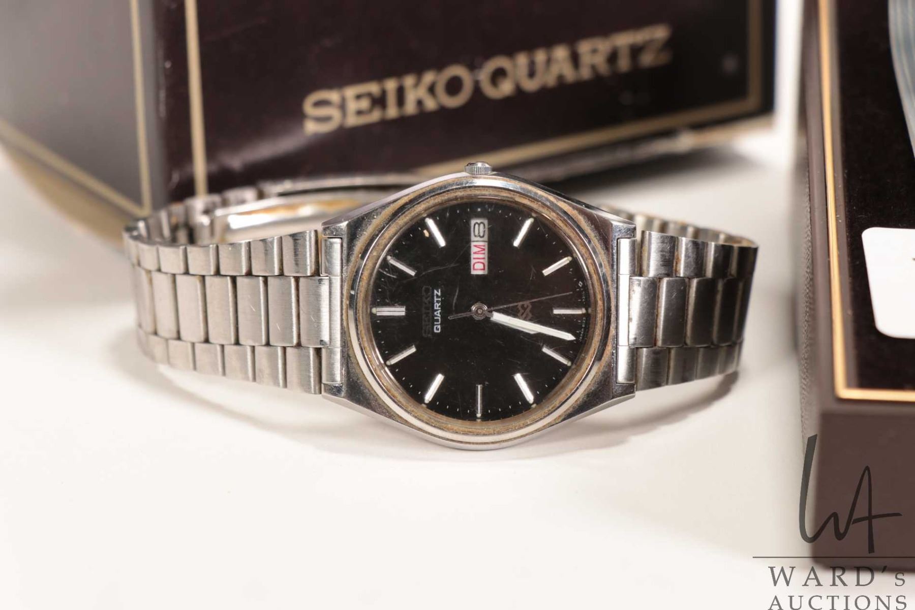Lot 243 Two vintage Seiko wrist watches with quartz movement, one with original retail case and box
