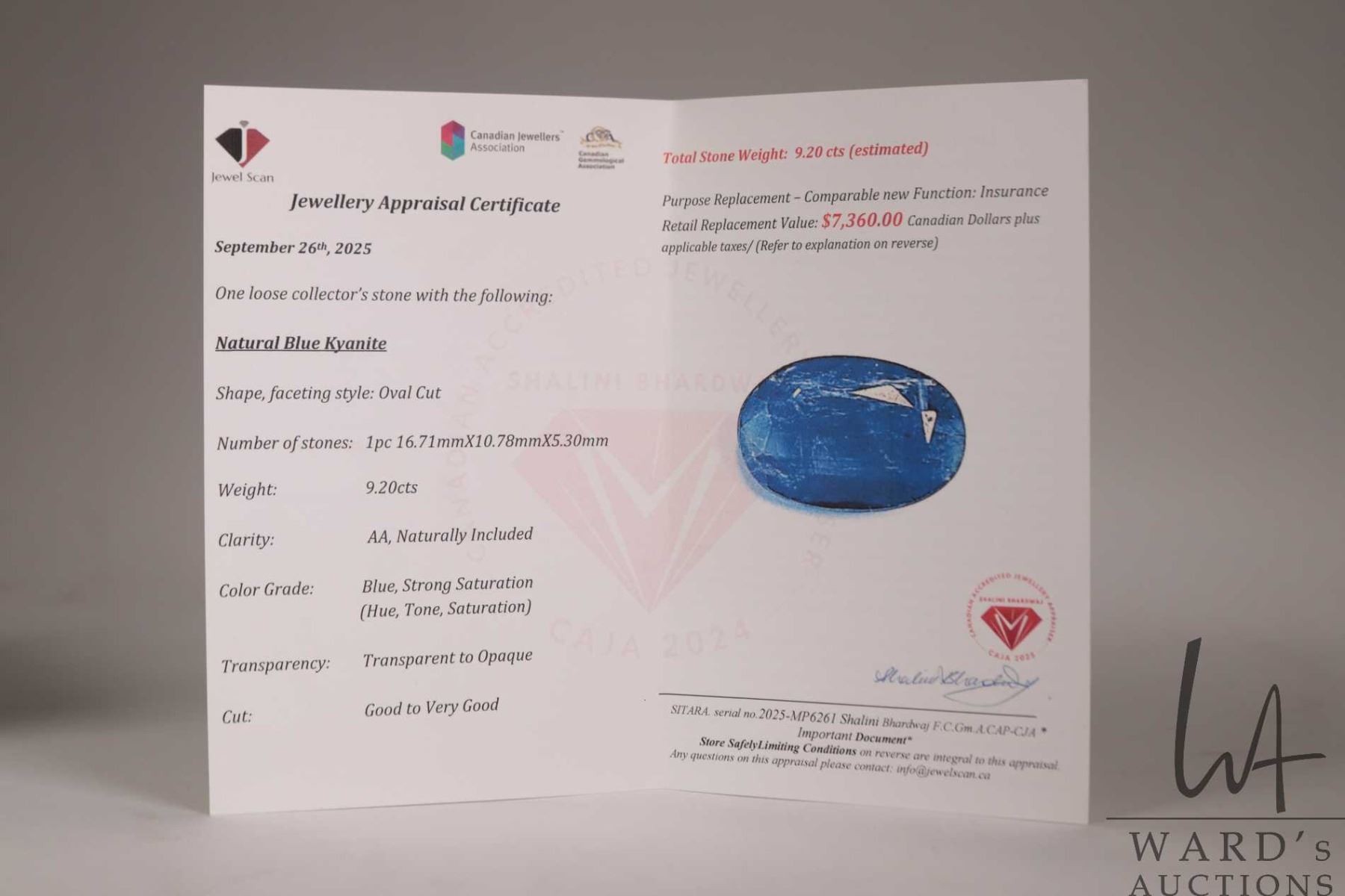 Lot 245 9.20 ct blue Kyanite oval cut gemstone with certificate provided by consignor