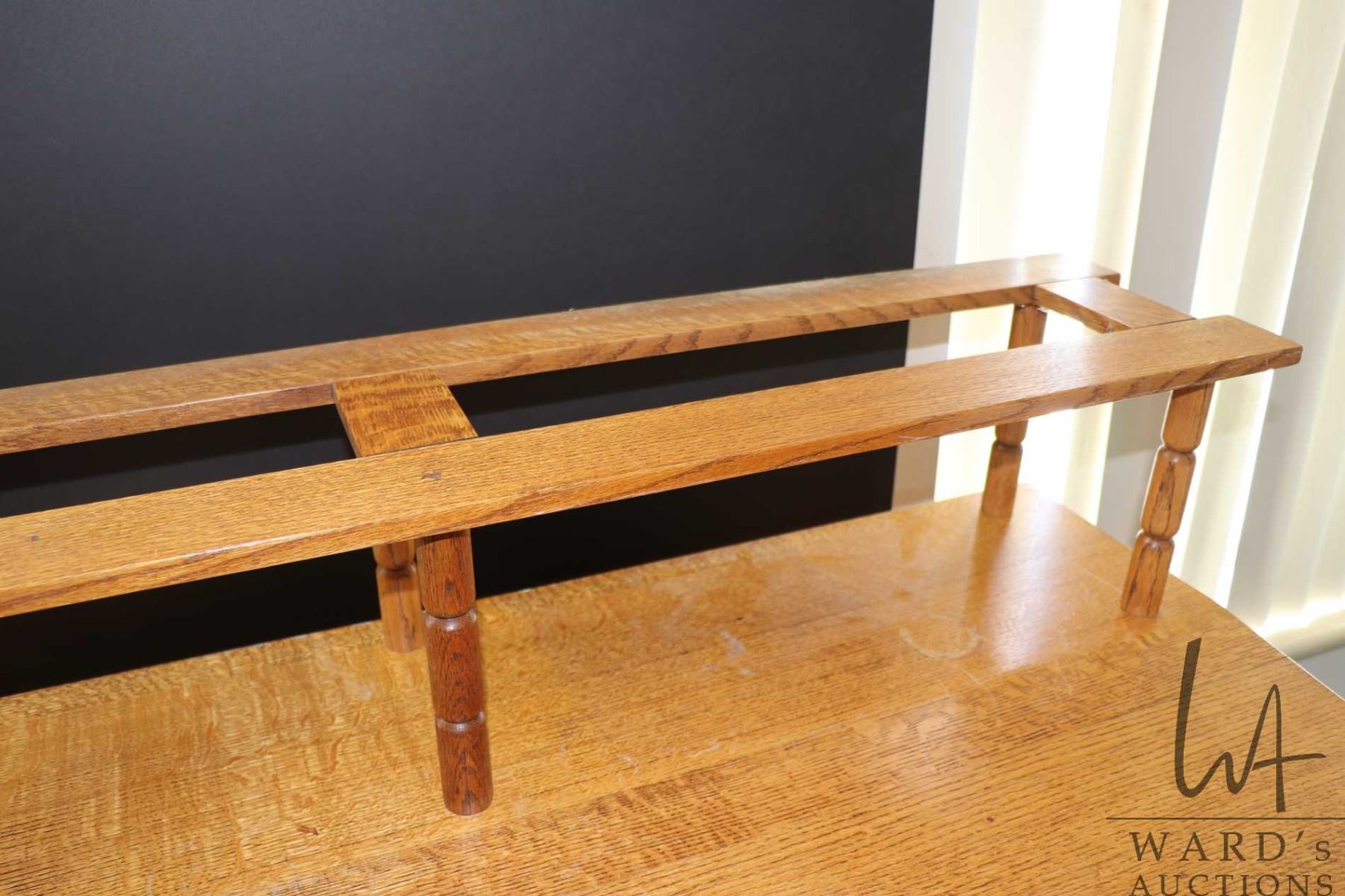 Lot 252 Antique quarter cut oak, Mission style clerks/ standing desk with topper, height to top of desk 45"