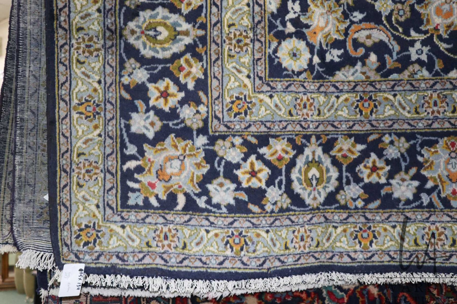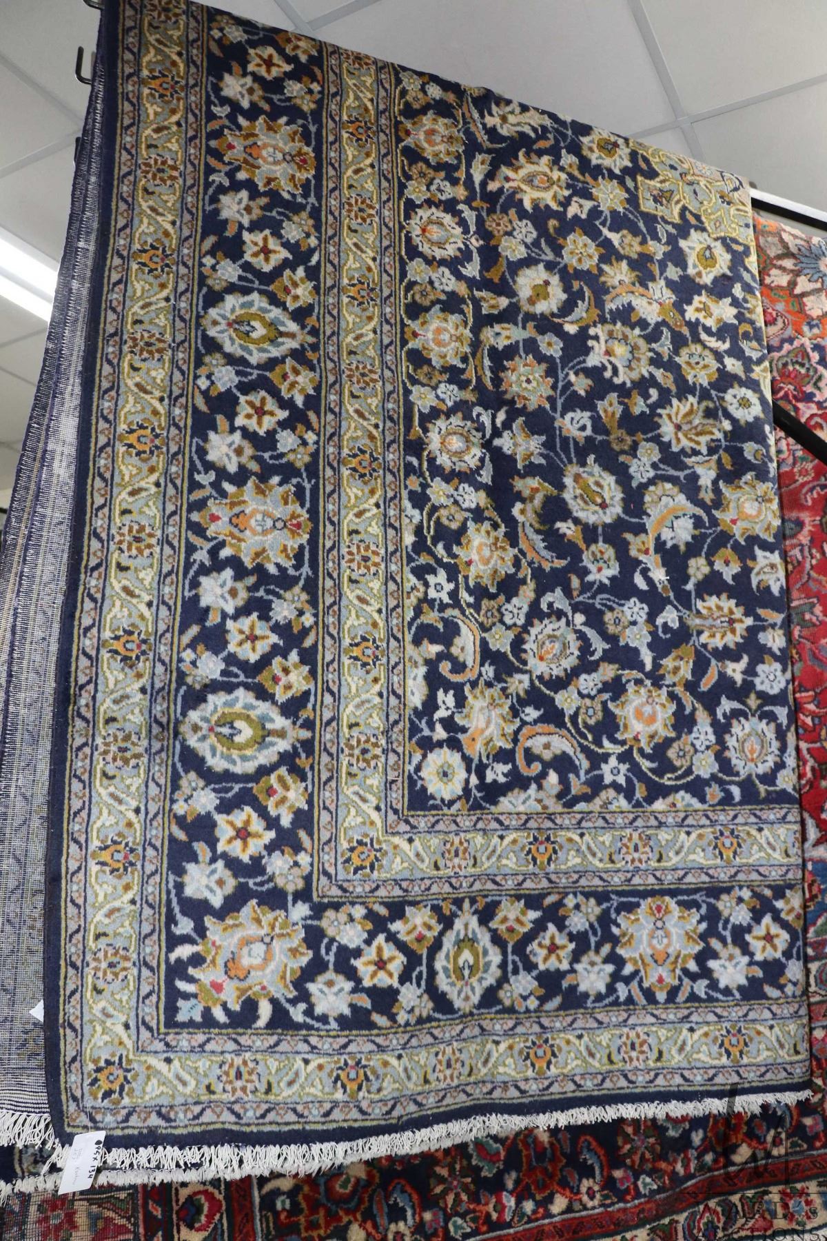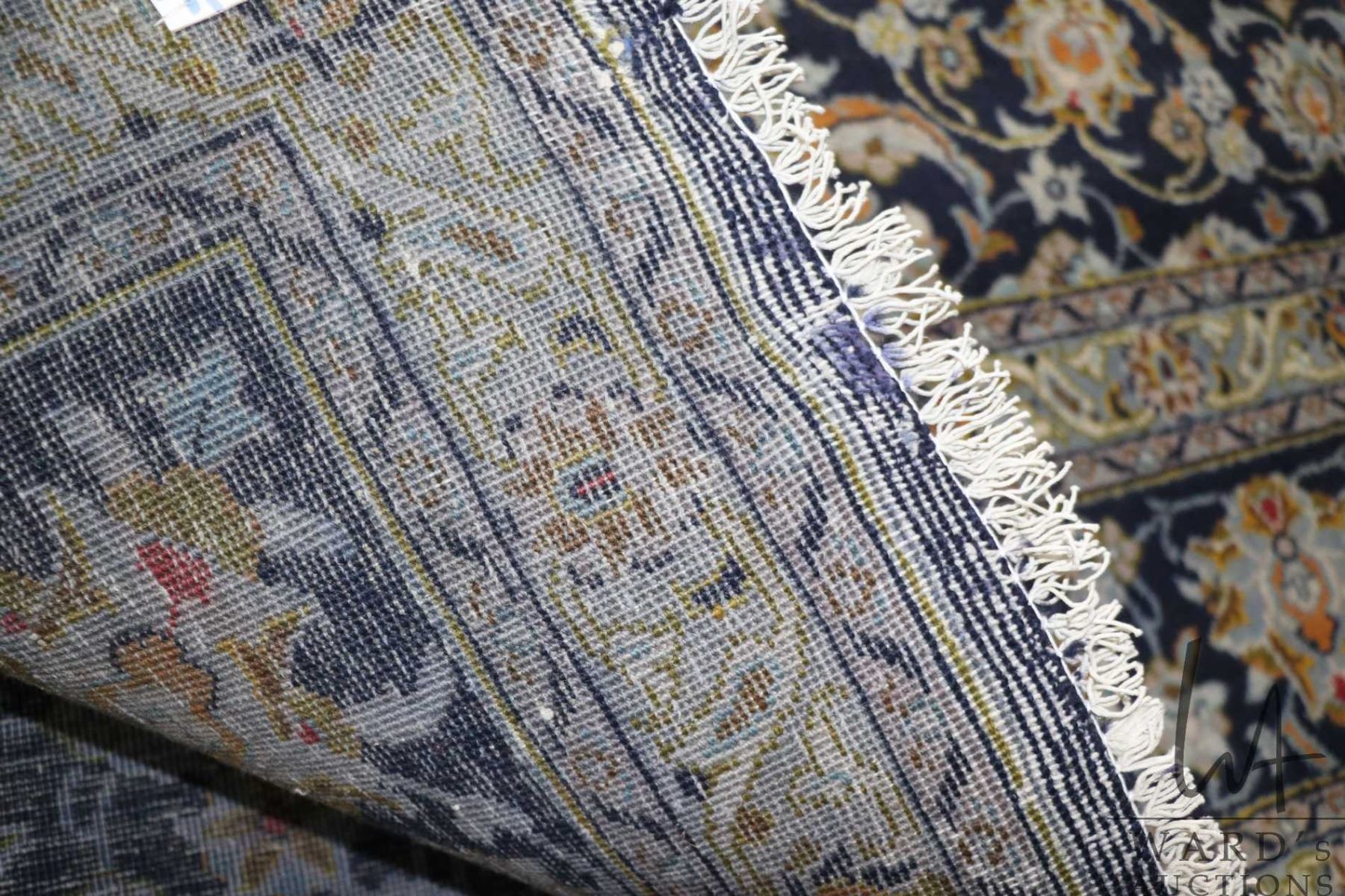 Lot 257 Iranian wool carpet "Kashan" with center medallion on blue background with overall floral design and