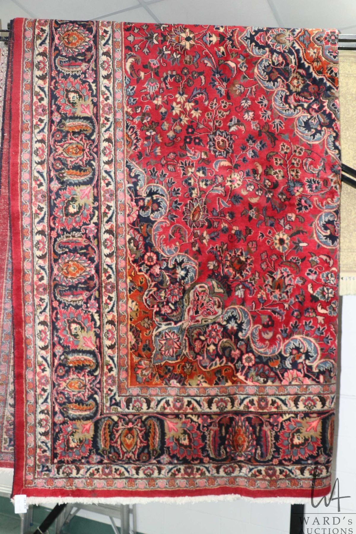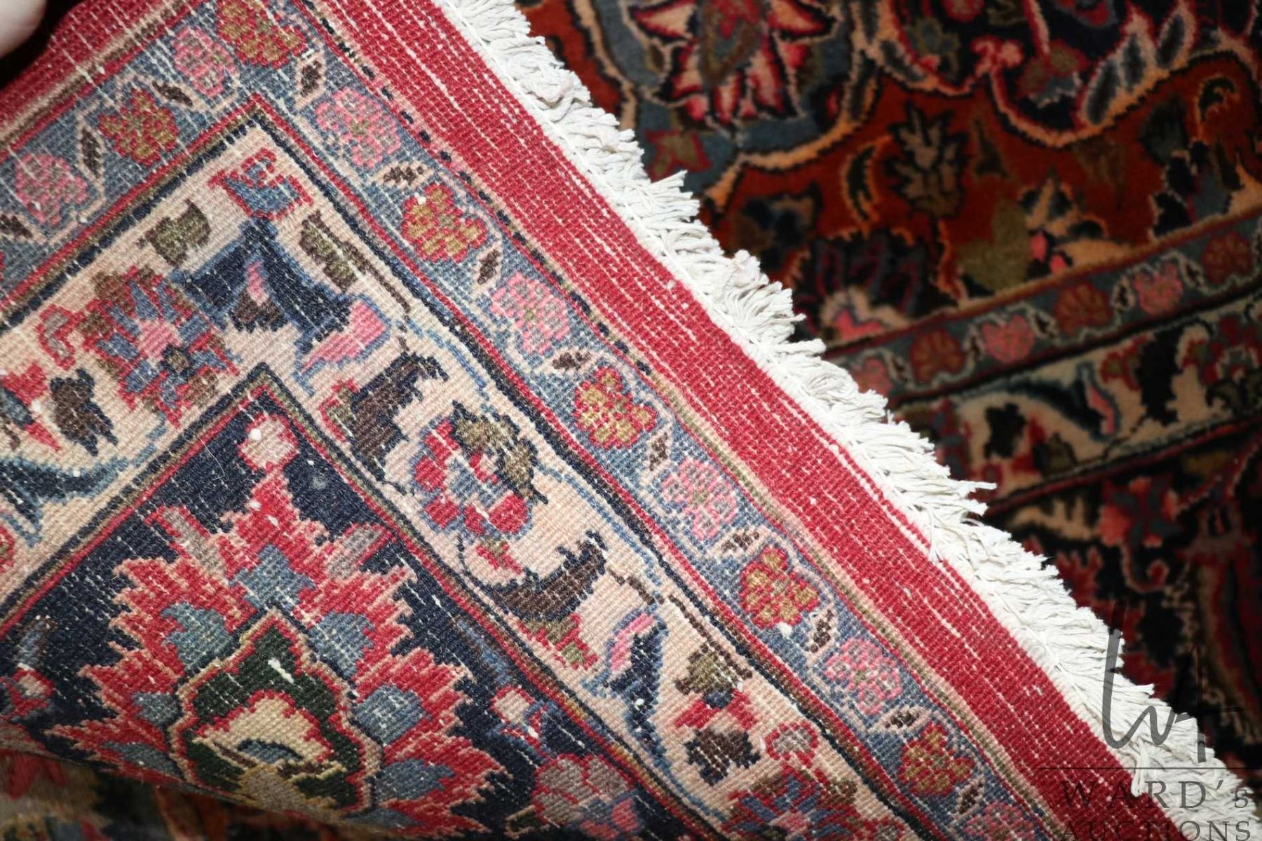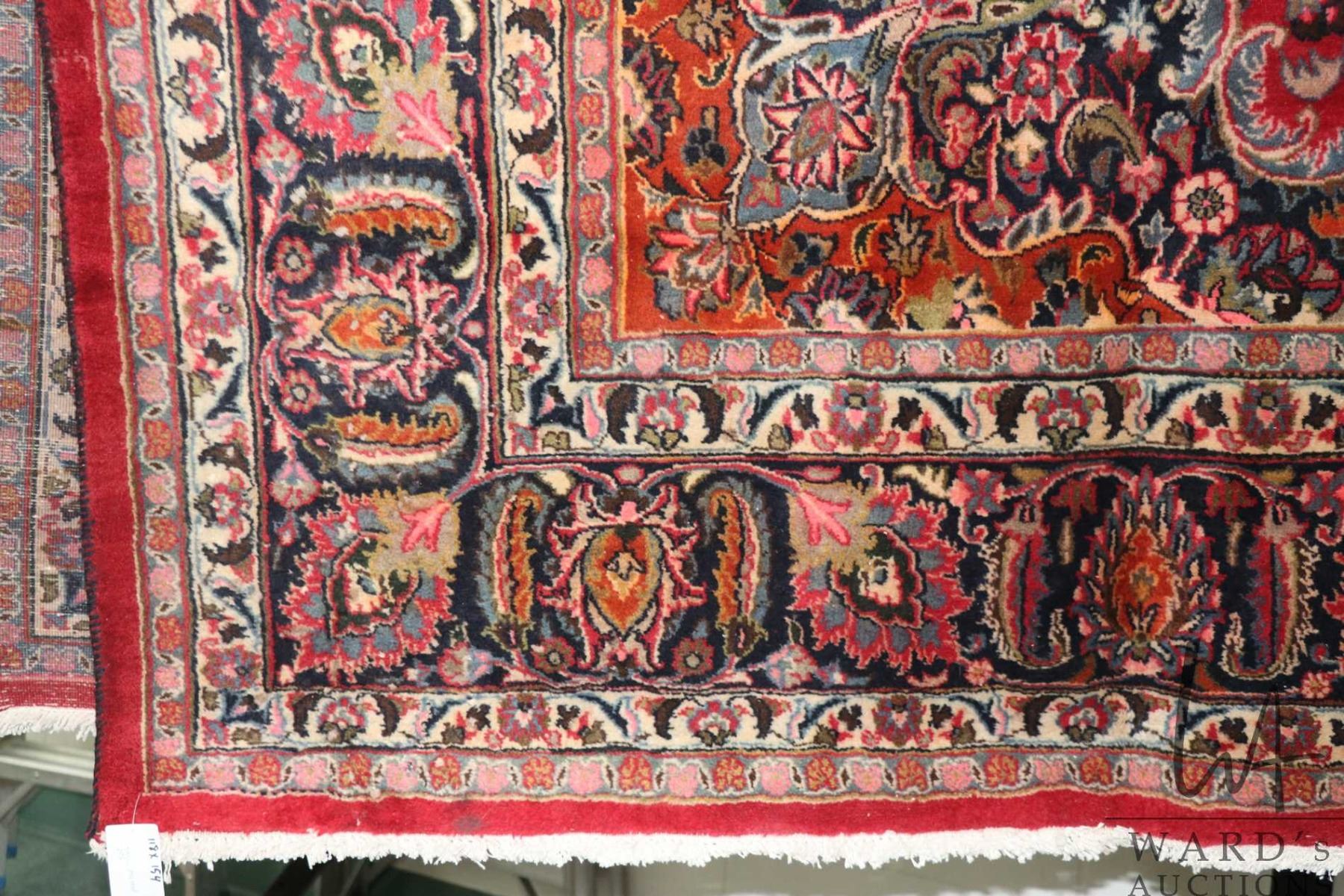 Lot 258 Iranian wool carpet "Kashad with center medallion on red background with overall floral design and h