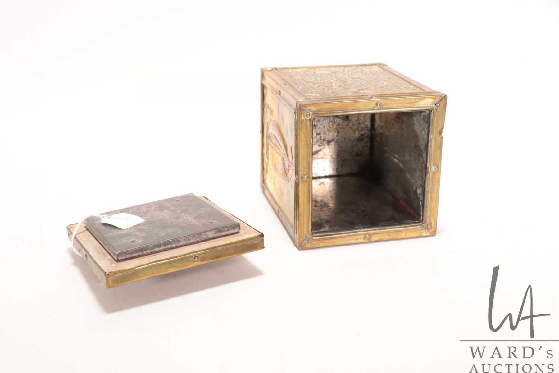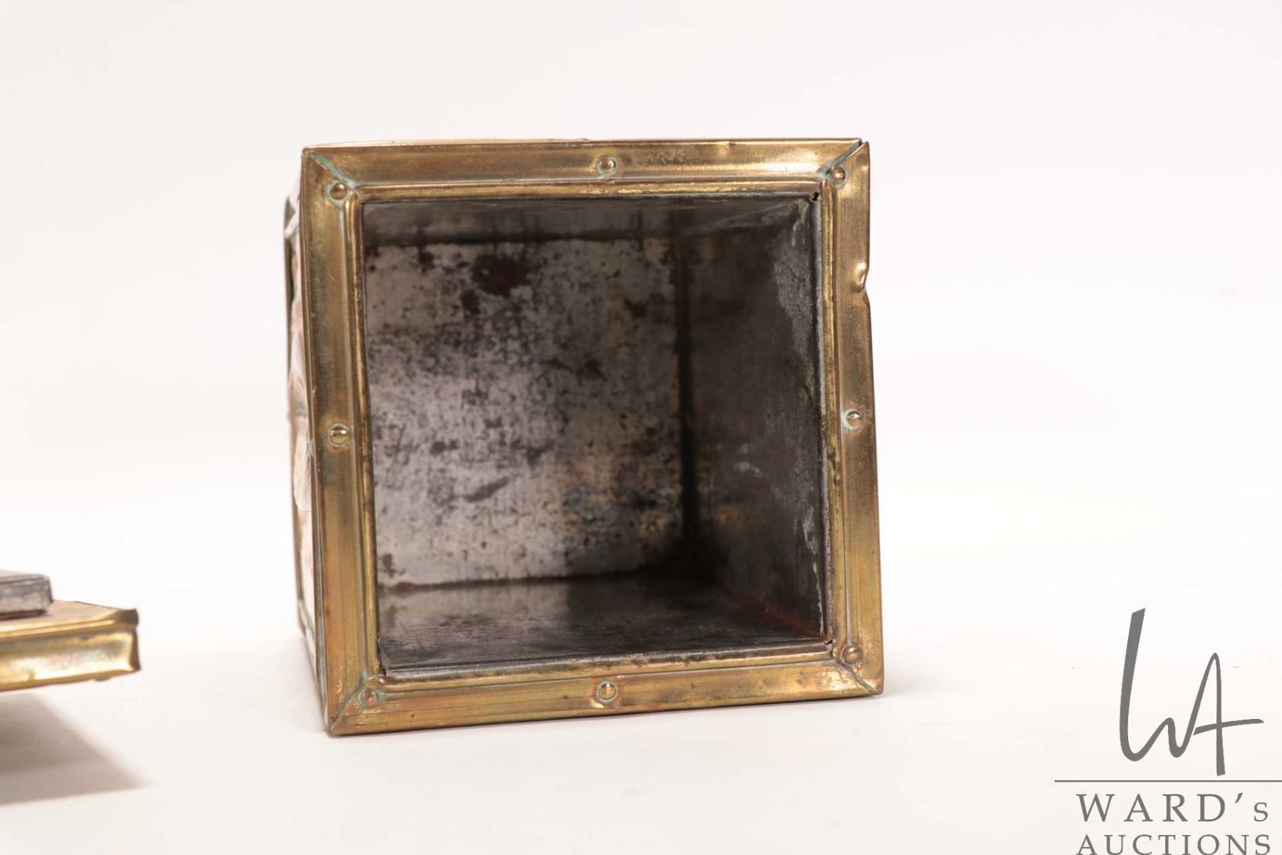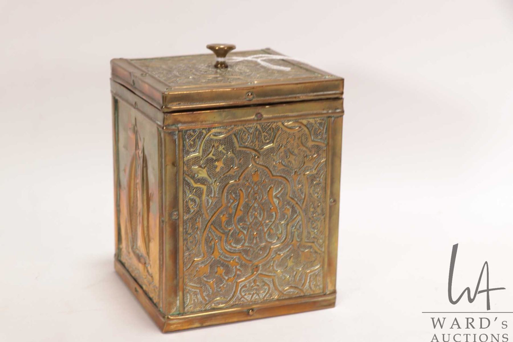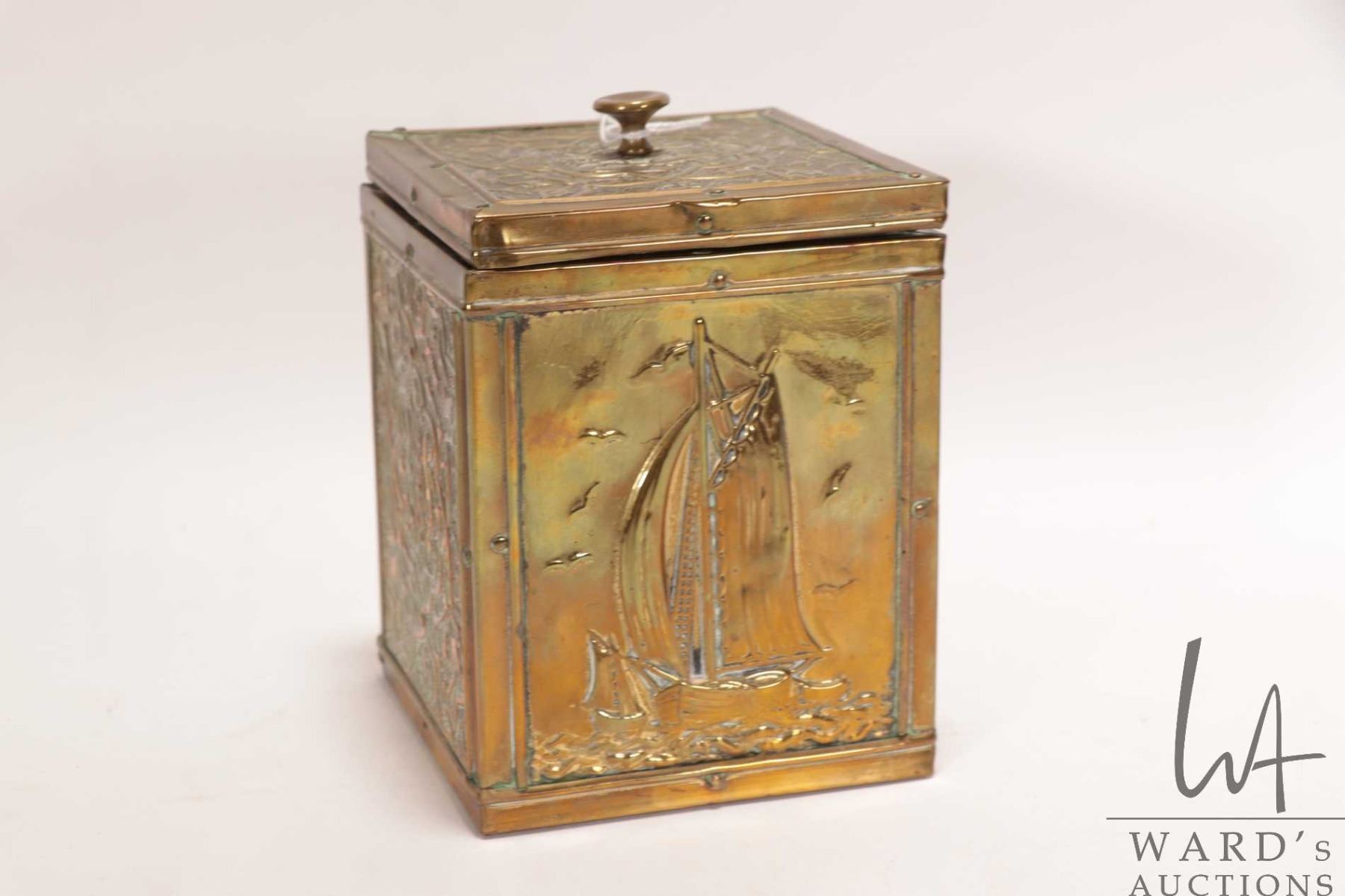 Lot 263 Antique Victorian brass ship's motif tea caddy 5 1/4" X 4" X 4"