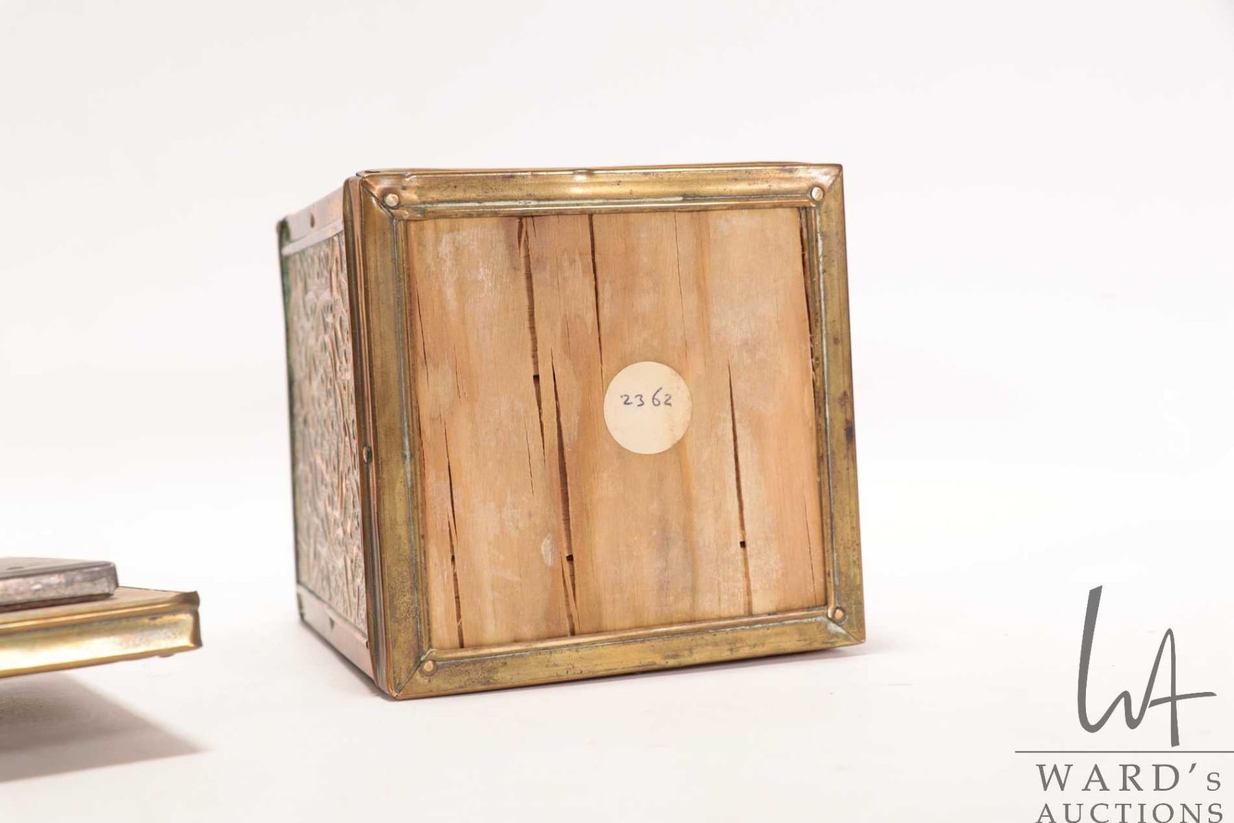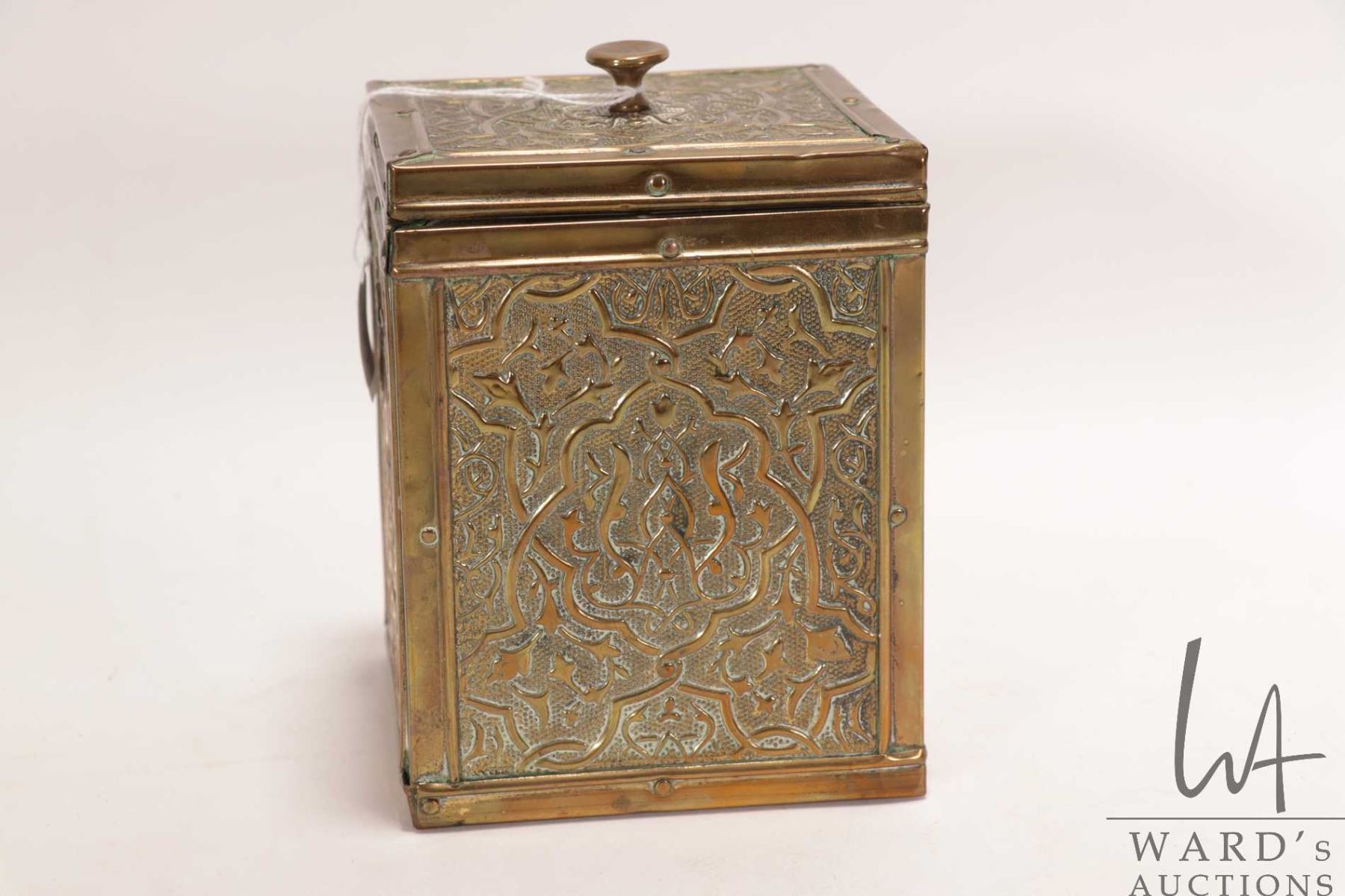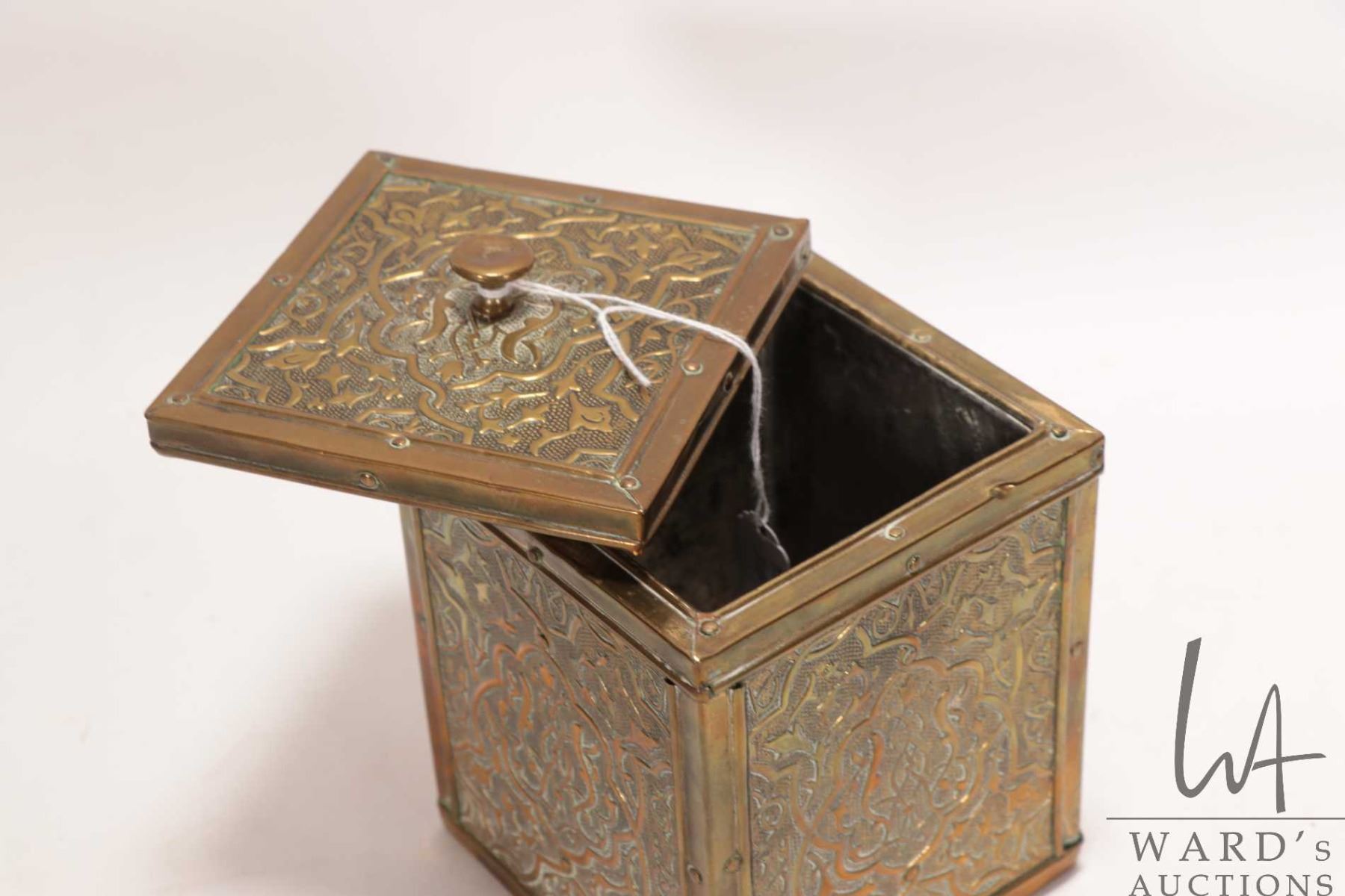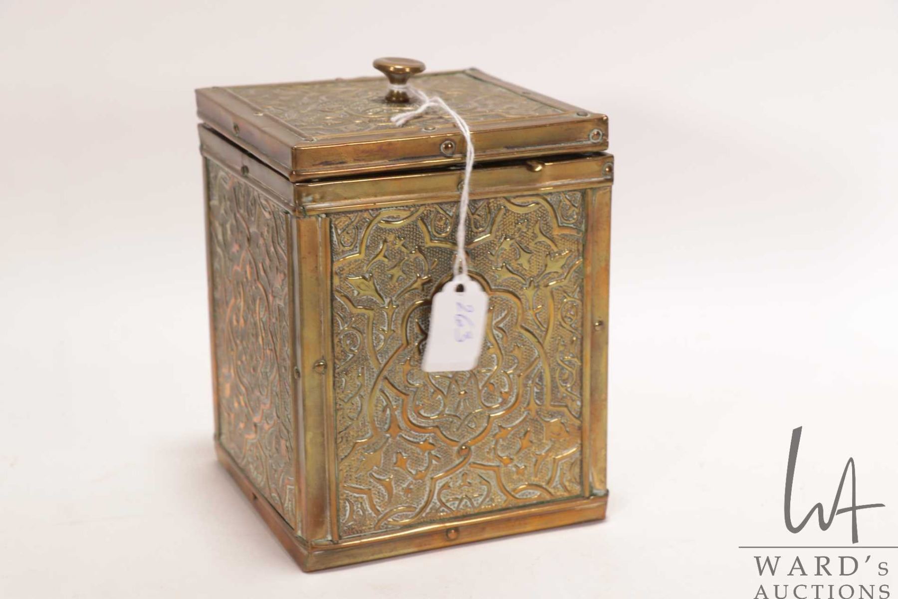 Lot 263 Antique Victorian brass ship's motif tea caddy 5 1/4" X 4" X 4"