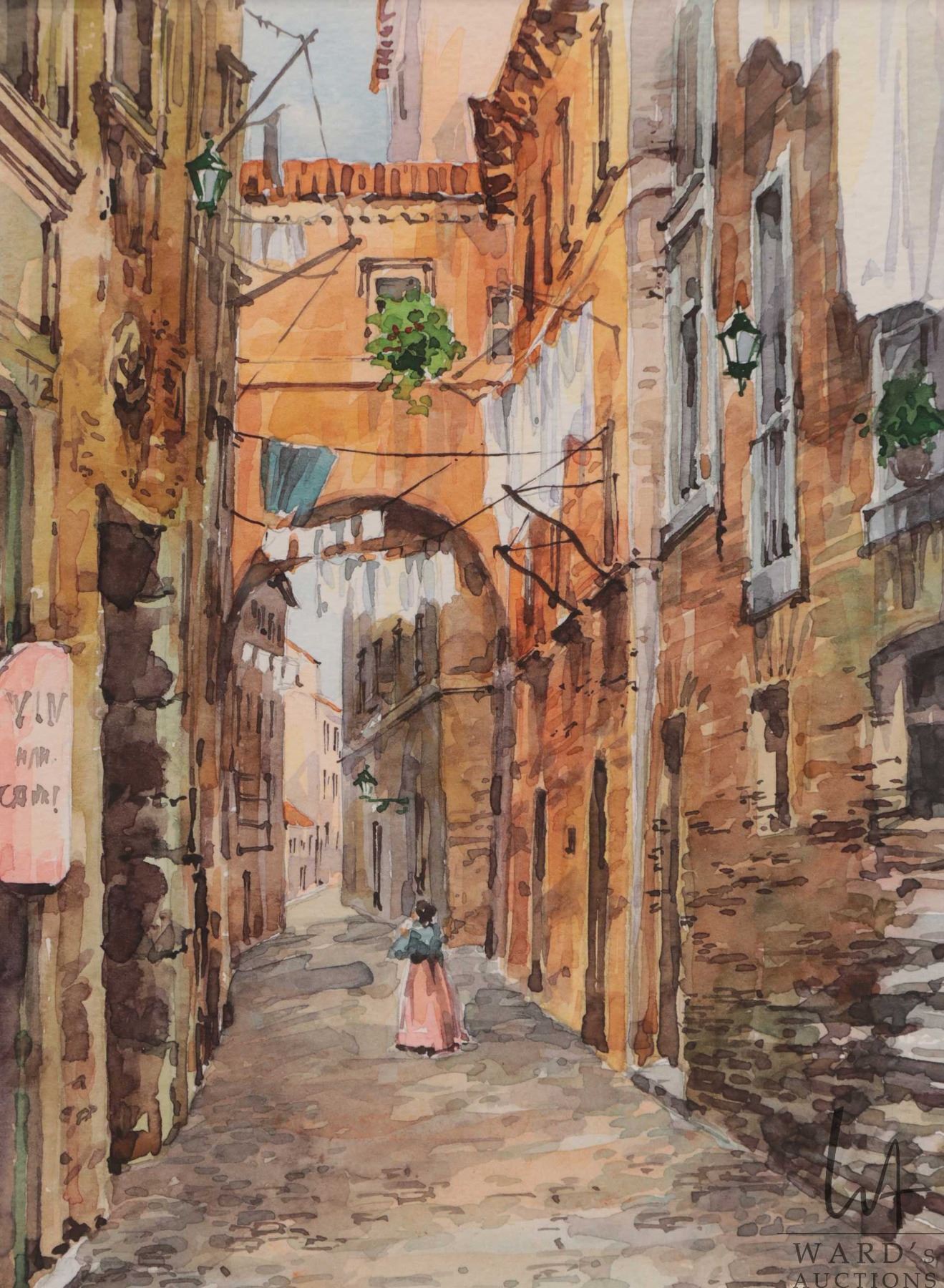 Lot 269 Igor Sava Roma, hand painted watercolour painting of a Venetian street scene, artist signed and date