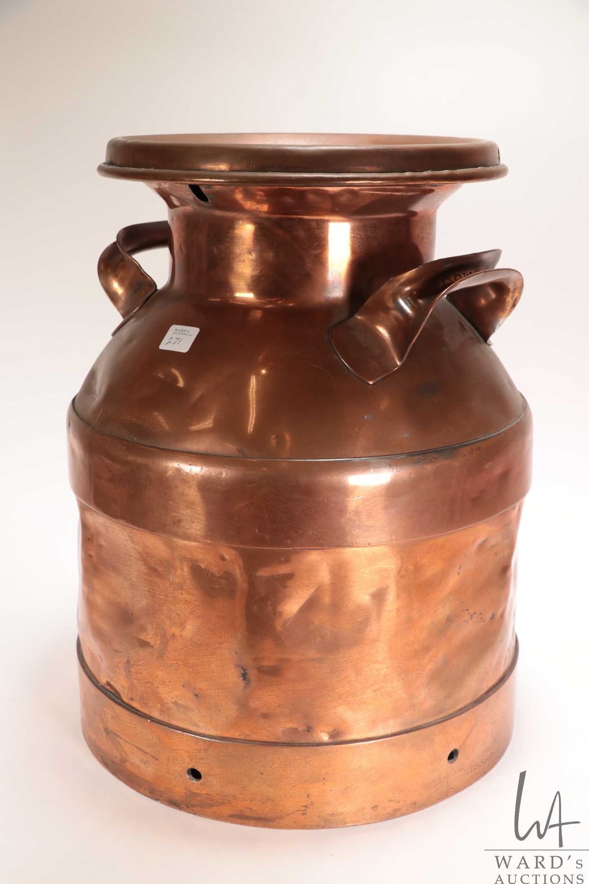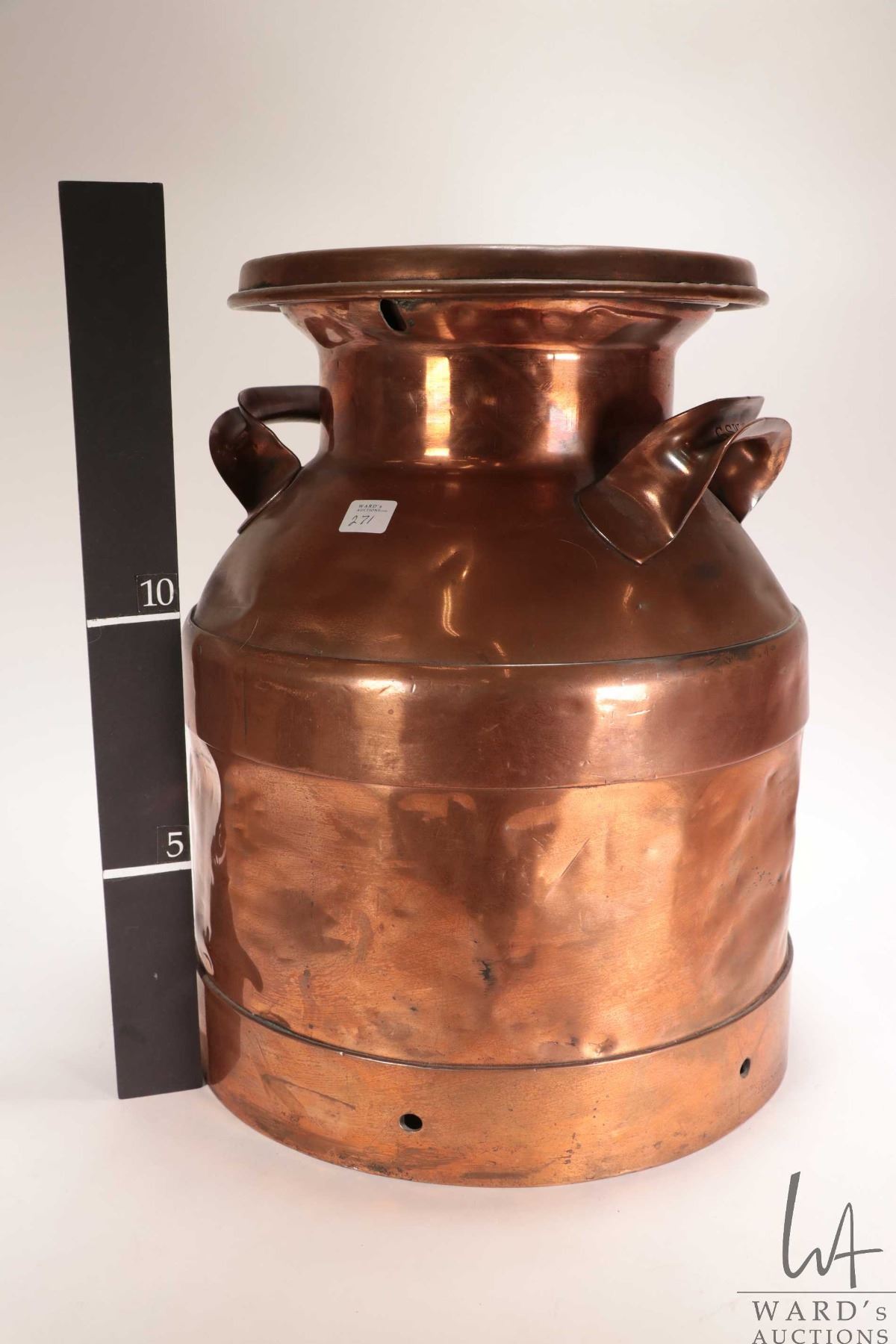 Lot 271 Large 5 gallon copper two handled milk jug with lid, 17" in height