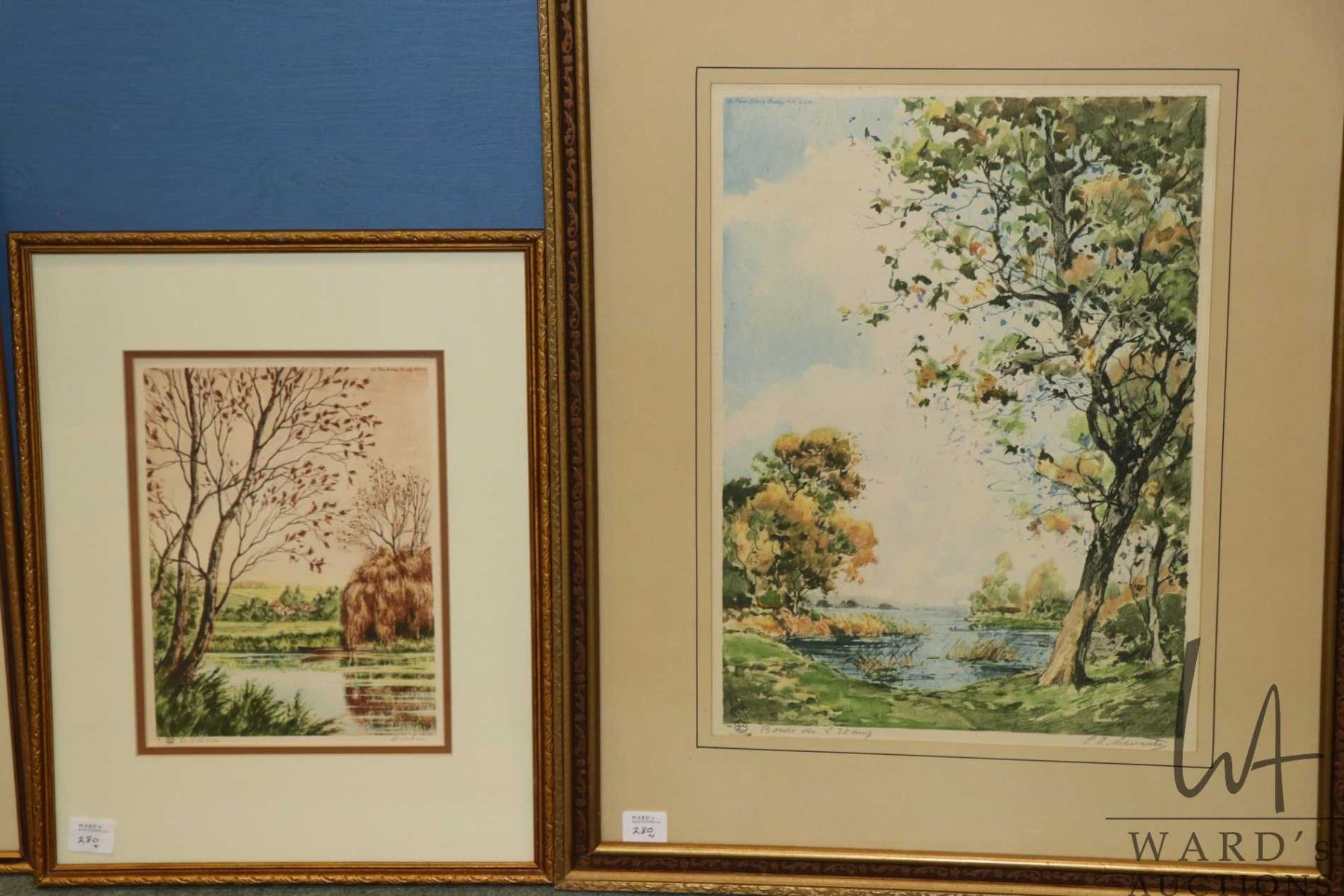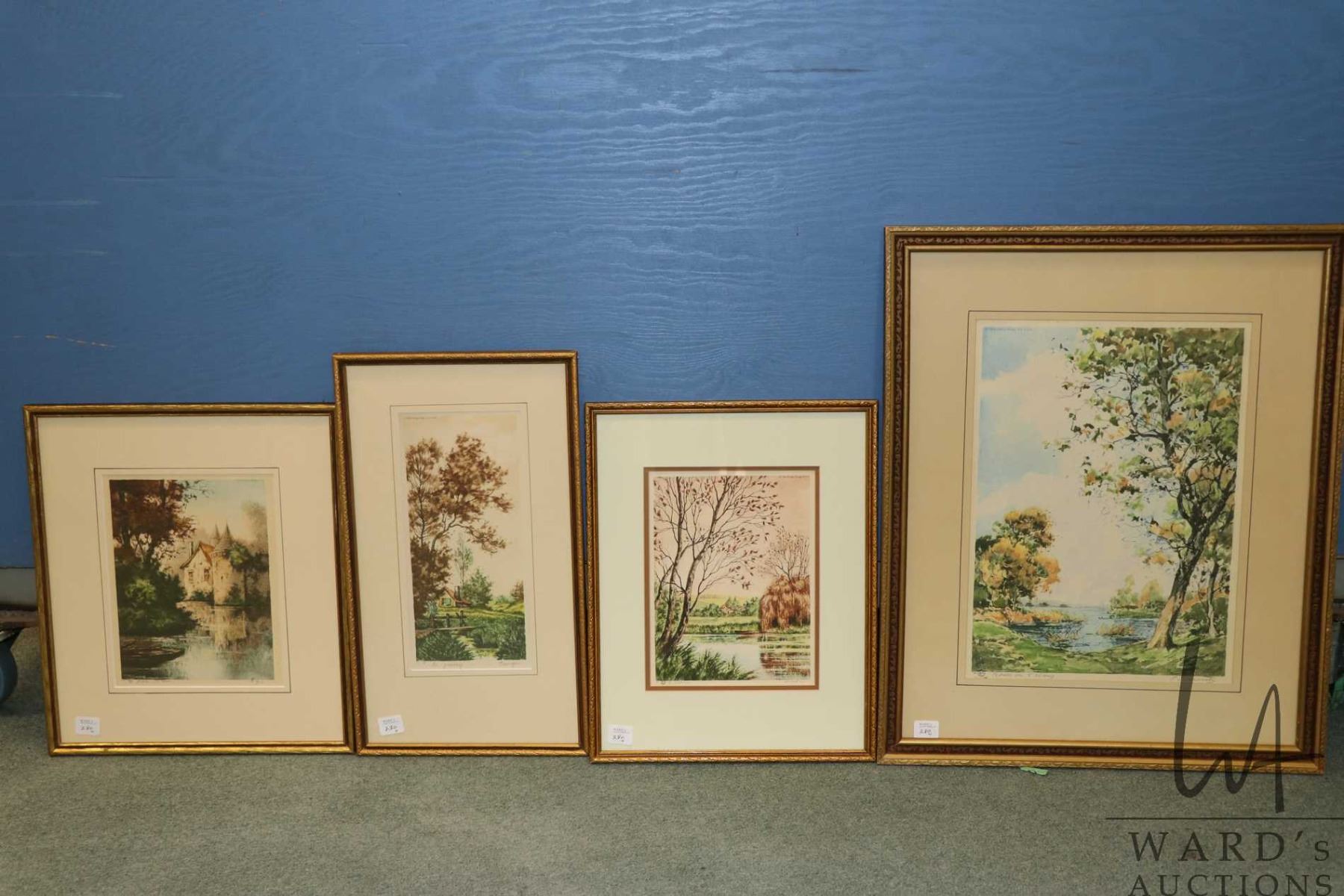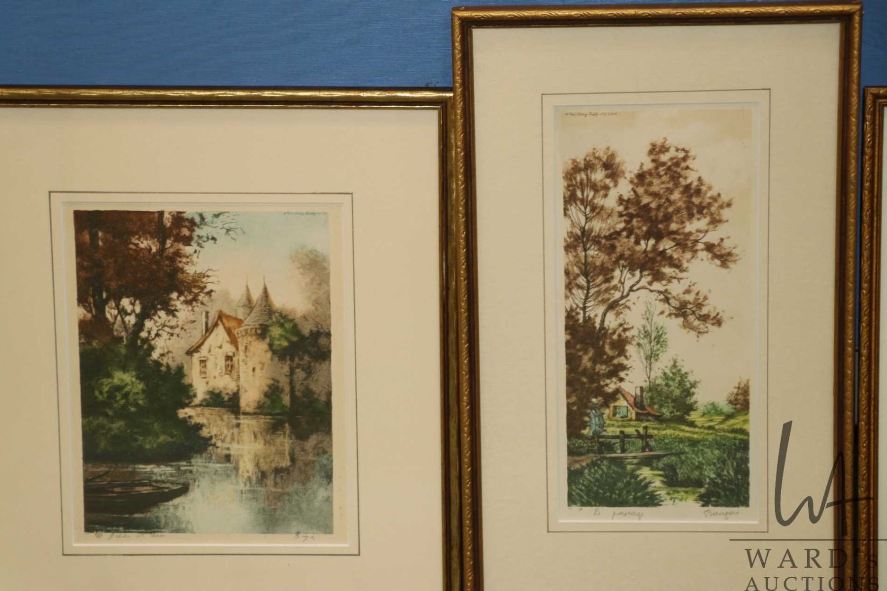 Lot 280 Four vintage/ antique framed etched print landscape scenes including "The Rivulet" by Boyer, "Le Pas