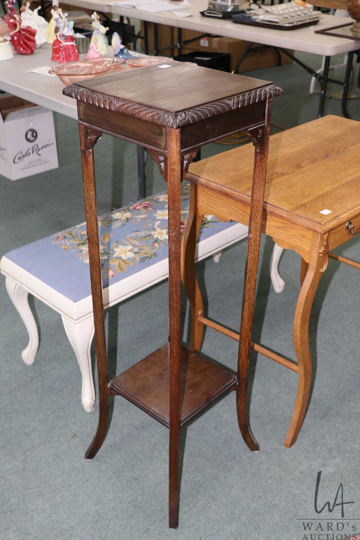 Lot 284 Statuary/Fern stand with decorative skirt and under shelf, 42" in height and a 12" X 12" top