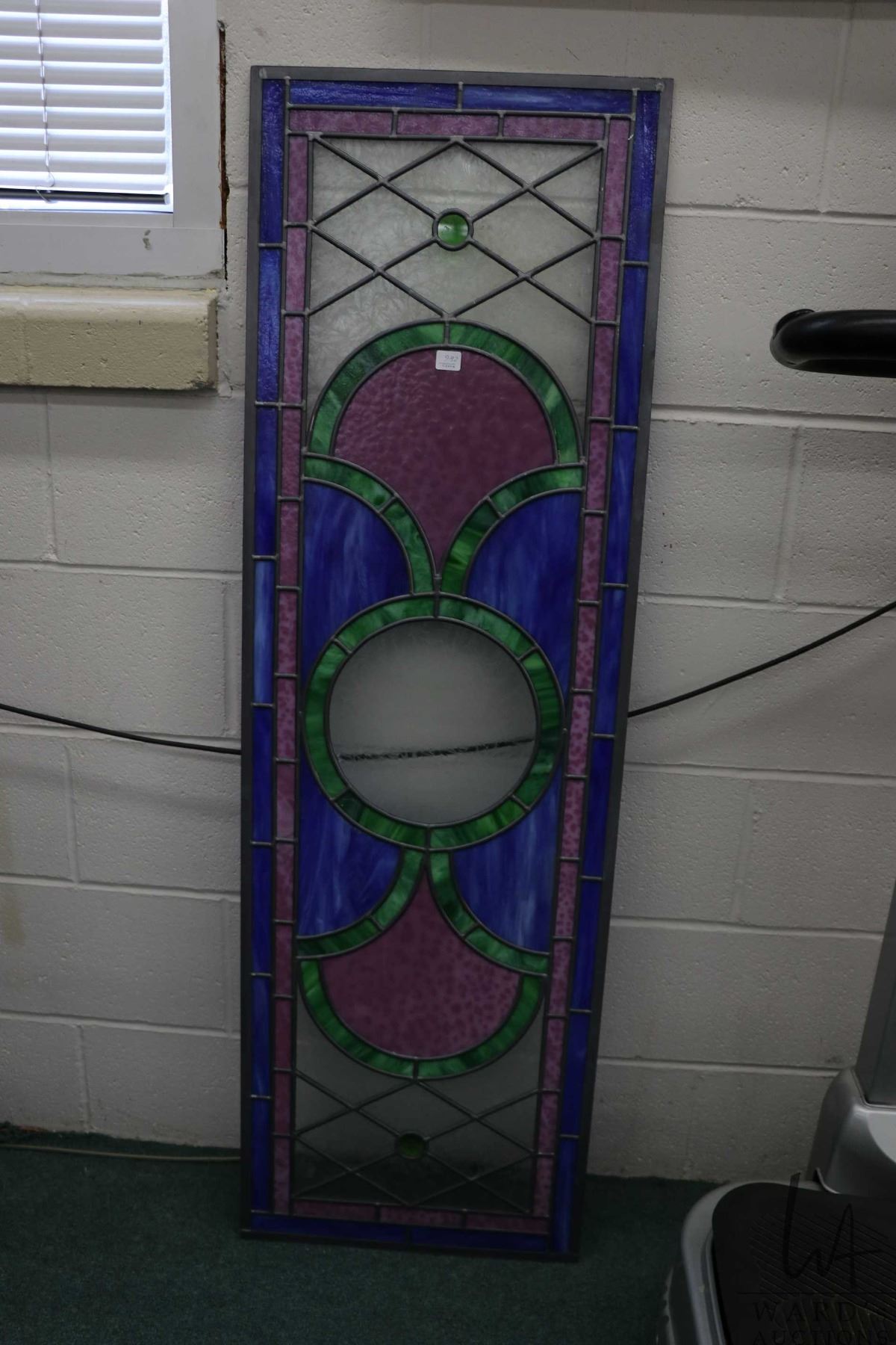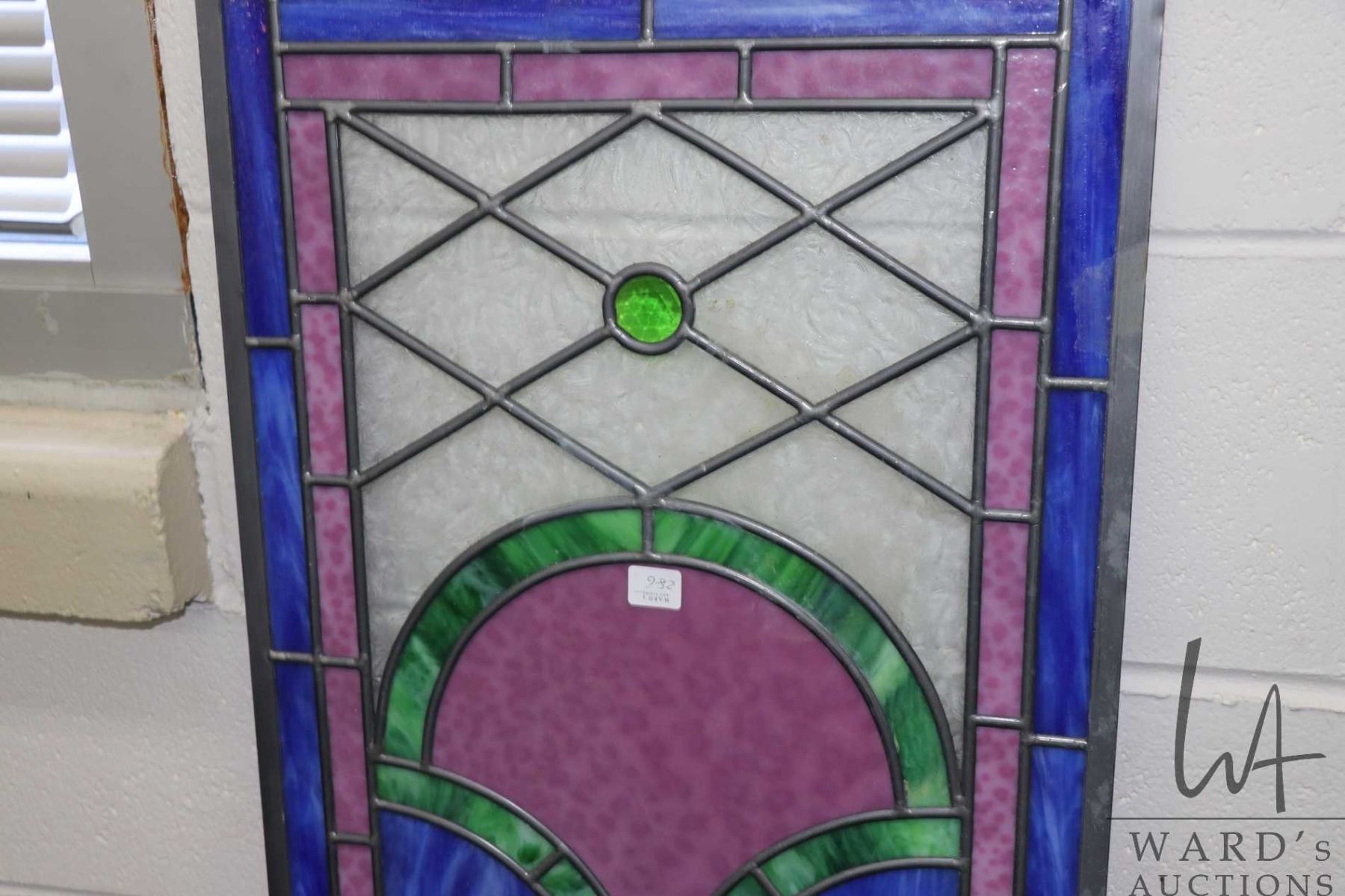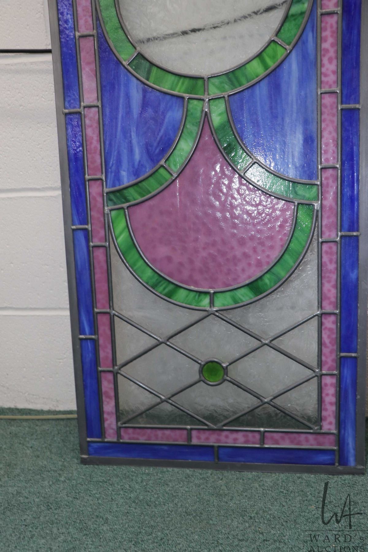 Lot 286 Antique leaded and stained glass transom window panel, 52-1/2" x 16-1/2"