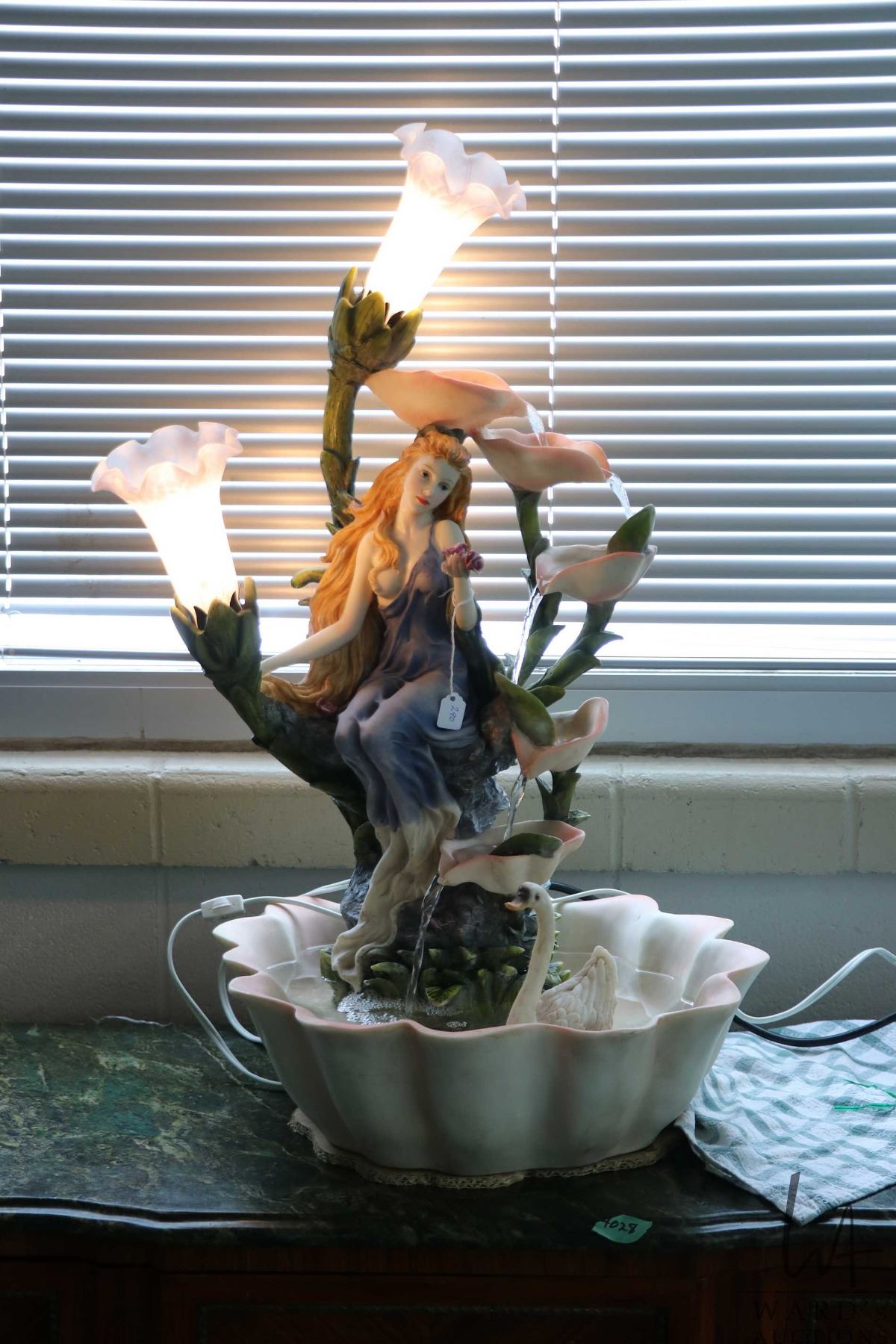 Lot 290 Cast resin Nouveau style water fountain with two lights, working at time of cataloguing