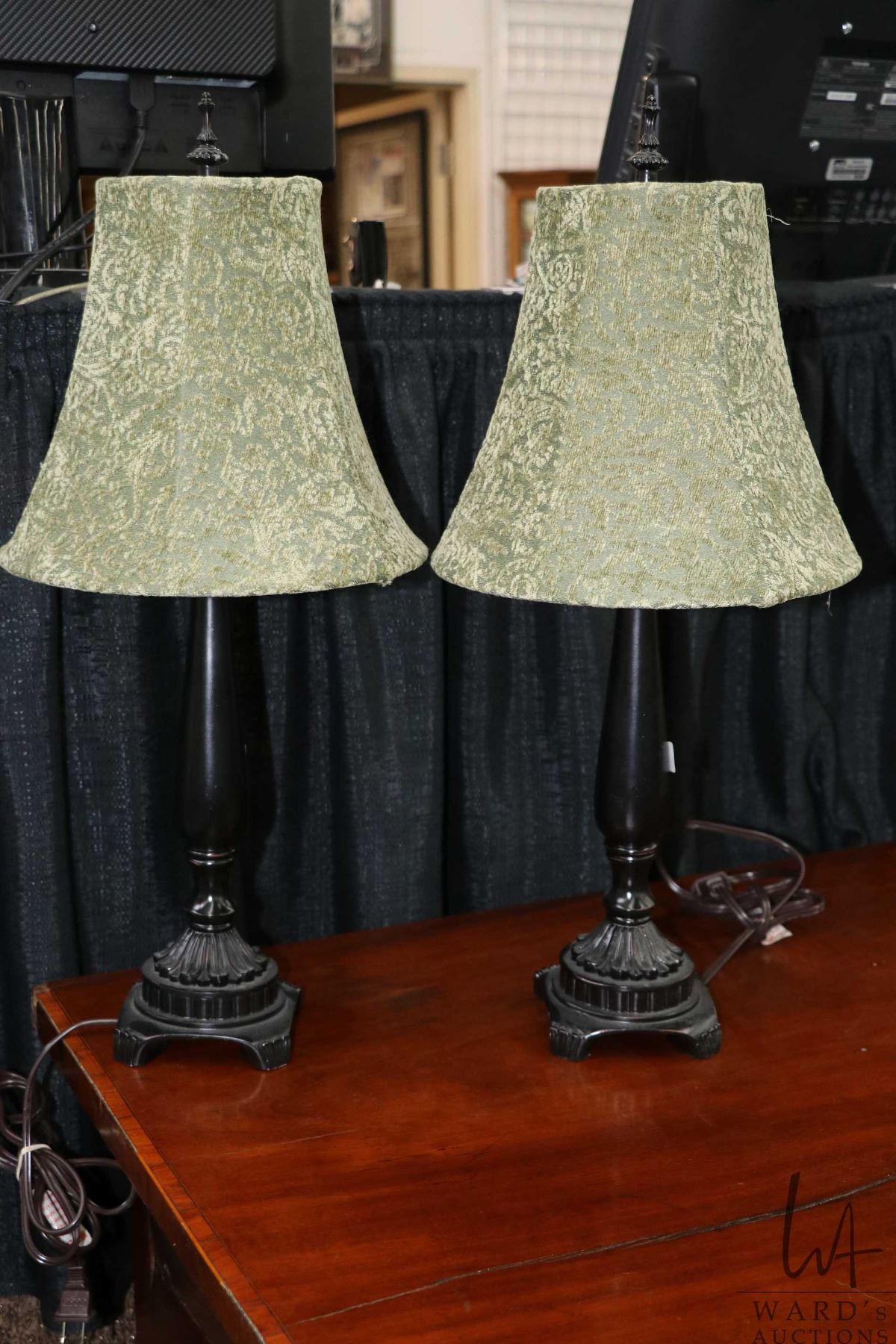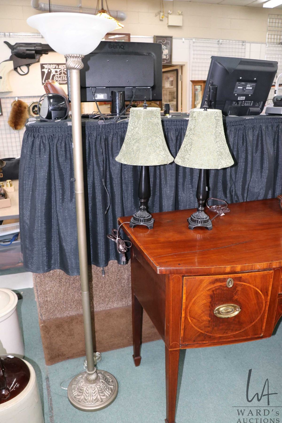 Lot 293 Three modern lamps including one floor standing and two bedside lamps with shades