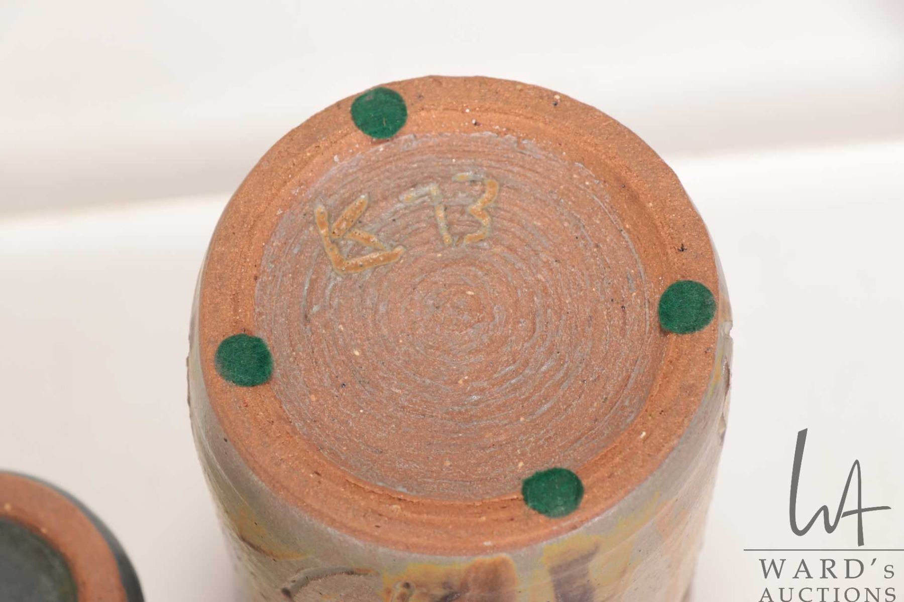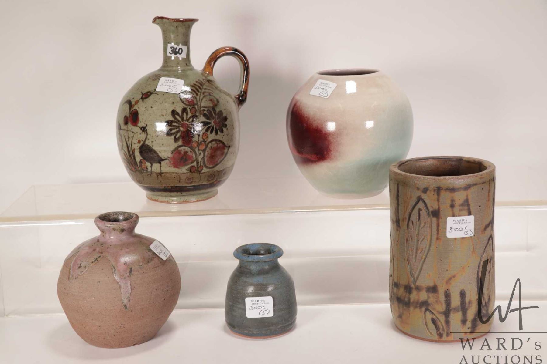 Lot 300c Five pottery vessels including 8" ewer/ pitcher, cylinder vase etc.