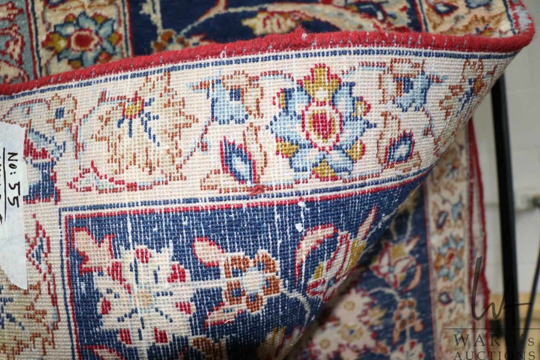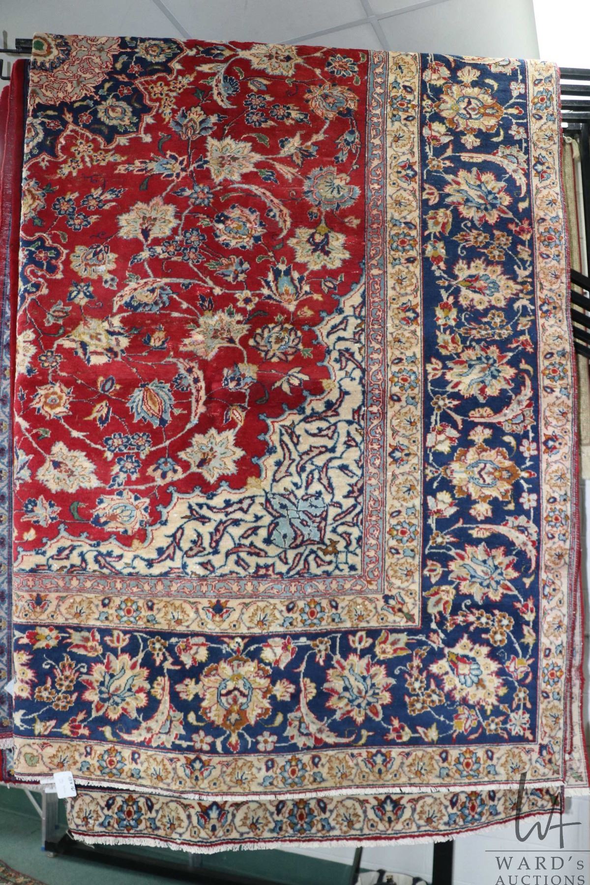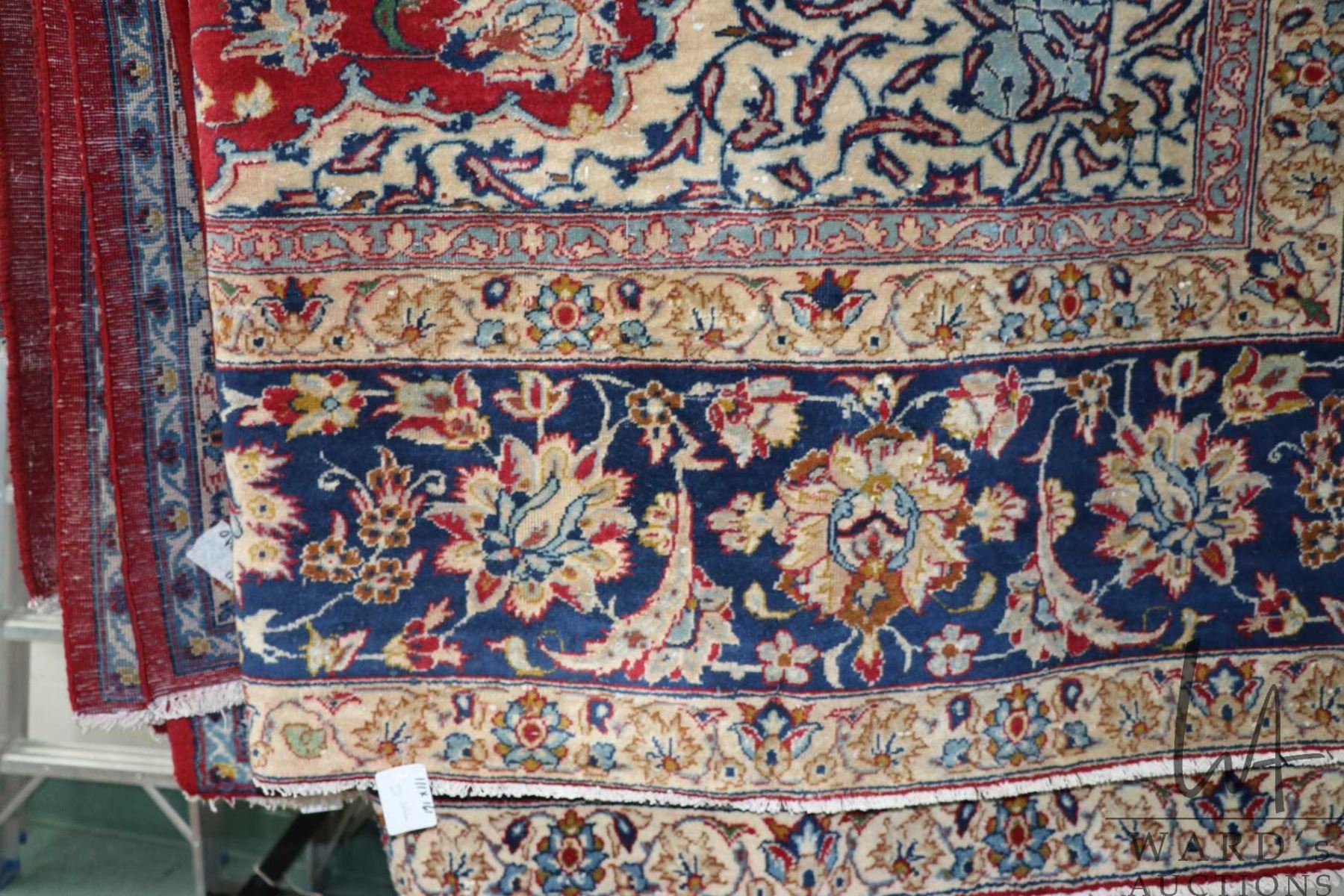 Lot 306 Iranian wool carpet "Esfahan" with center medallion, red background and highlights of blues, cream a