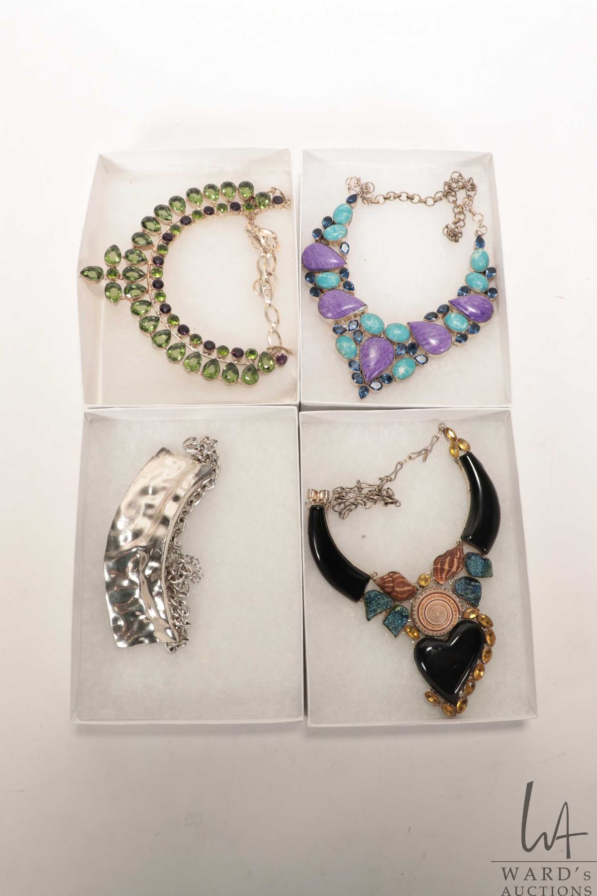 Lot 311 Four silverplate and gemstone necklaces