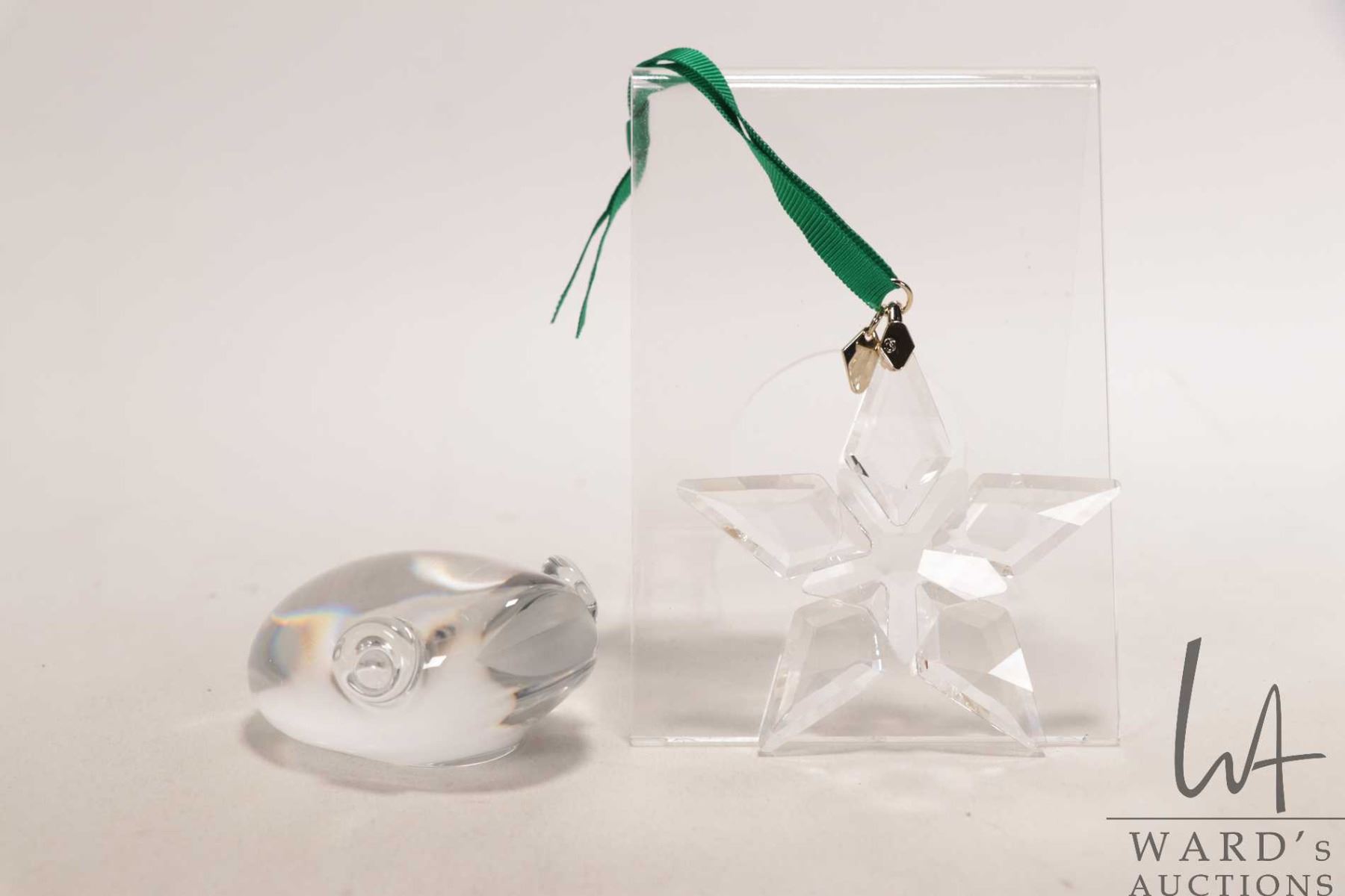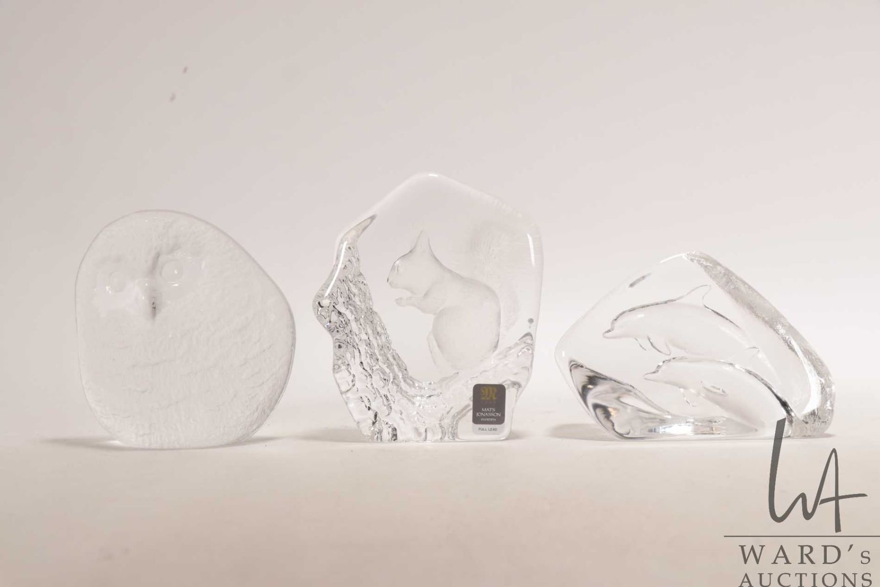 Lot 337 Mat Jonnason, three hand signed crystal sculptures including 4 1/2" squirrel, a pair of dolphins and