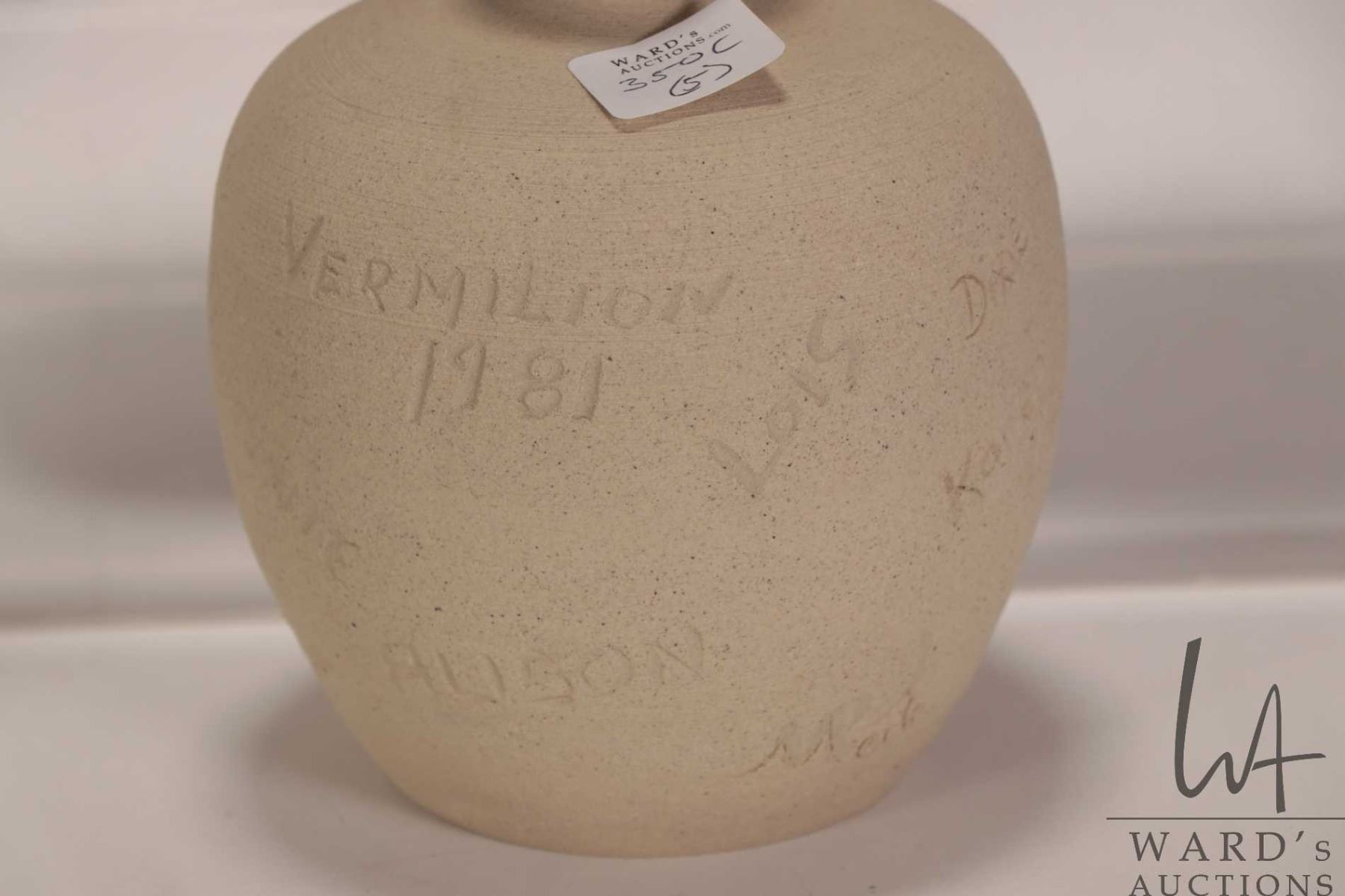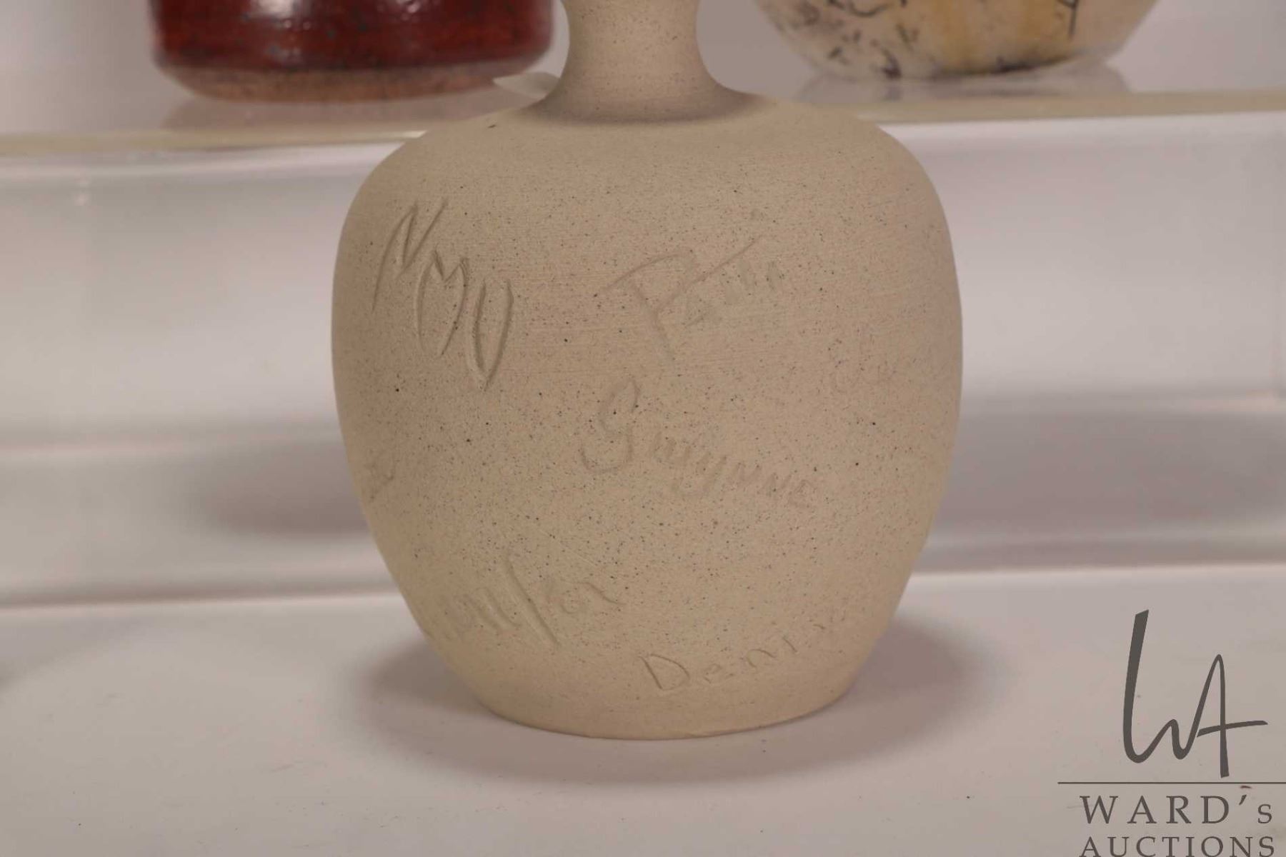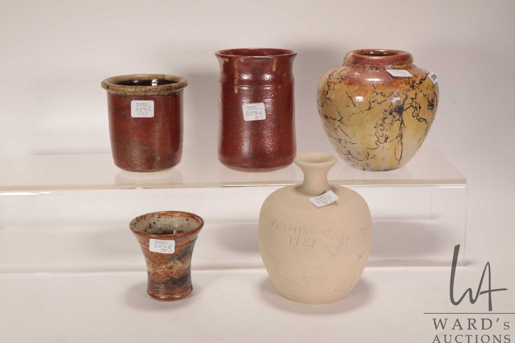 Lot 350c Five pieces of artisan pottery including three signed pieces ranging from 3" to 5 1/2" in height