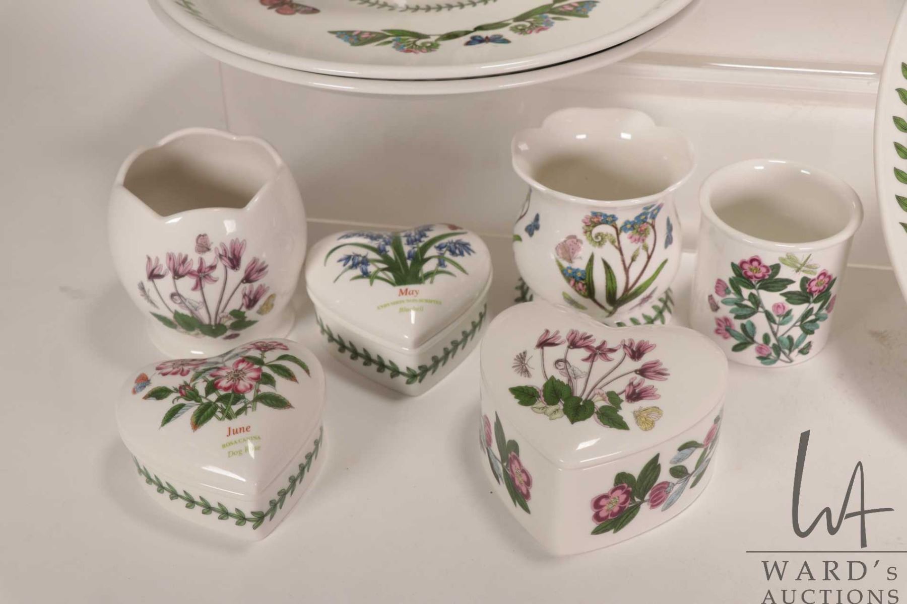Large selection of Portmeirion Botanic Garden porcelain including 14" diameter divided dish, two 10 3/4" plates, three heart shaped lidded trinket boxes, three small vases plus a teapot, note: teapot has hairline crack in lid