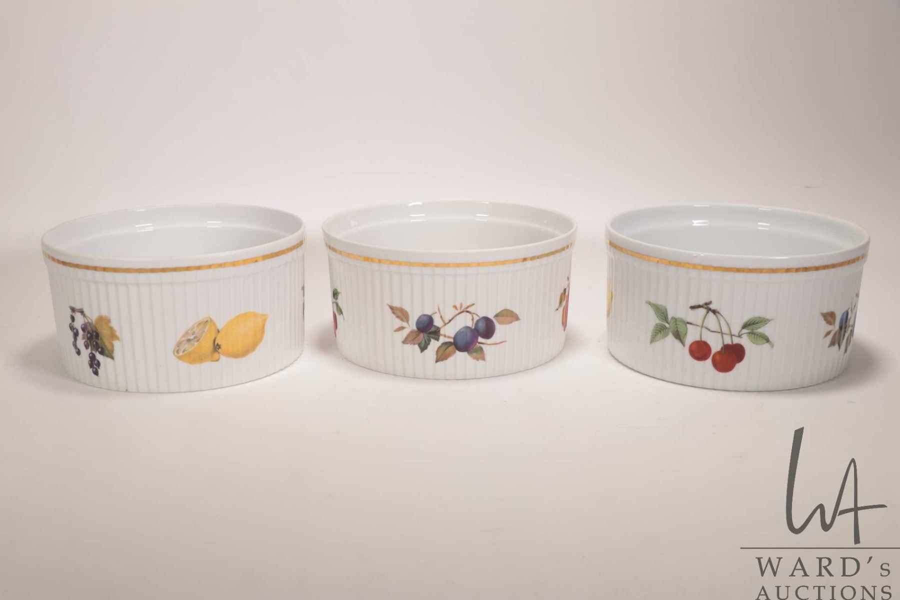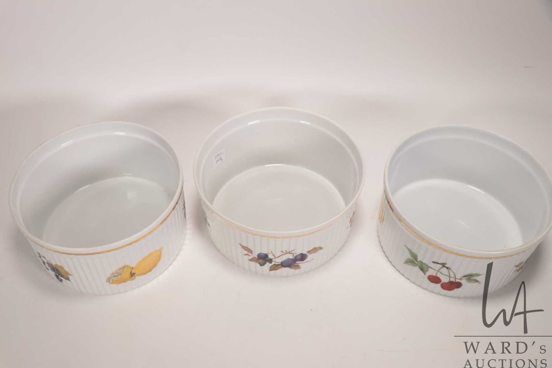 Lot 358 Three Royal Worcester Evesham Gold souffle dishes, each 7 1/4" in diameter