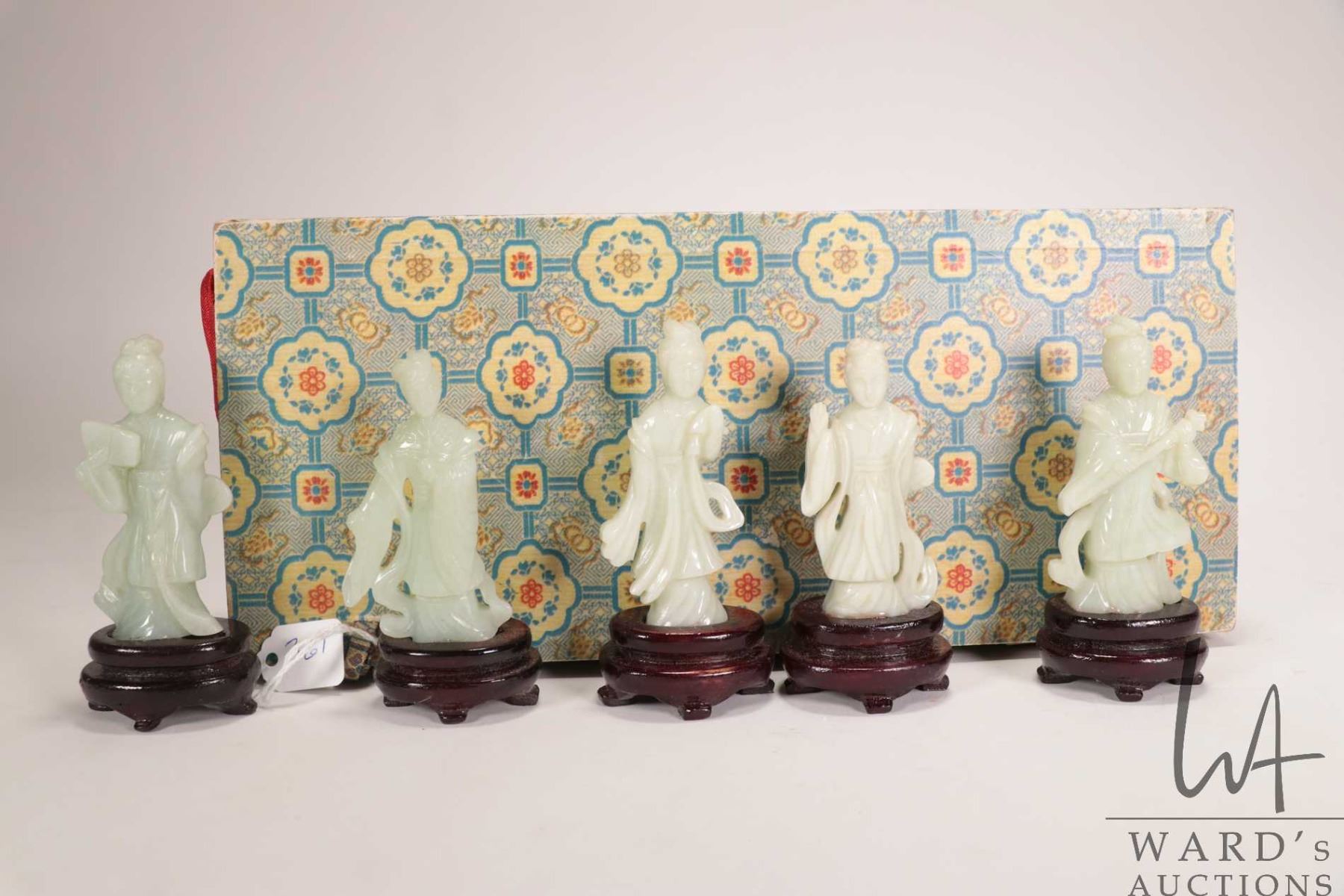 Lot 361 Five jade like carved Chinese figures in fitted box