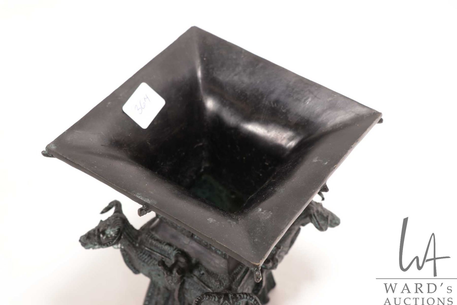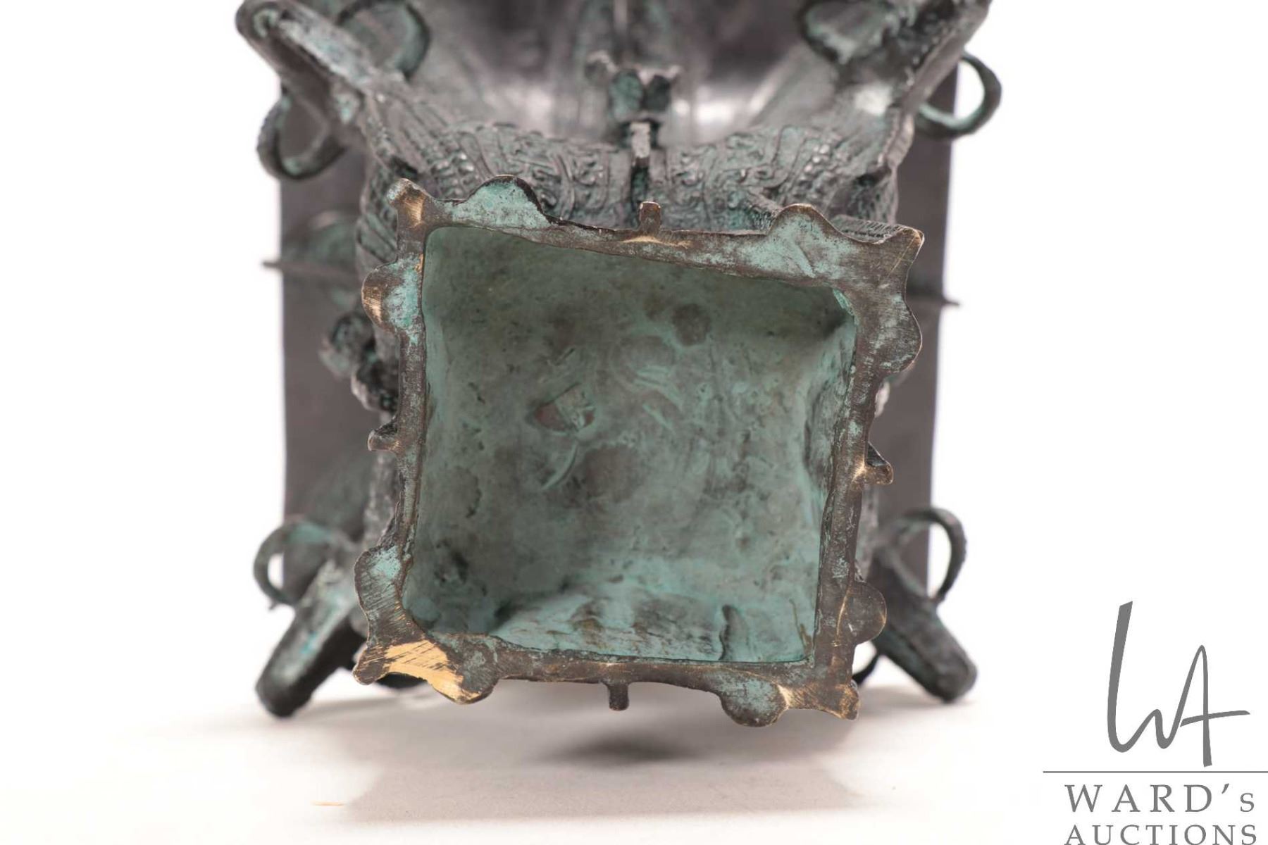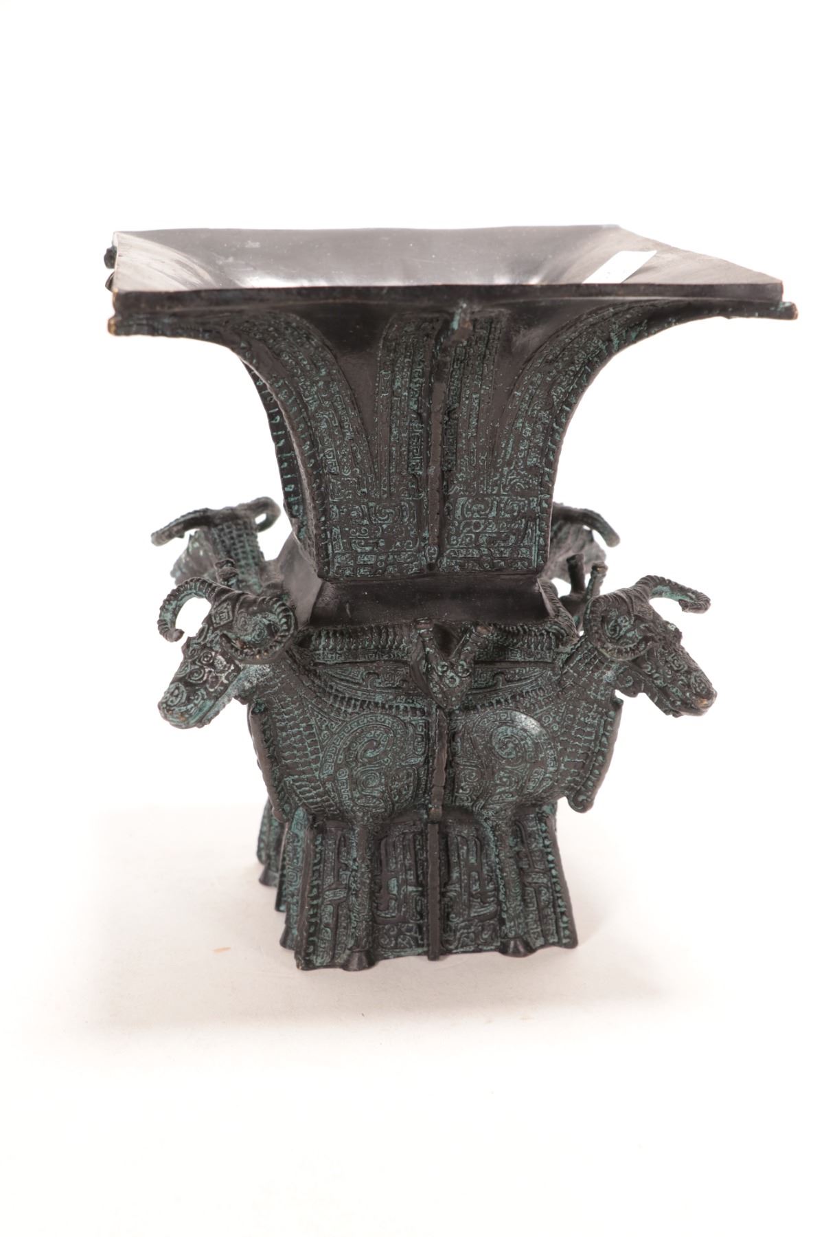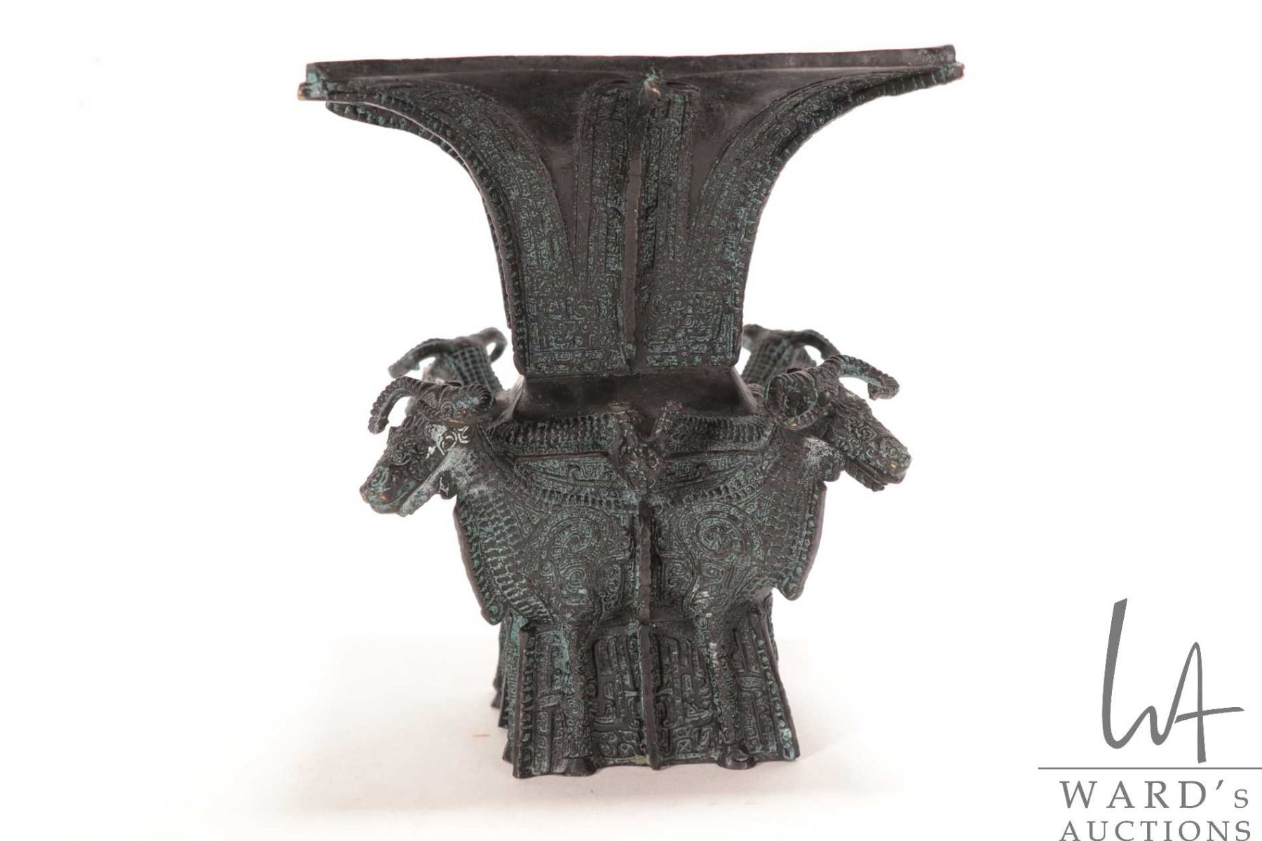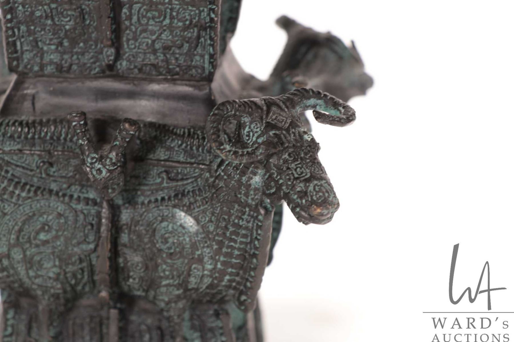 Lot 364 Chinese four ram head Hu Shang style square zun ritual bronze pouring vessel