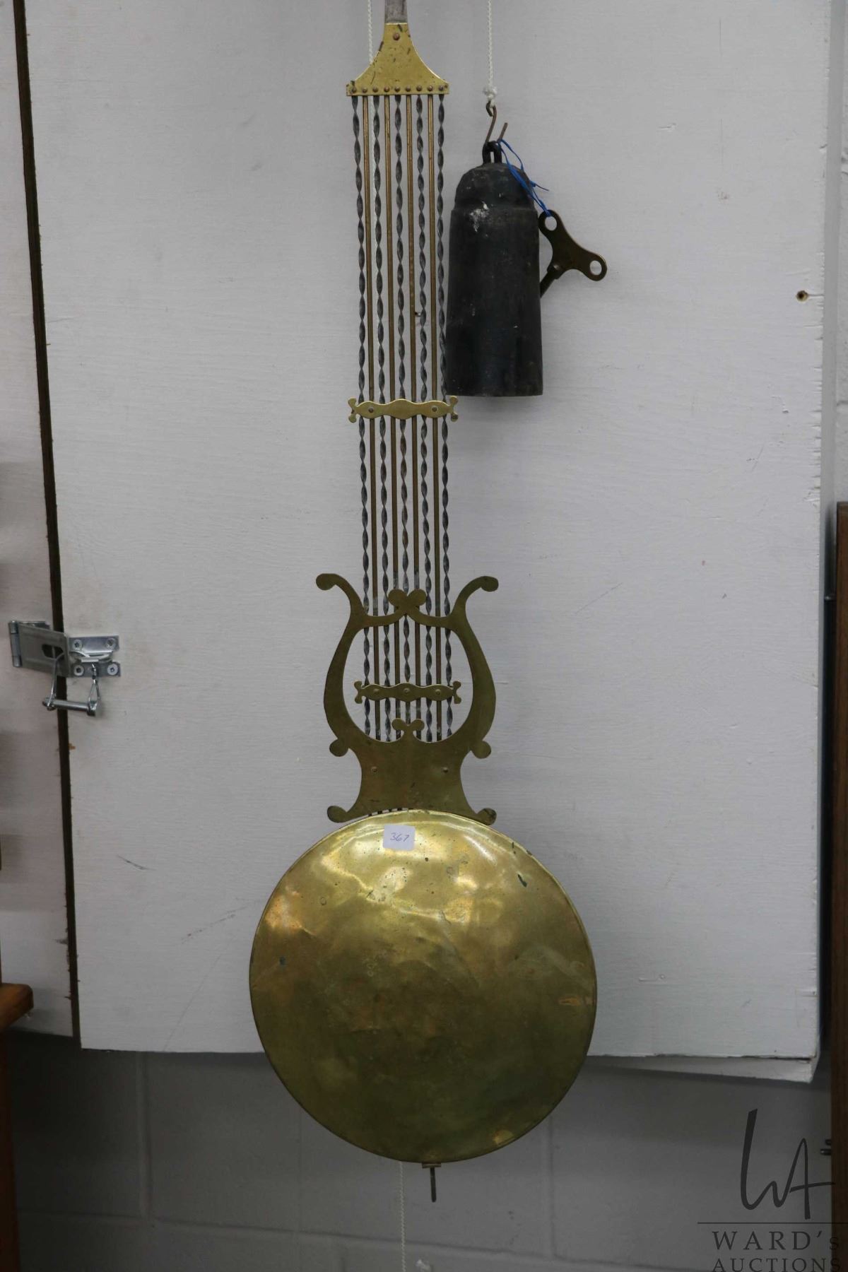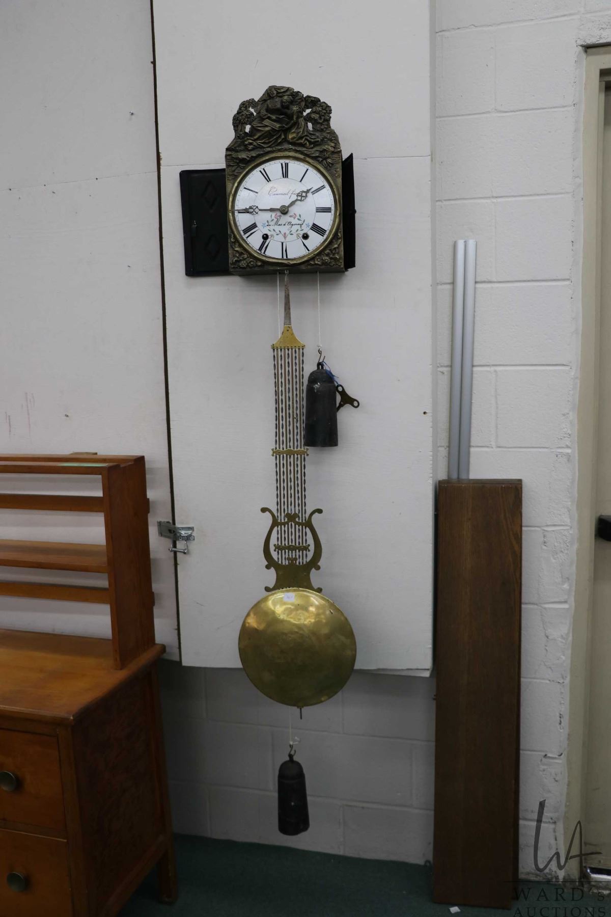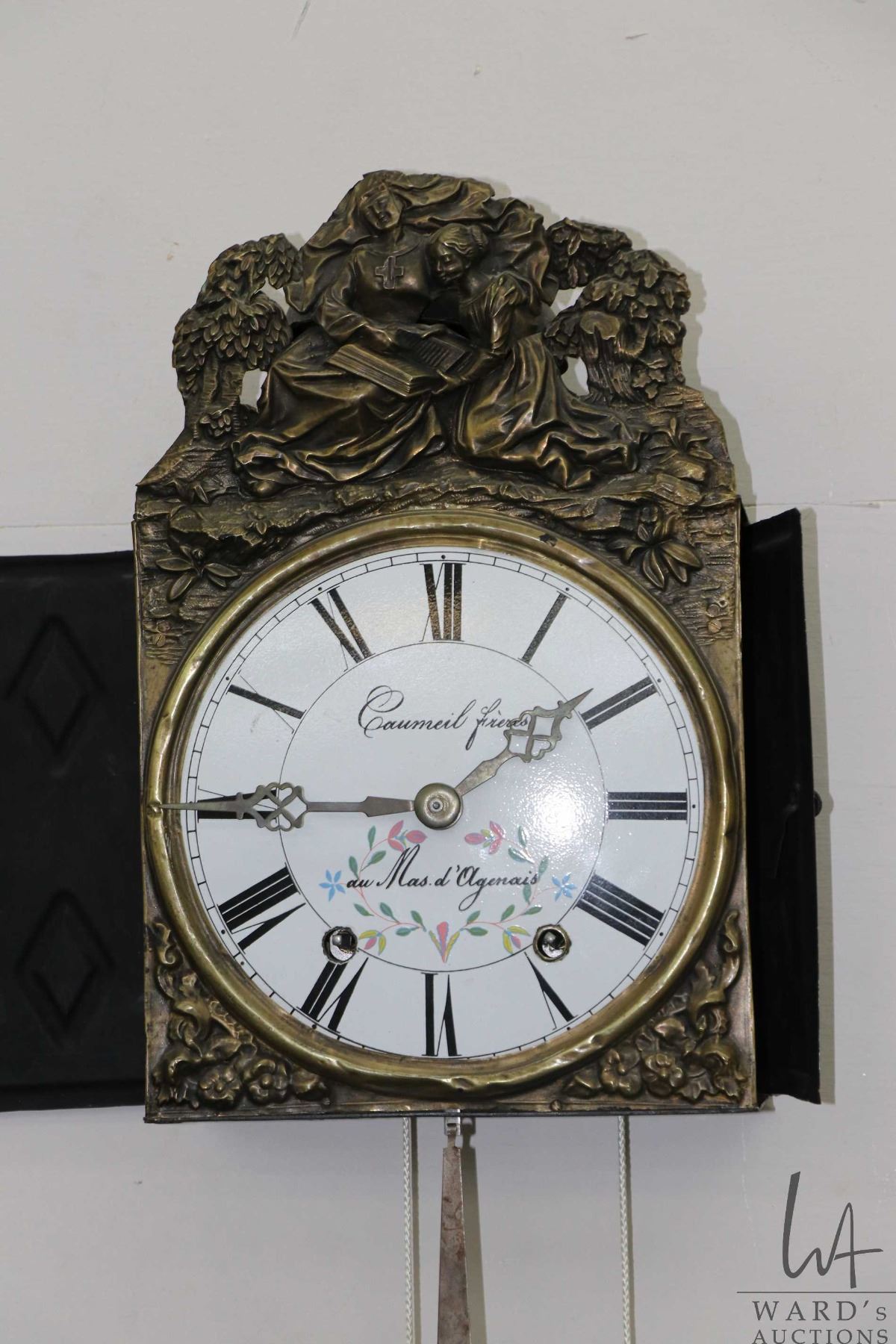 Lot 367 Antique French Caumiel frieres au mas d'Agenais counter weight driven chiming wall clock with 40" pe