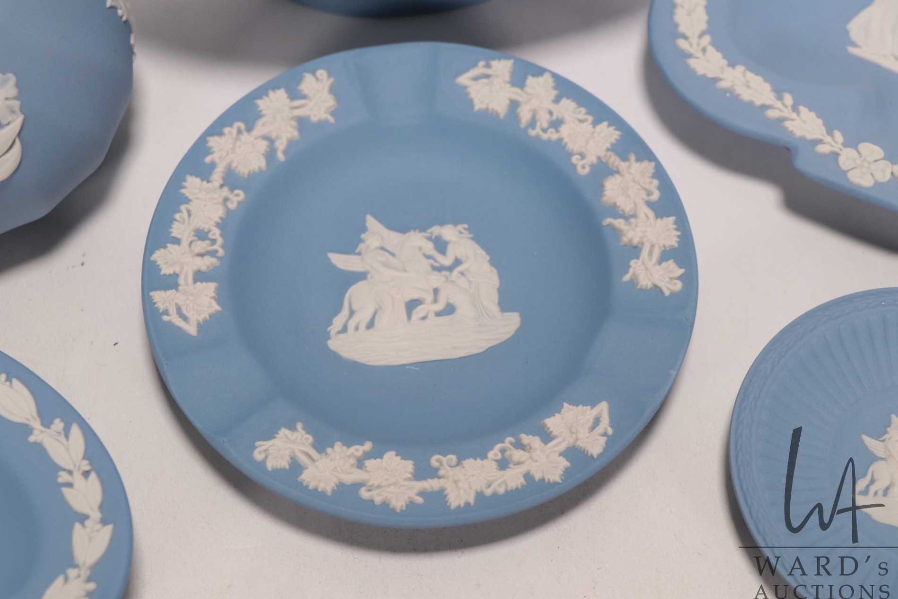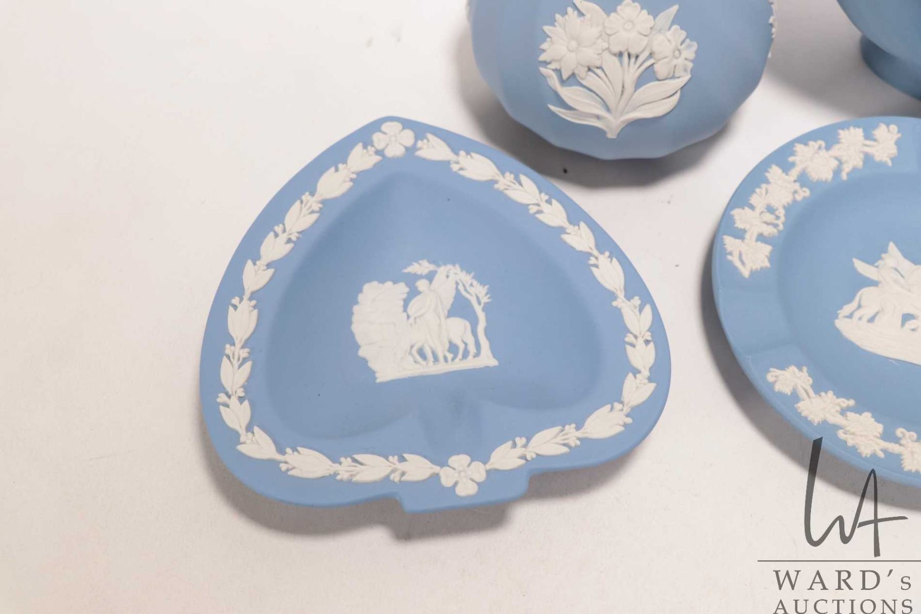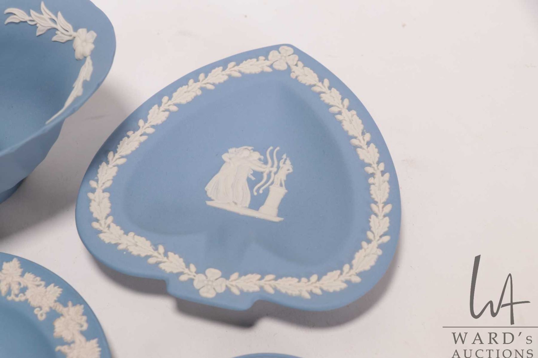Lot 382 Selection of Wedgwood Jasperware including three small pin trays, miniature 3" dish, footed dish and