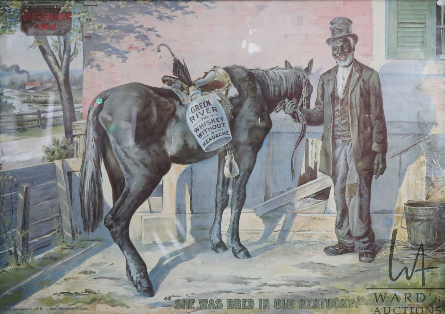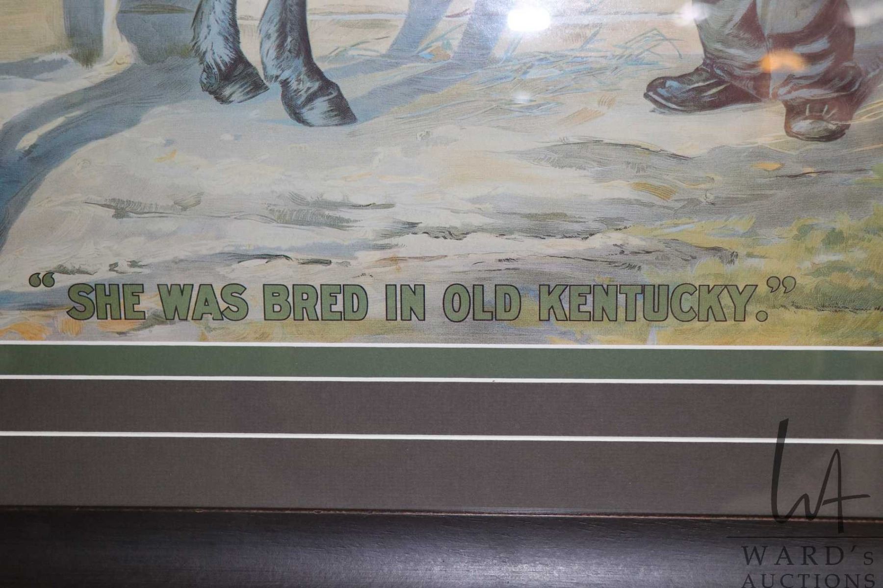 Lot 388 Vintage/ antique framed Black American pring titled "She Was Bred in Old Kentucky", overall dimensio