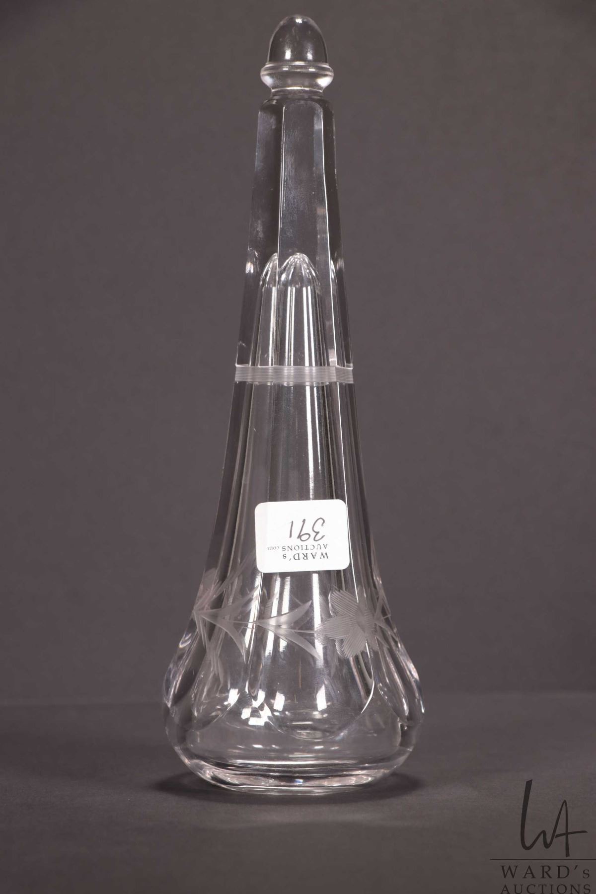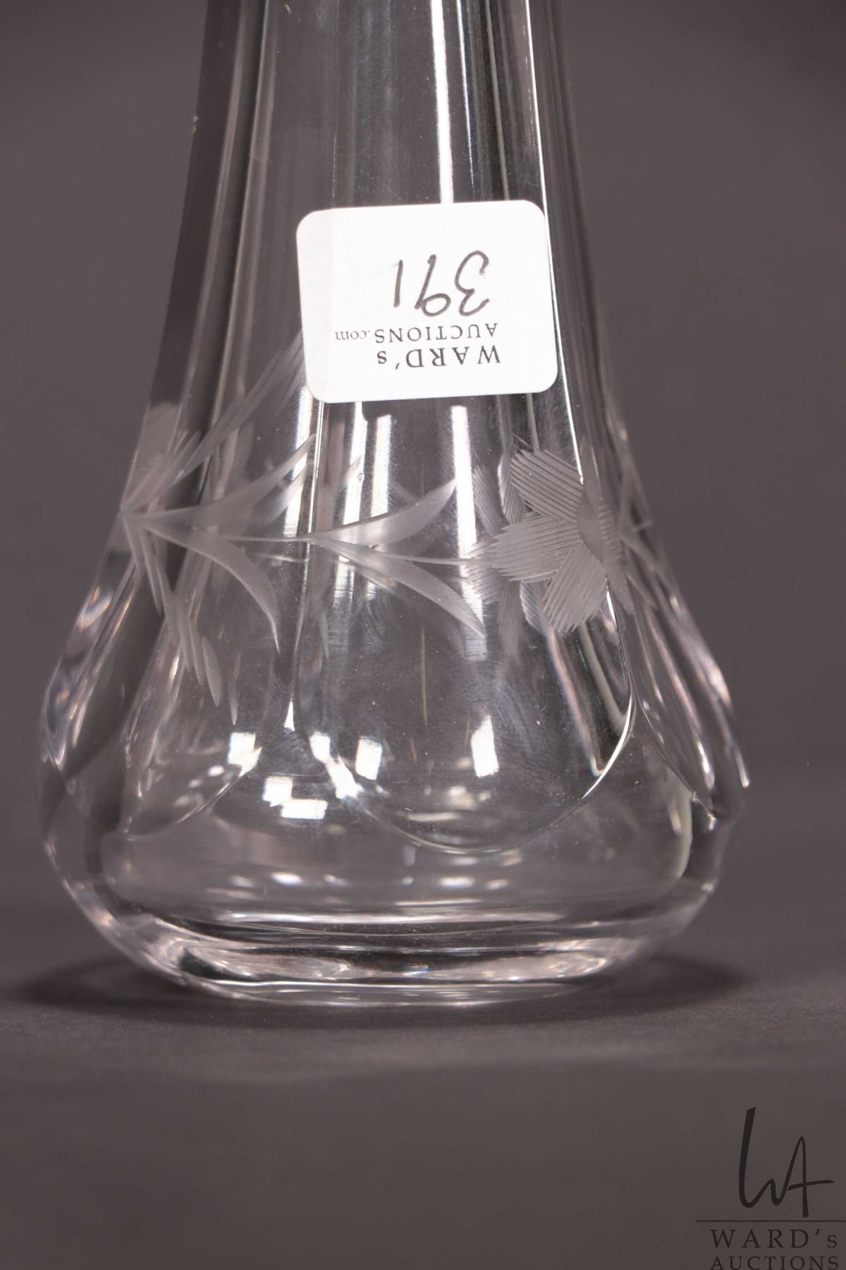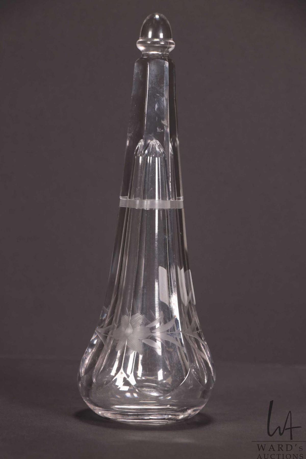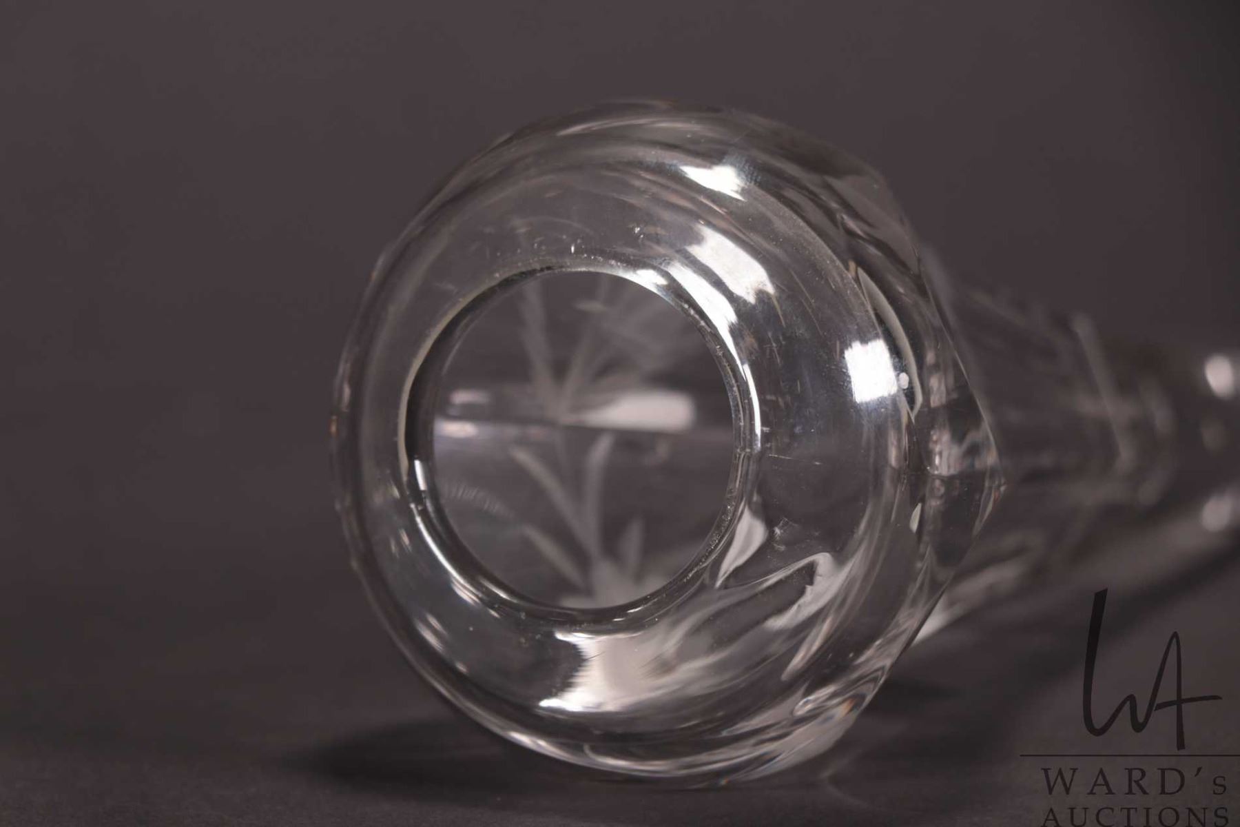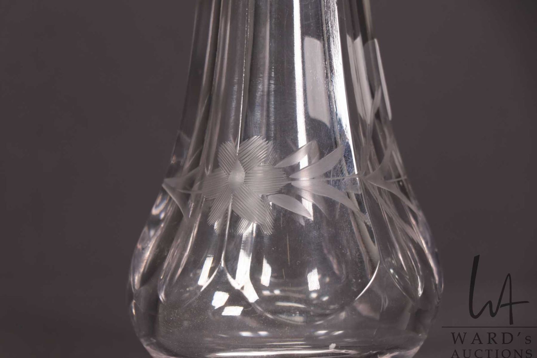 Lot 391 Antique etched crystal automobile posey holder for a Model M or T hearse.