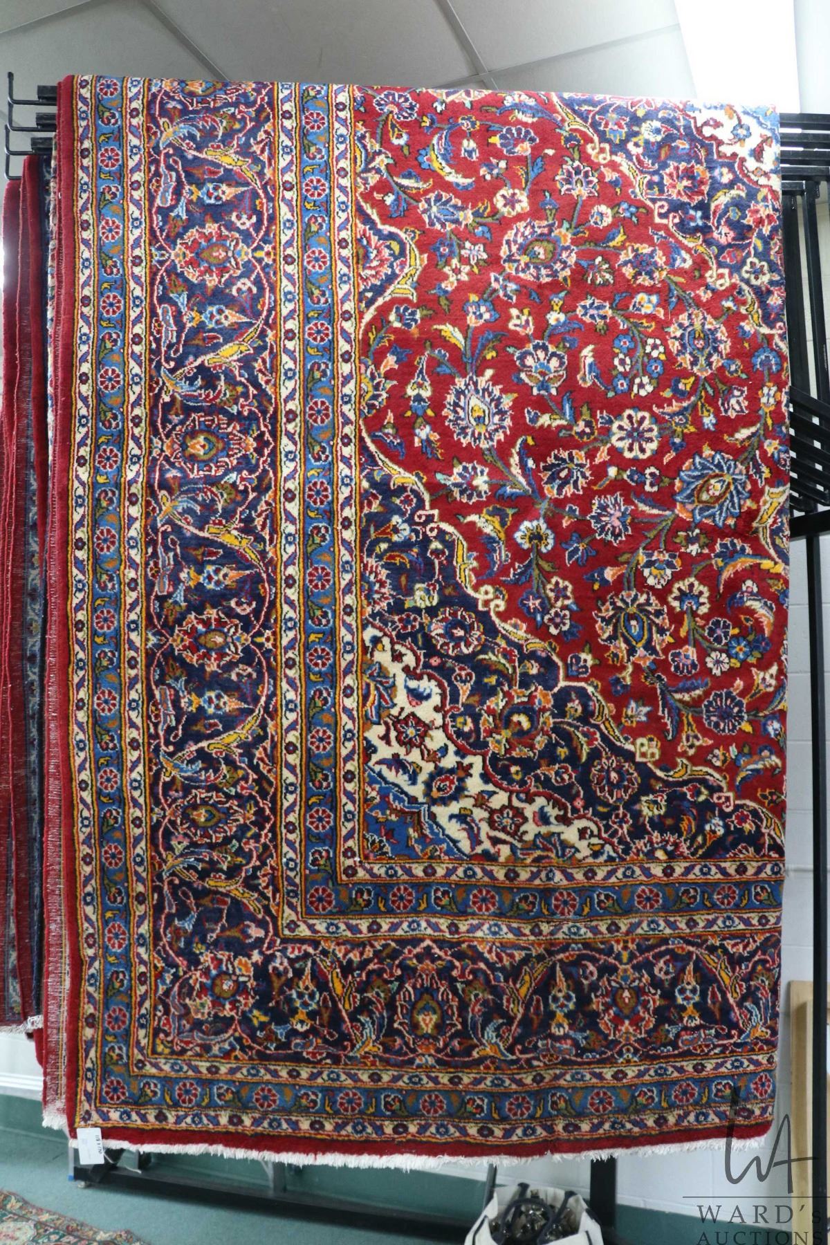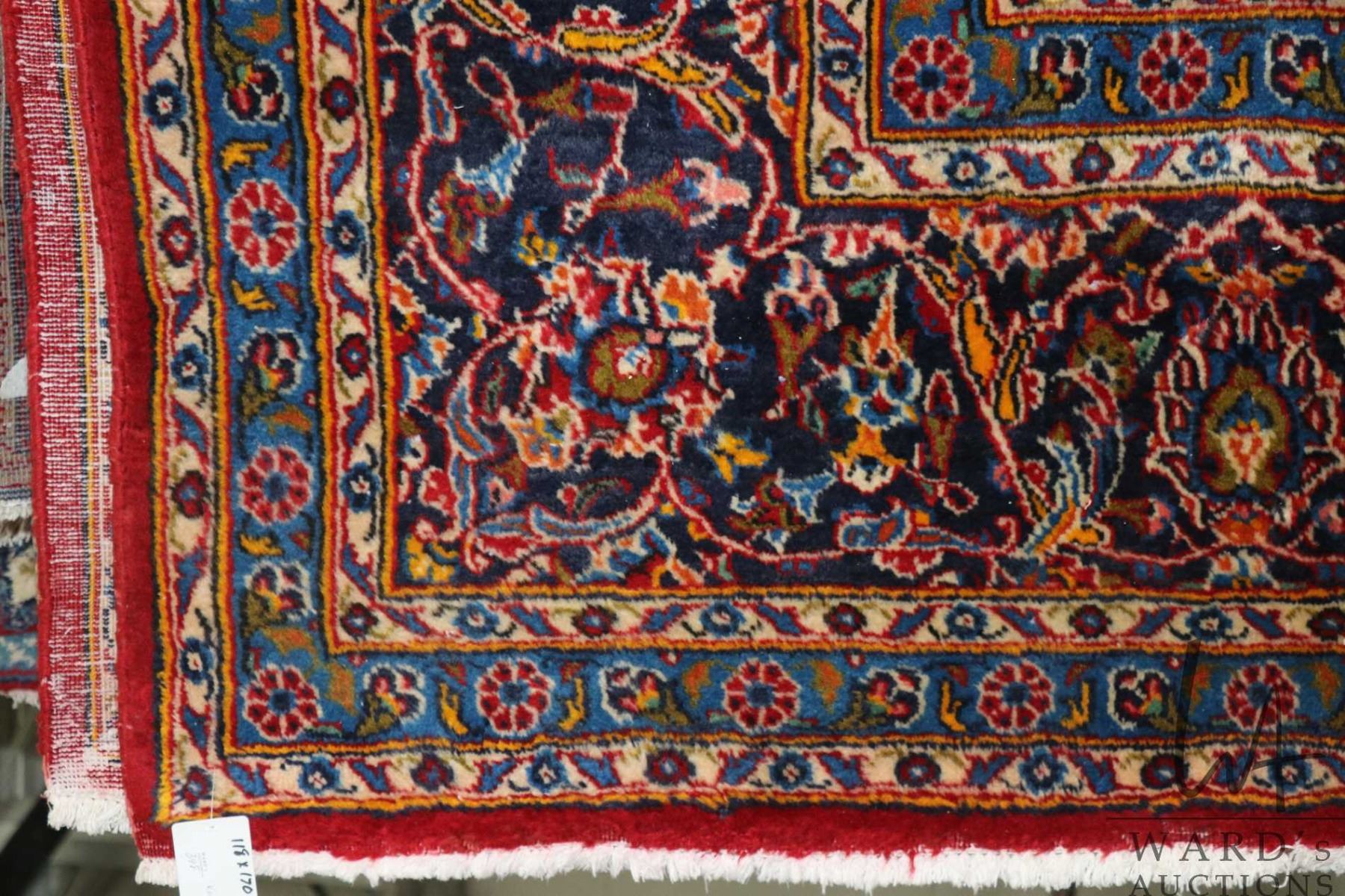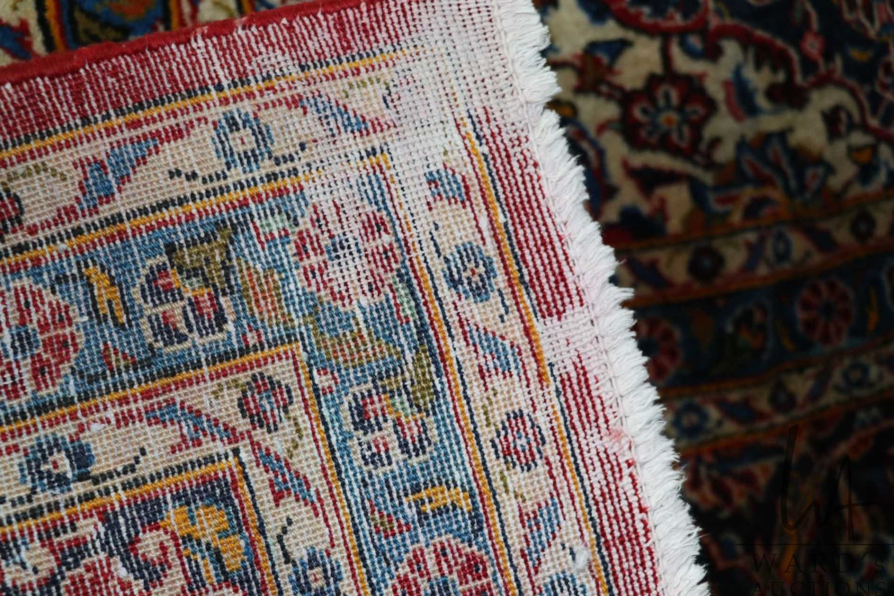 Lot 398 Iranian wool carpet "Kashan' with center medallion, red background, overall floral design and highli