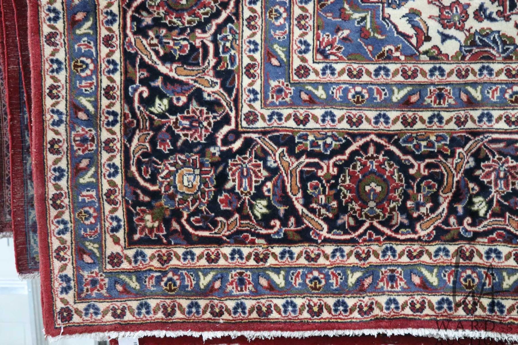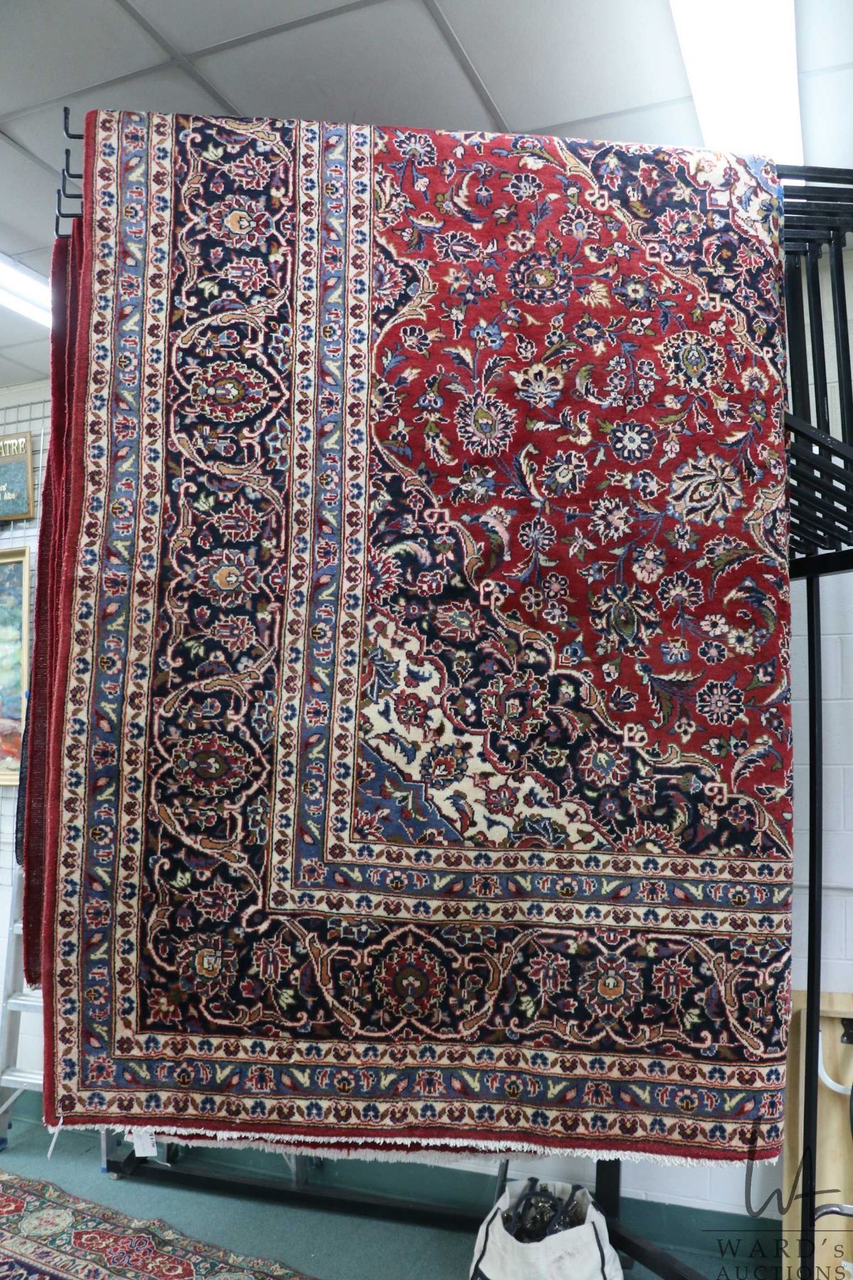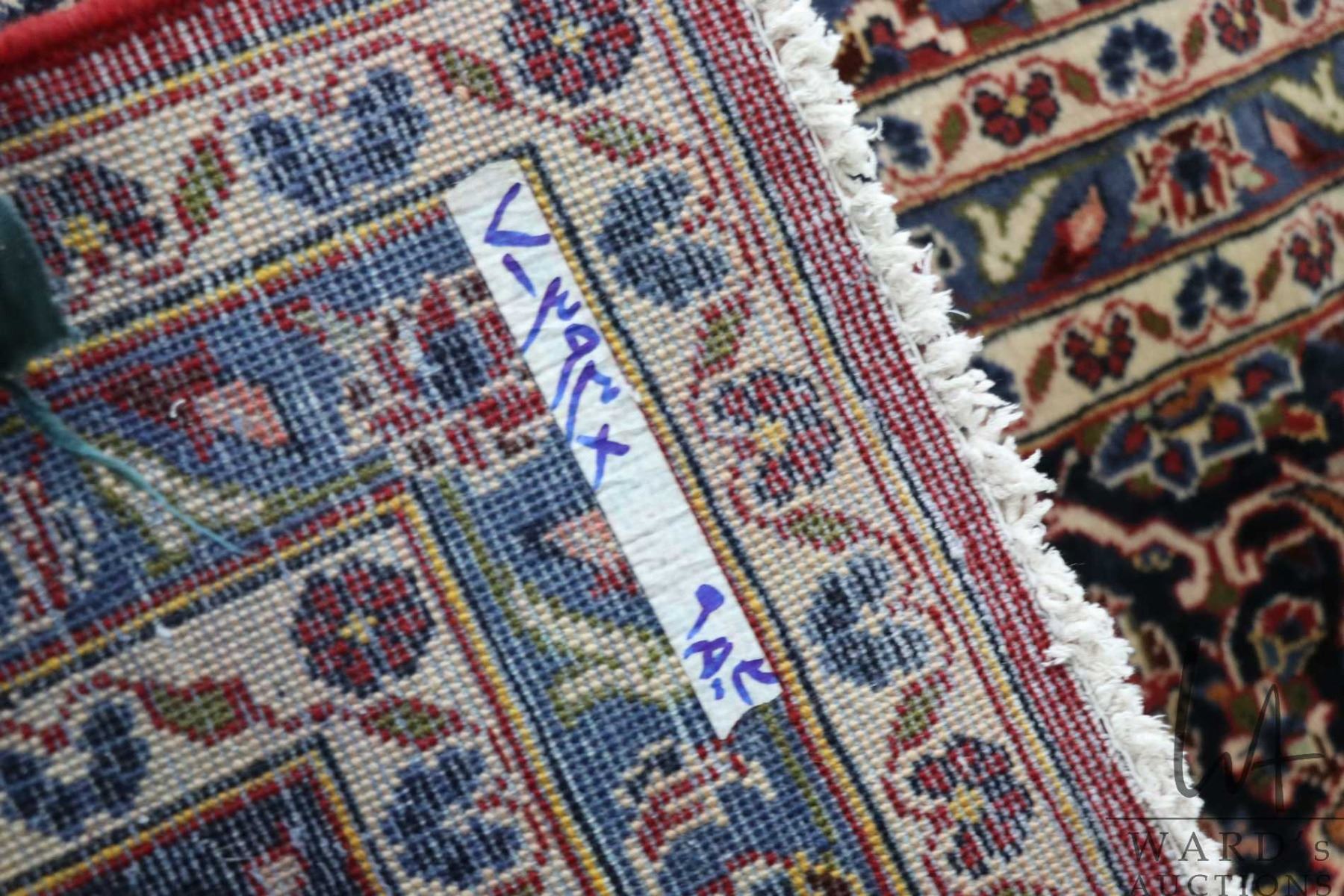 Lot 399 Iranian wool carpet "Kashan" with center medallion, red background, overall floral design and highli