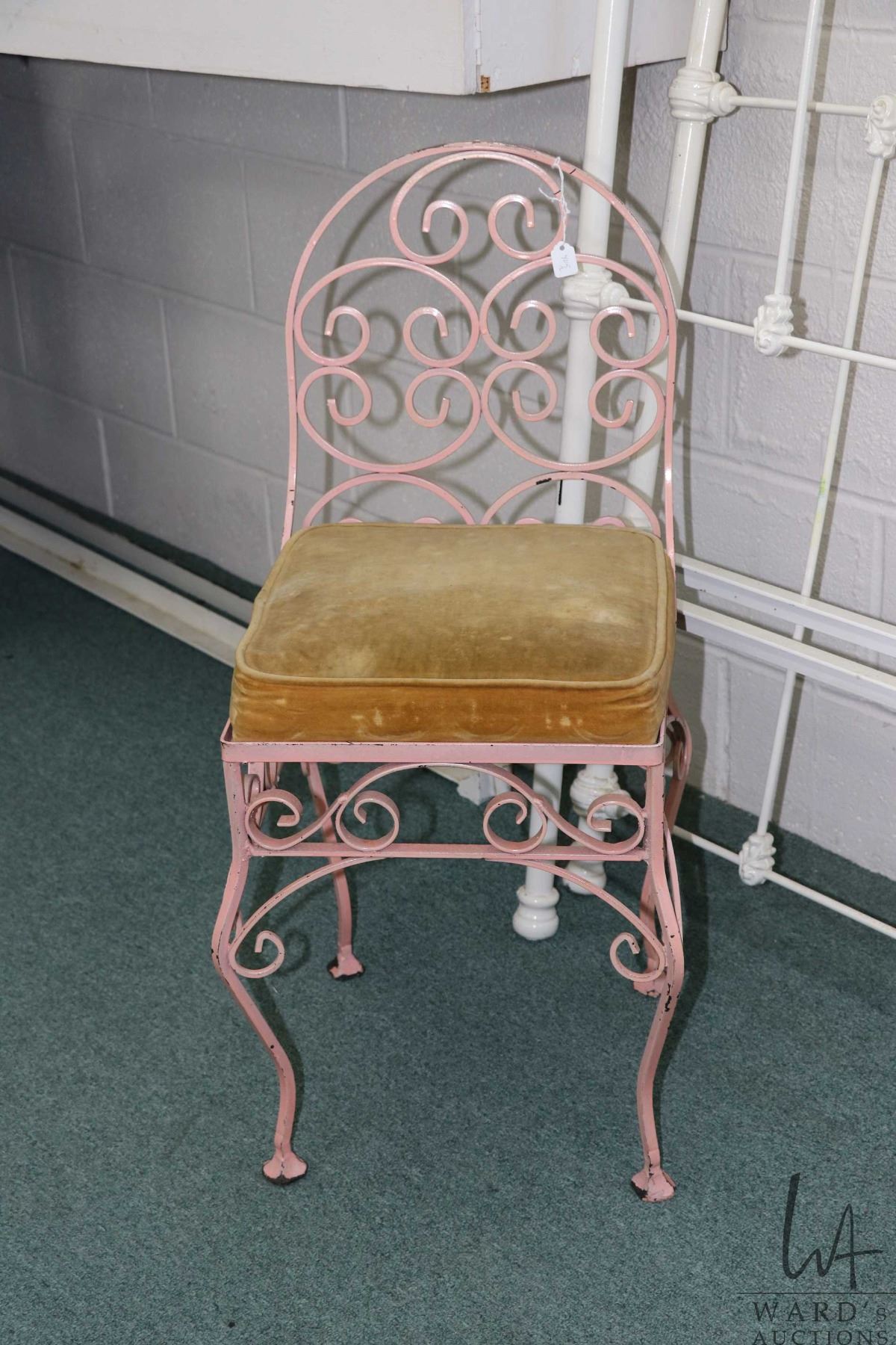 Lot 405 Antique wrought iron chair with upholstered cushion seat 18" in height, suitable for a vanity or chi