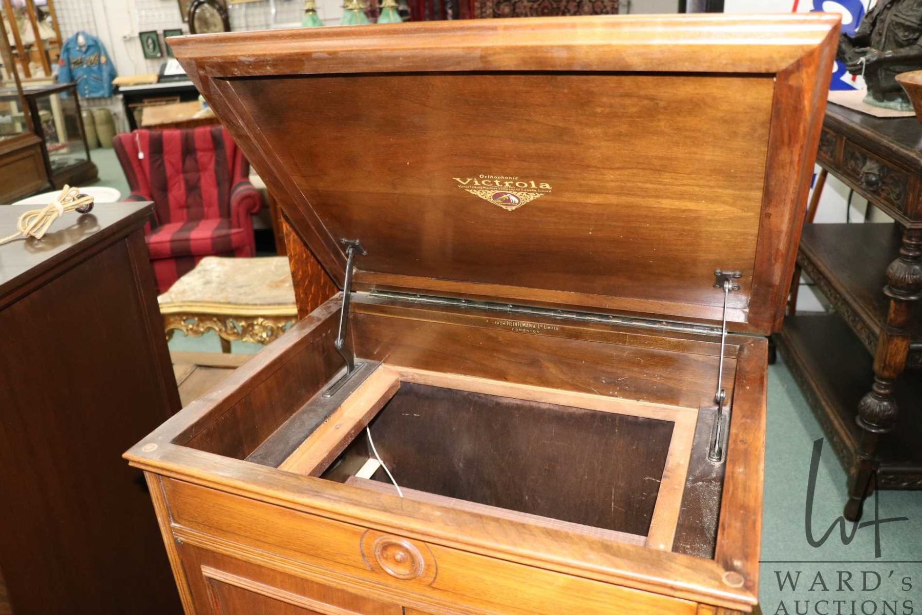 Lot 406 Antique Victrola gramophone cabinet repurposed into bar or storage cabinet, 42" H X 26" W X 20" D
