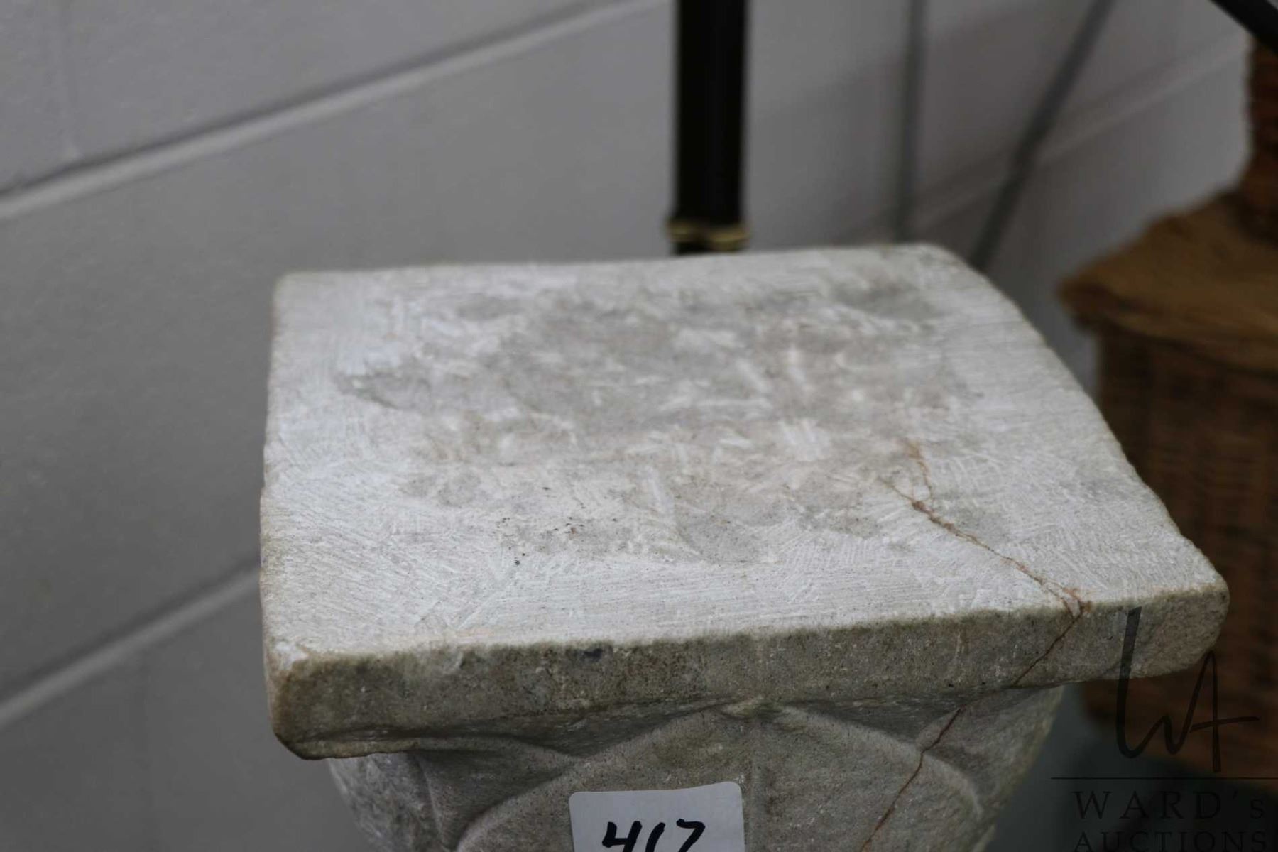 Lot 417 Hand carved limestone baluster garden column/ pedestal 50" in height, circa 1920