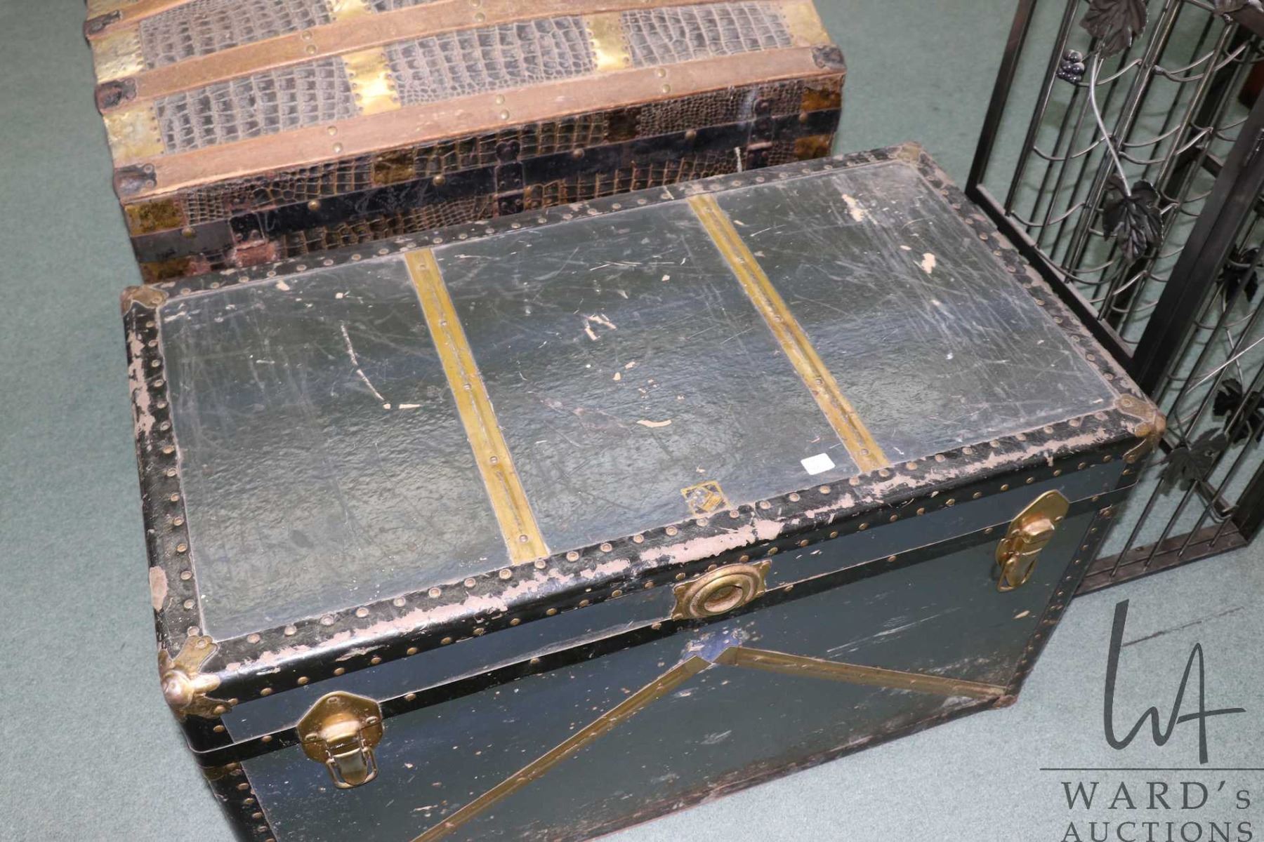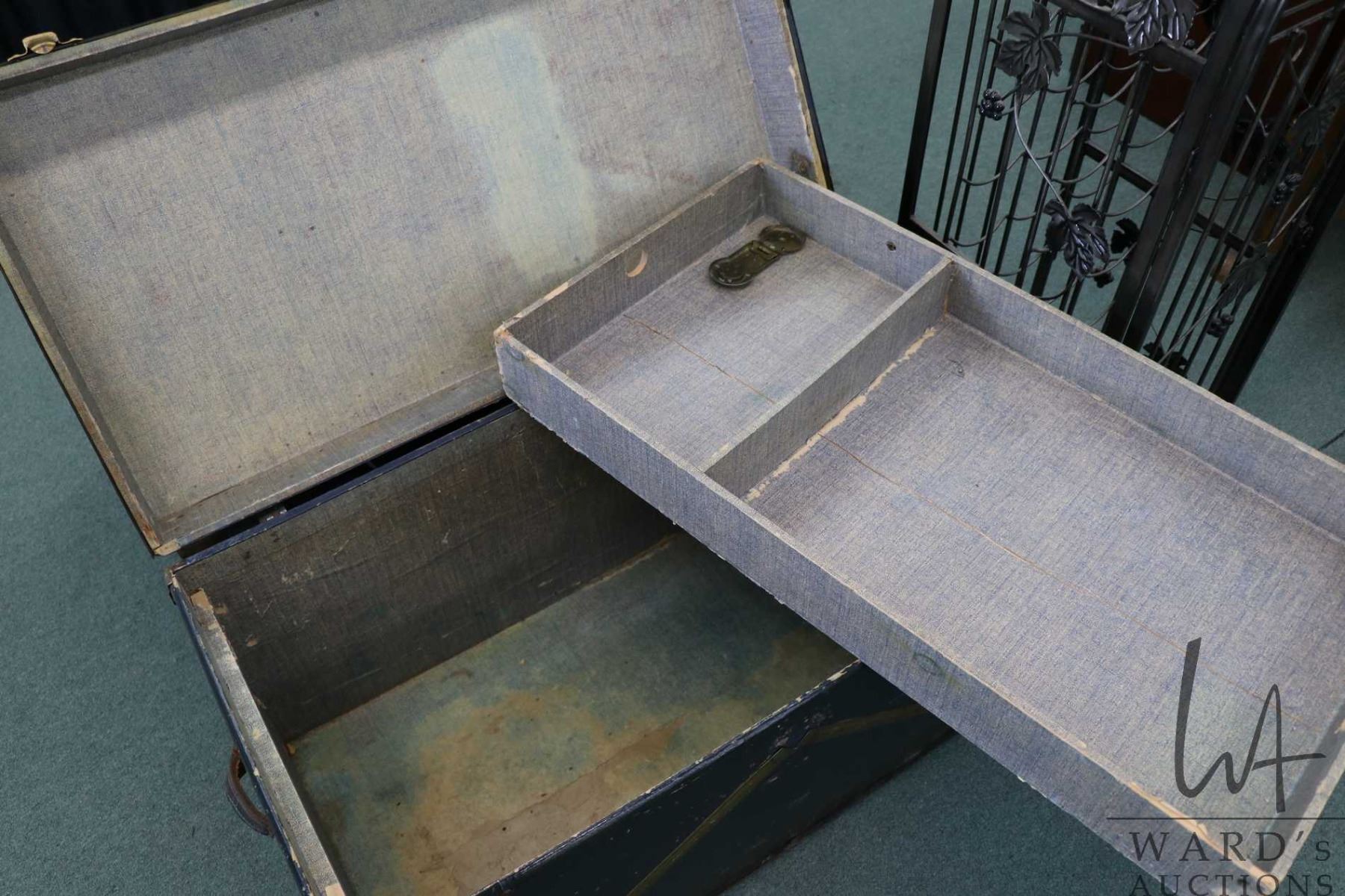 Antique metal bound steamer trunk with removable tray, 21" H X 37" W X 20" D