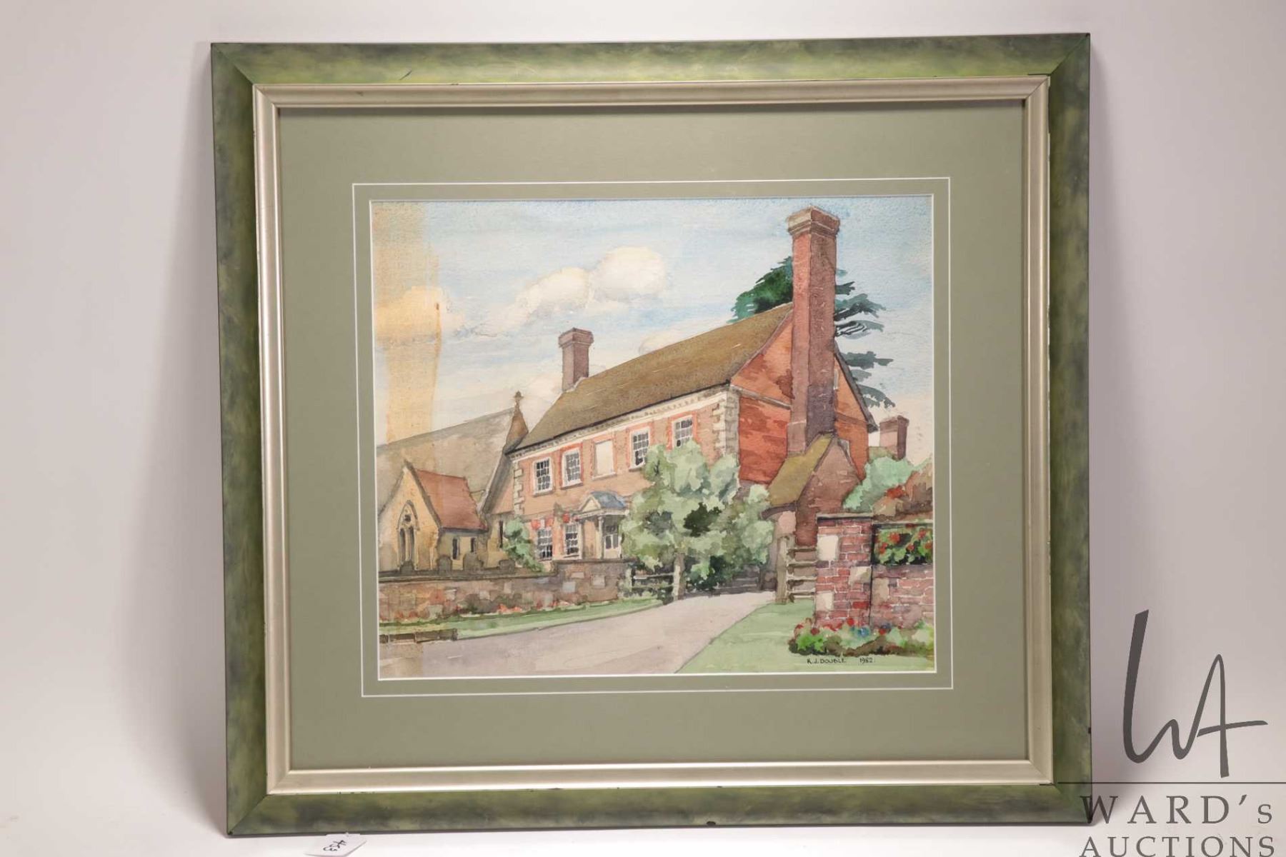 Lot 453 Robert J Double, framed original watercolour painting titled "The Vicarage, Fletching, Sussex" 13-1/
