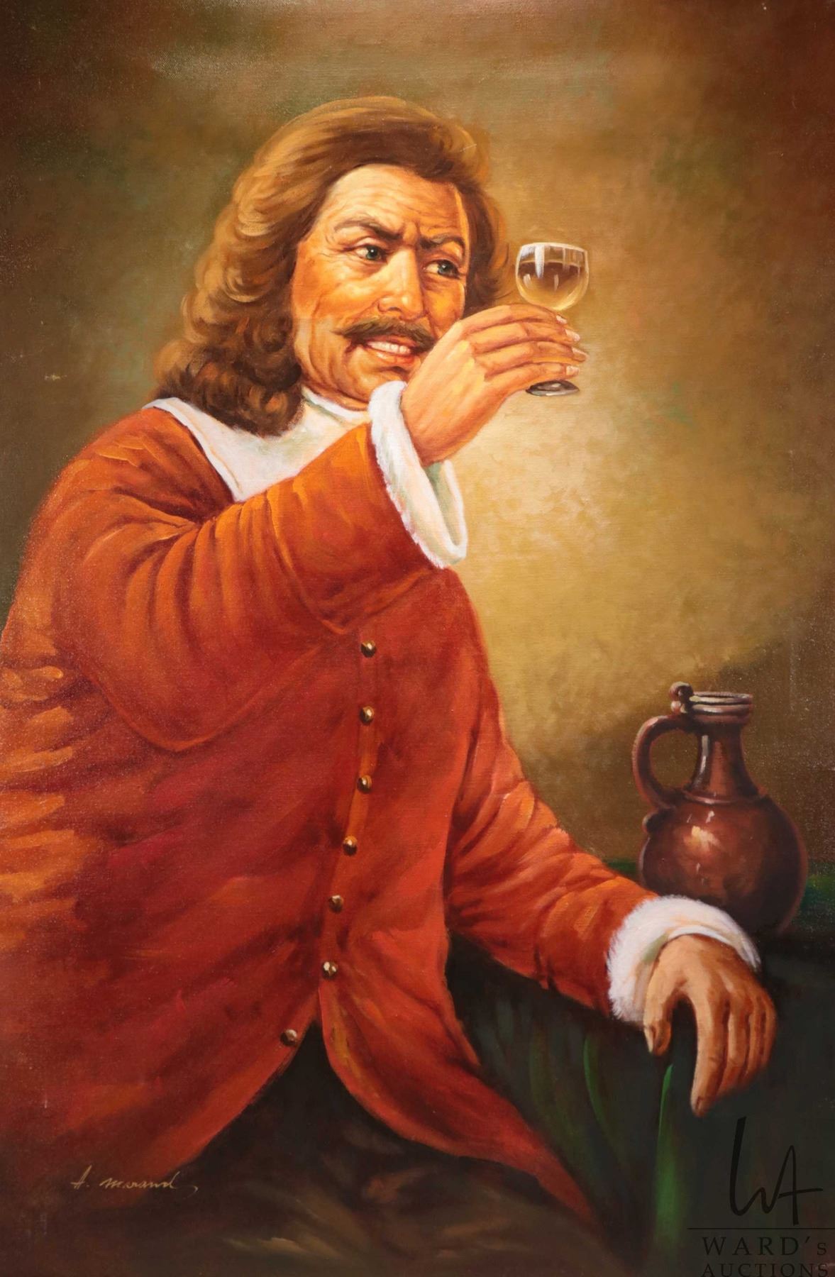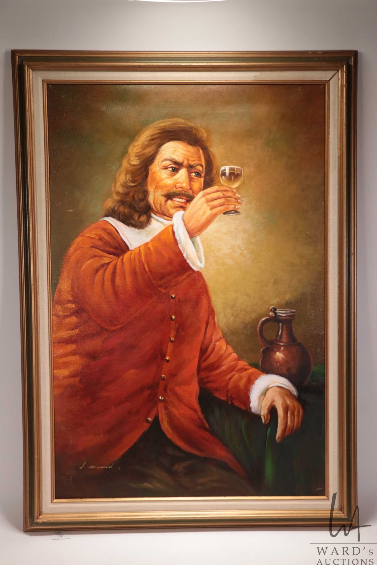 Lot 457 A. Morand, framed oil on canvas portrait painting of a gentleman in a tavern scene 35-1/2" X 23-1/2"