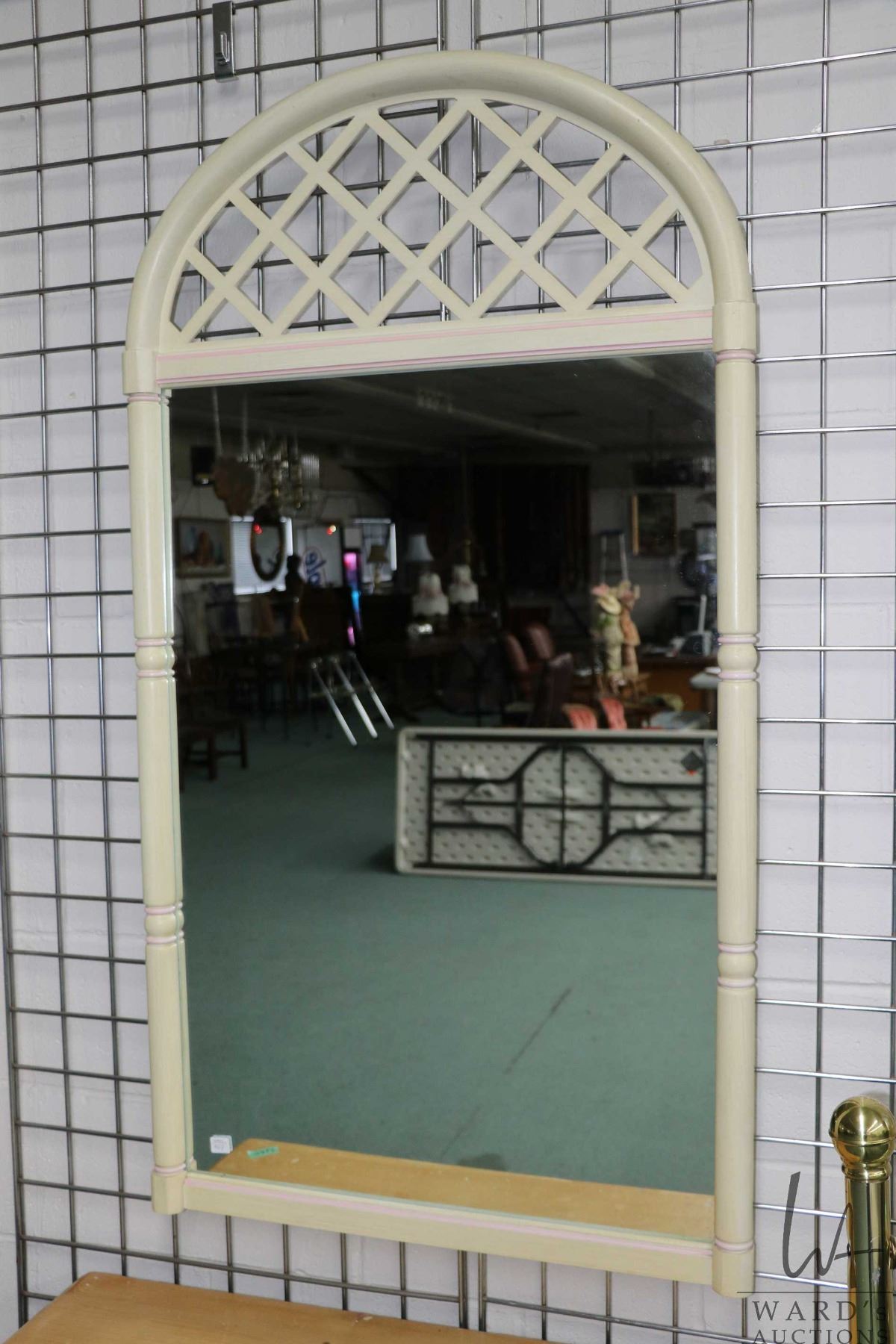 White painted fret wood style wall mirror, 52" H X 28 1/2" W