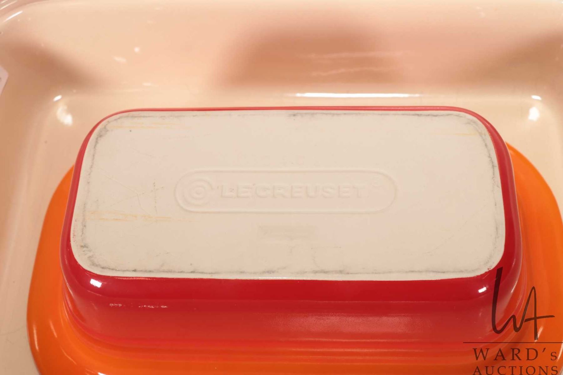 Lot 473 Three Le Creuset stoneware baking dishes including loaf pan, 12" casserole dish and a 15" lasagna pa