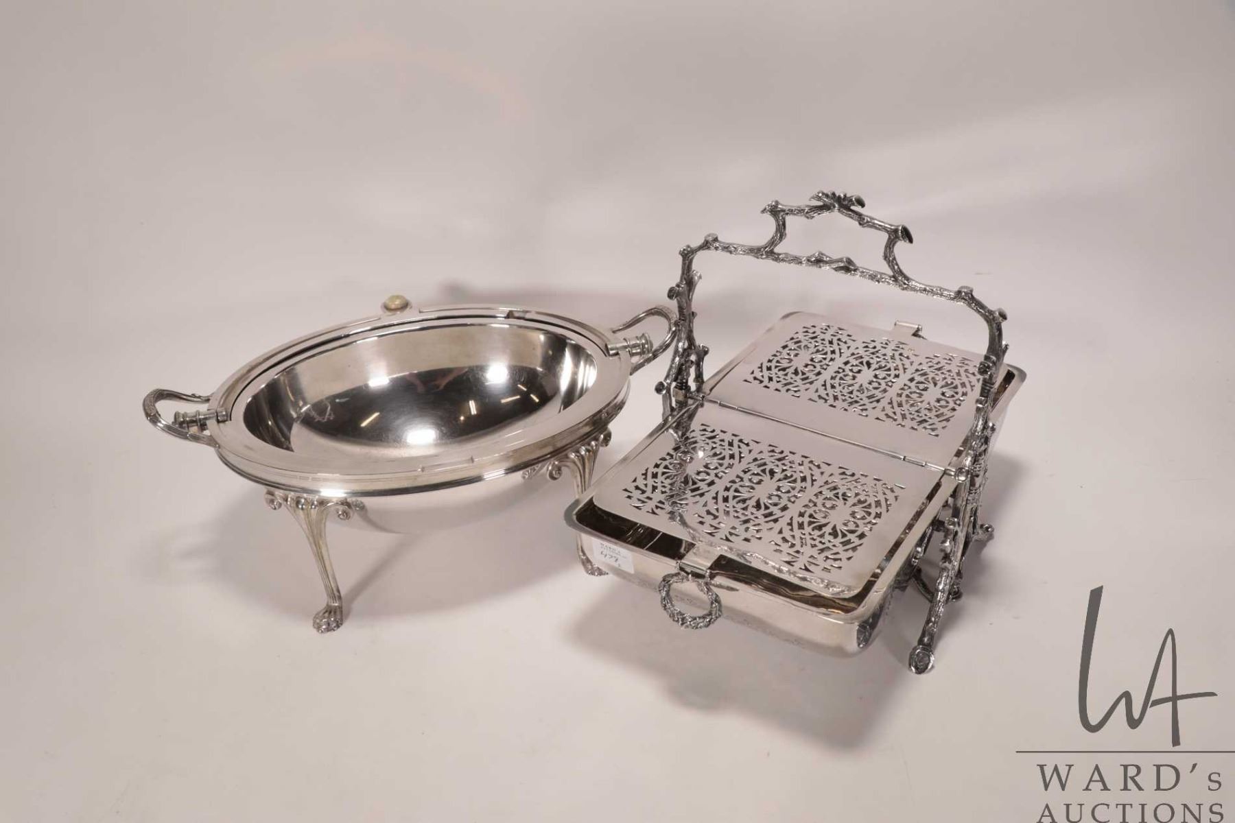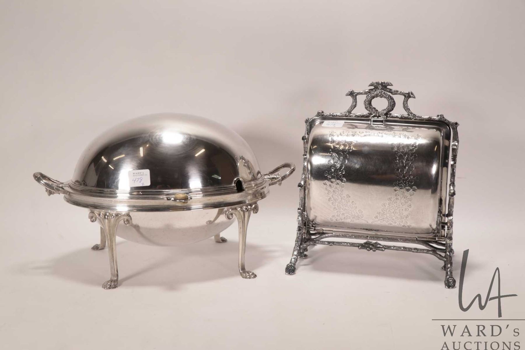 Lot 478 Antique silver-plate biscuit warmer and revolving chafing dish