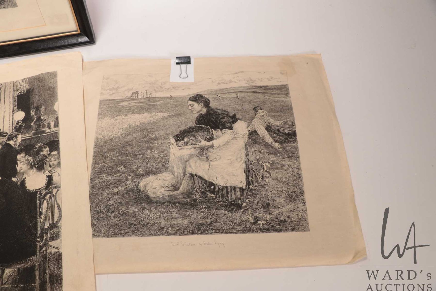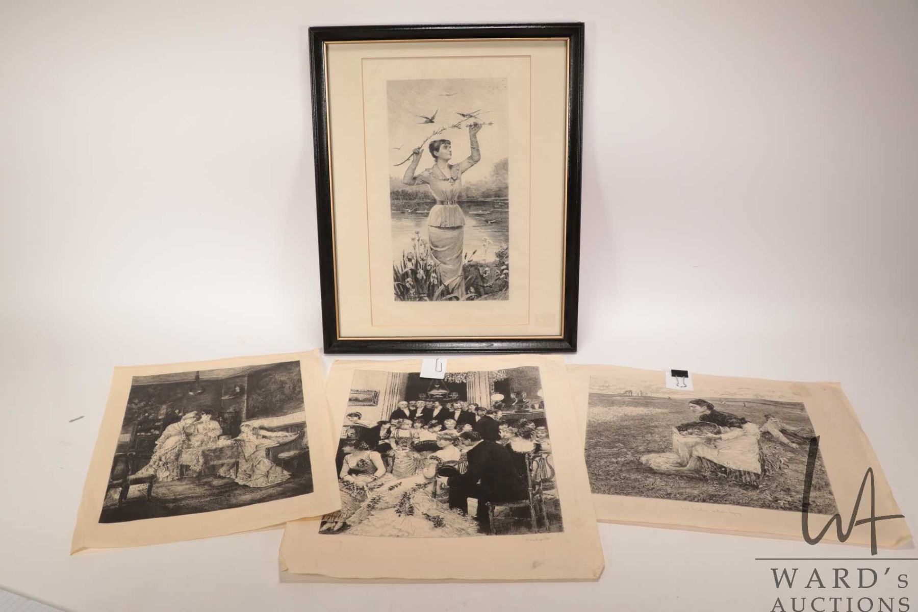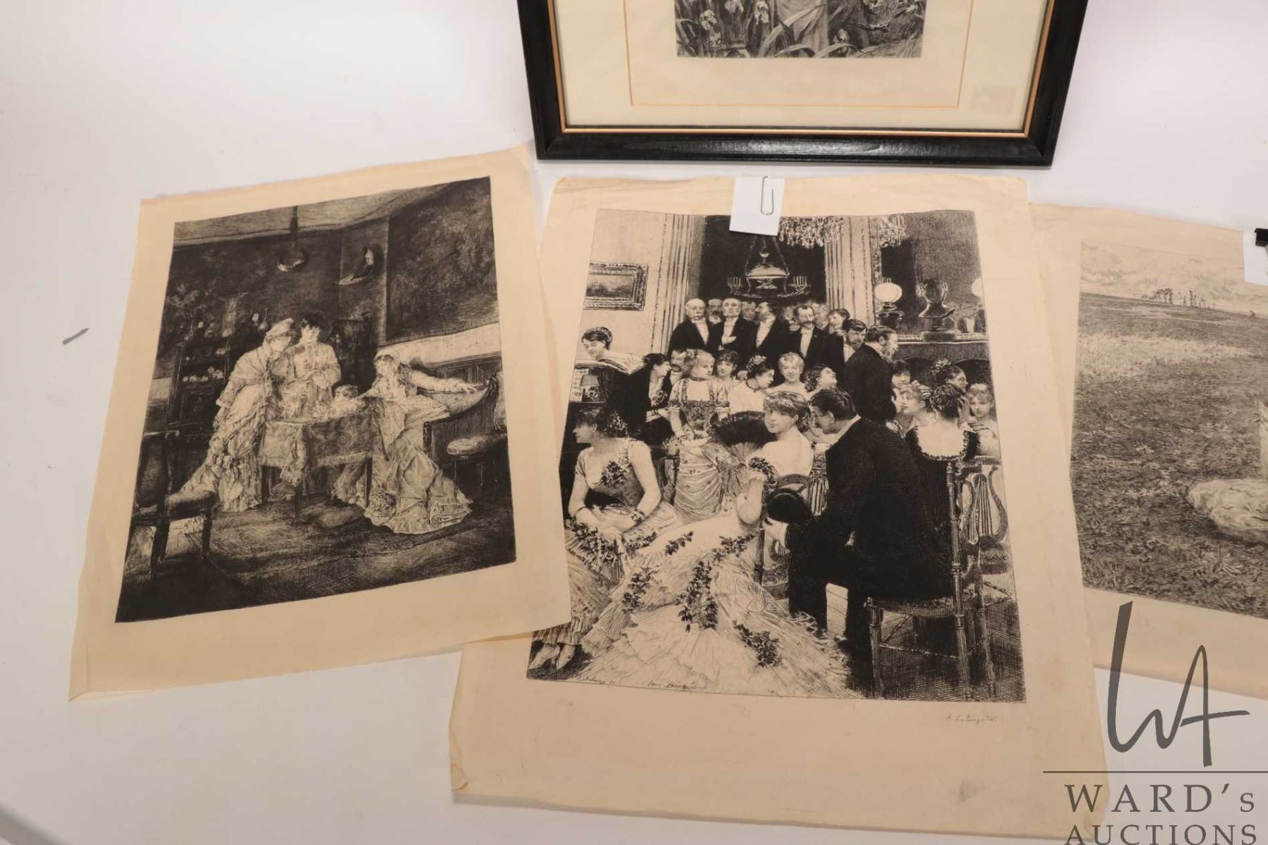 Lot 487 Four French etched prints including one framed and three unframed, all appear to be circa 1880's tim
