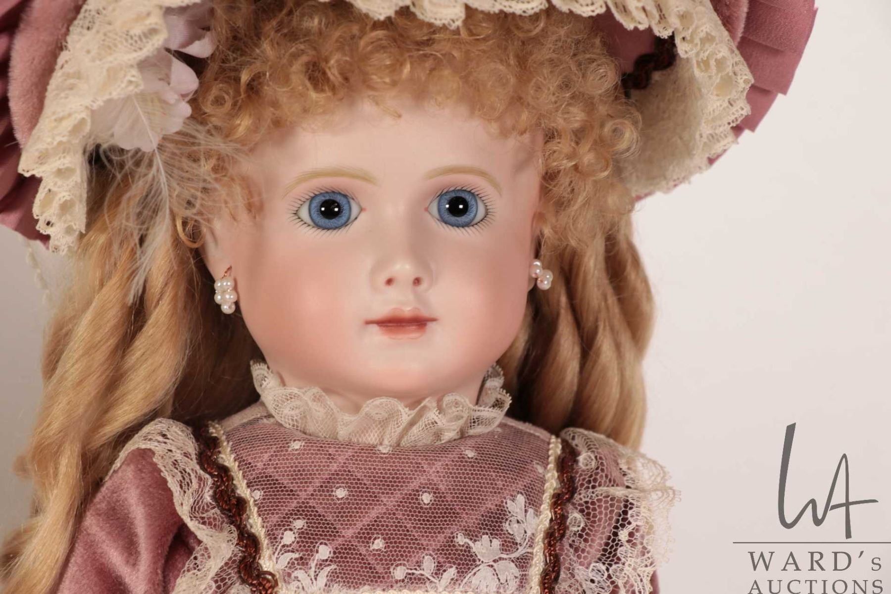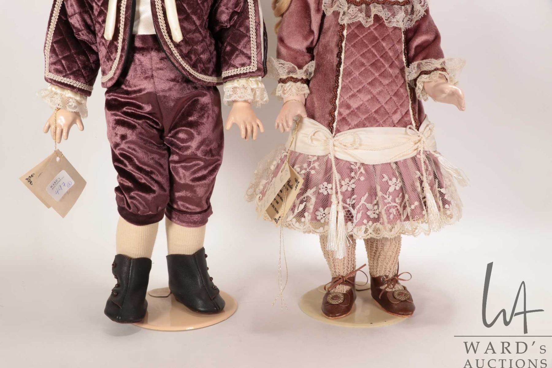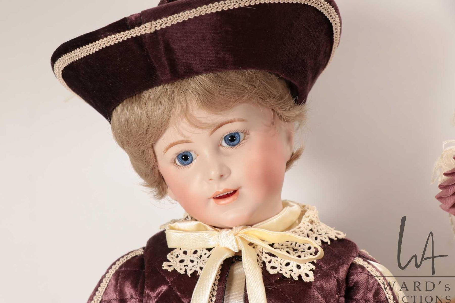 Lot 497 Two handmade reproduction dolls including A. T. 14 "Rentelle" with bisque head, threaded blue glass