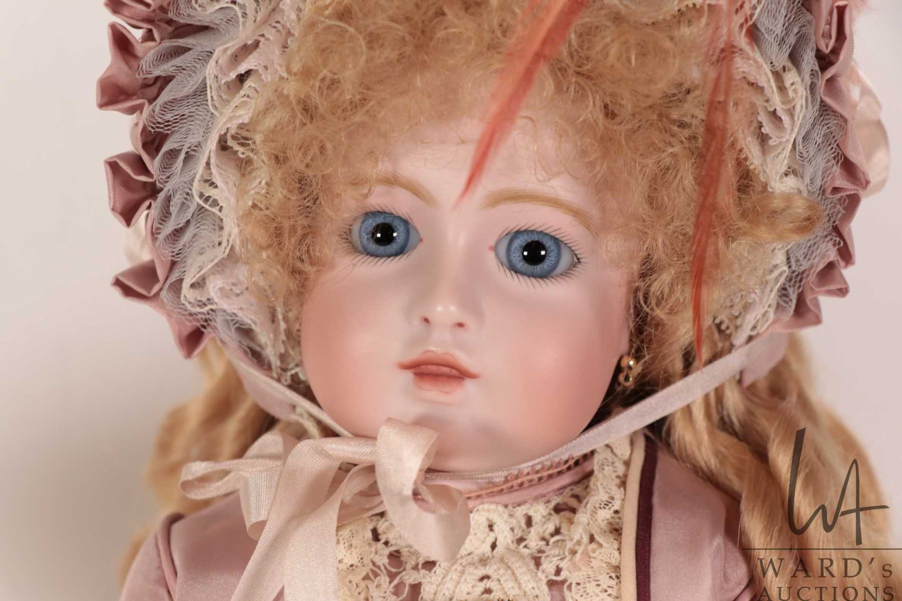 Lot 498 Two handmade reproduction dolls including Circle Dot Bru "Estelle", bisque head with threaded blue g