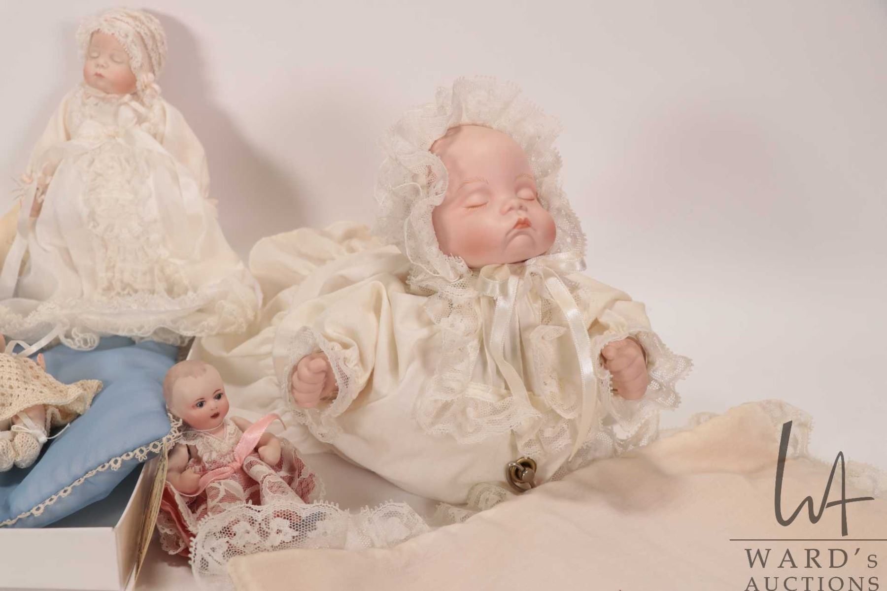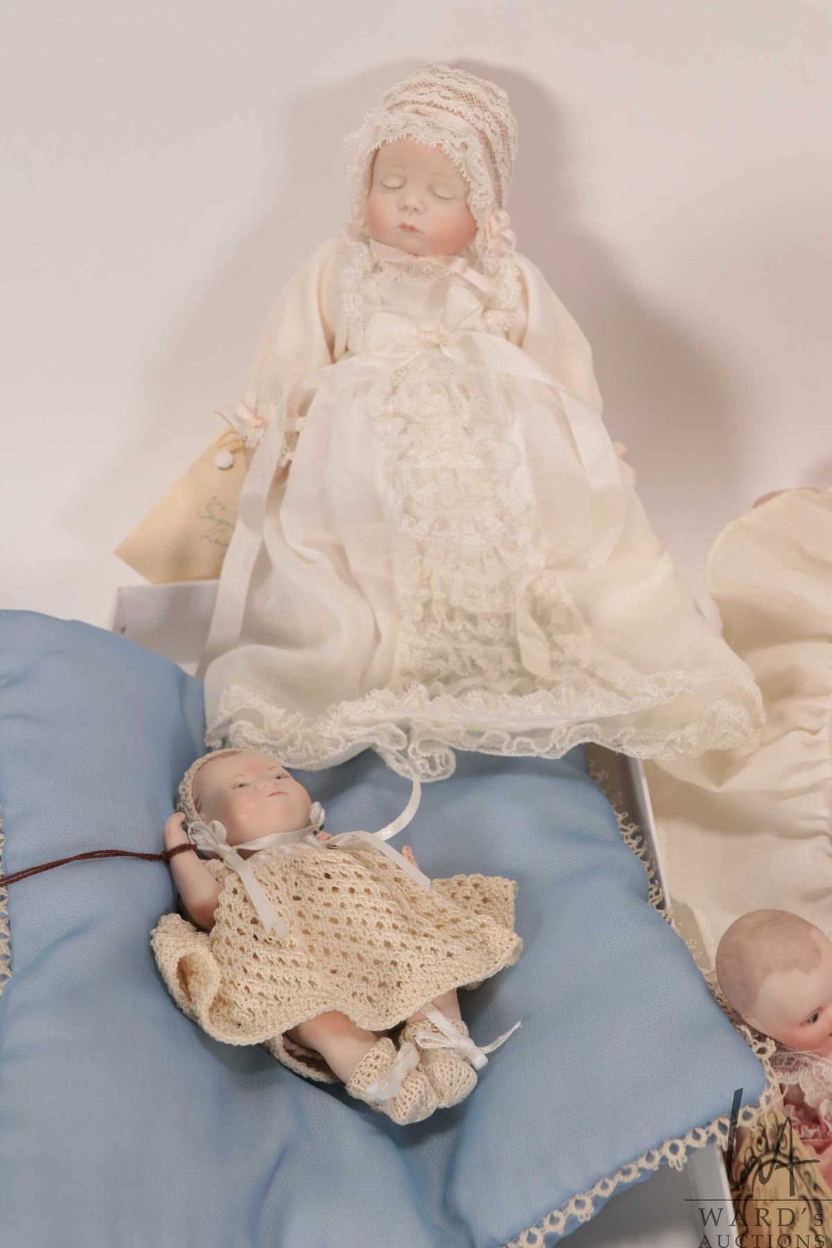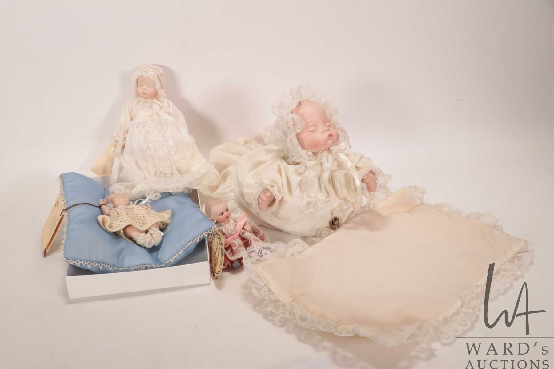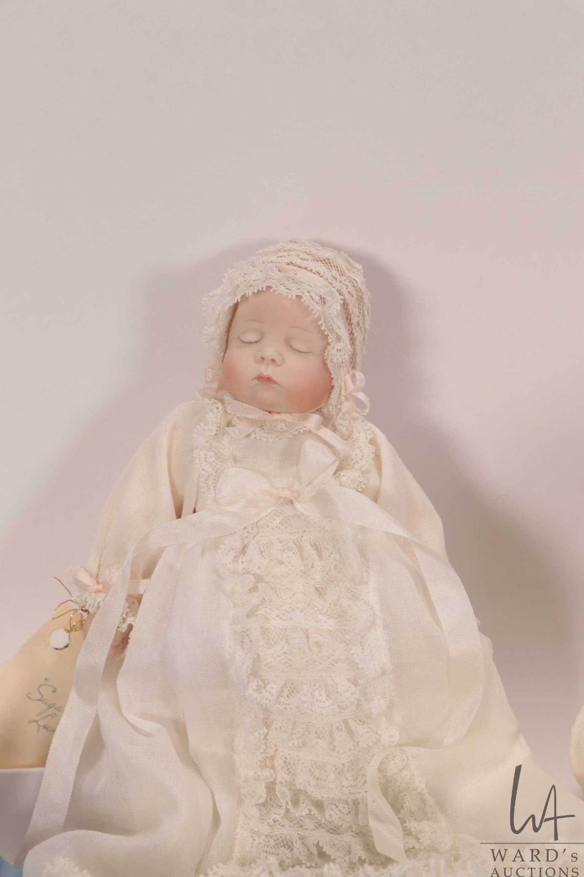 Lot 504 Four small artisan made porcelain dolls including musical "Sugar Britches", bye-lo, "Sugar Lump" and
