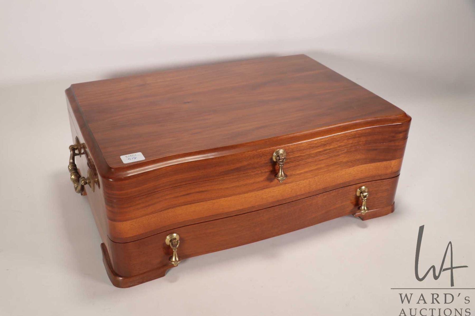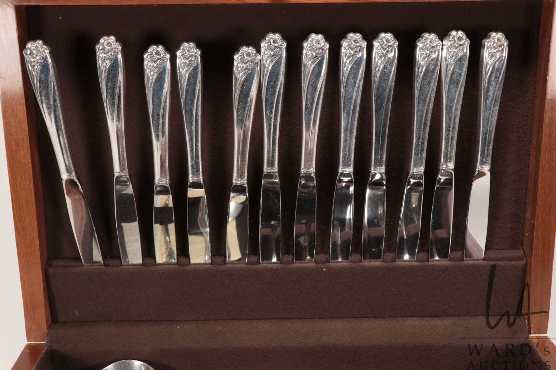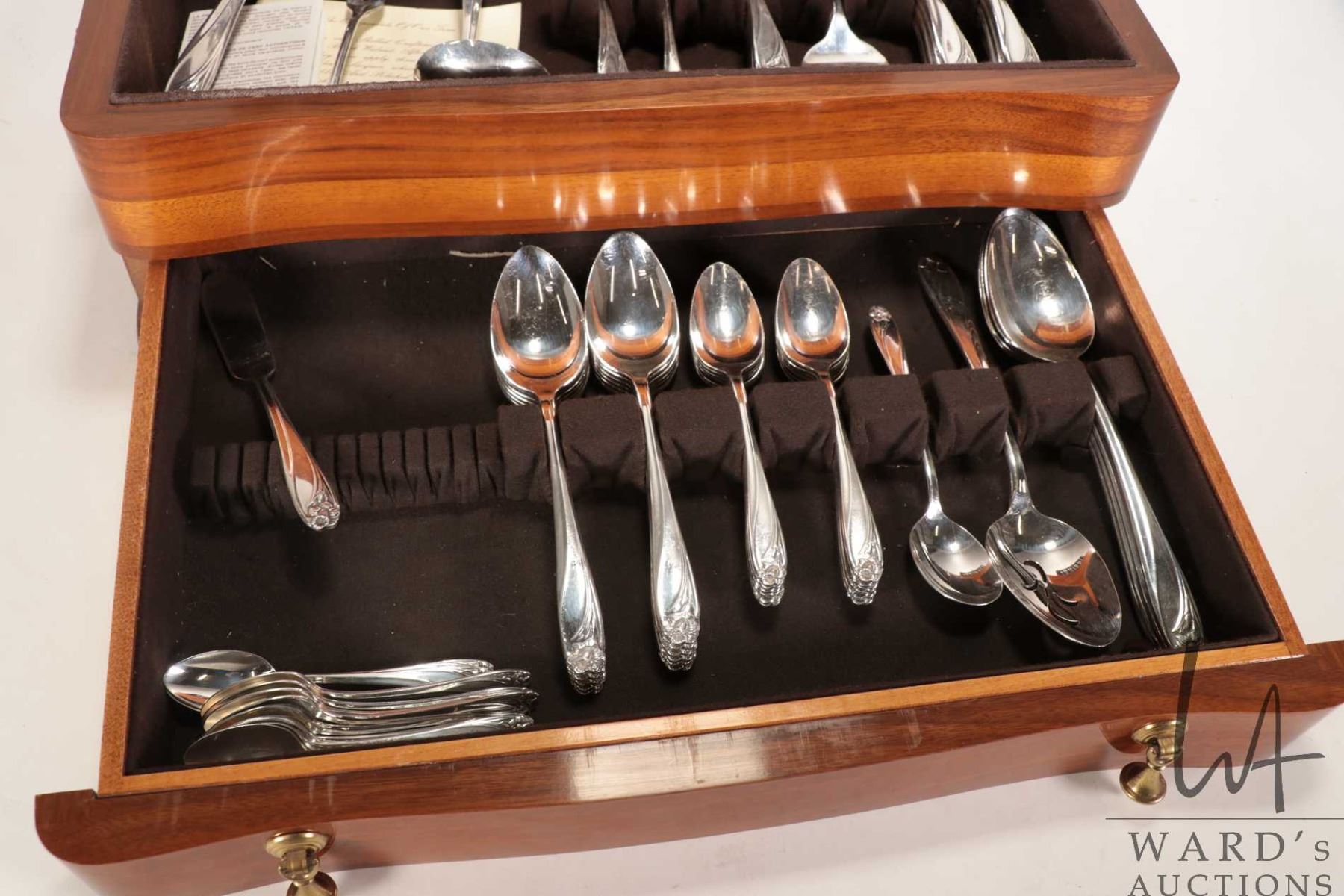 Lot 518 Wooden canteen containing a selection of Rogers Bros. Daffodil silver plate flatware including setti