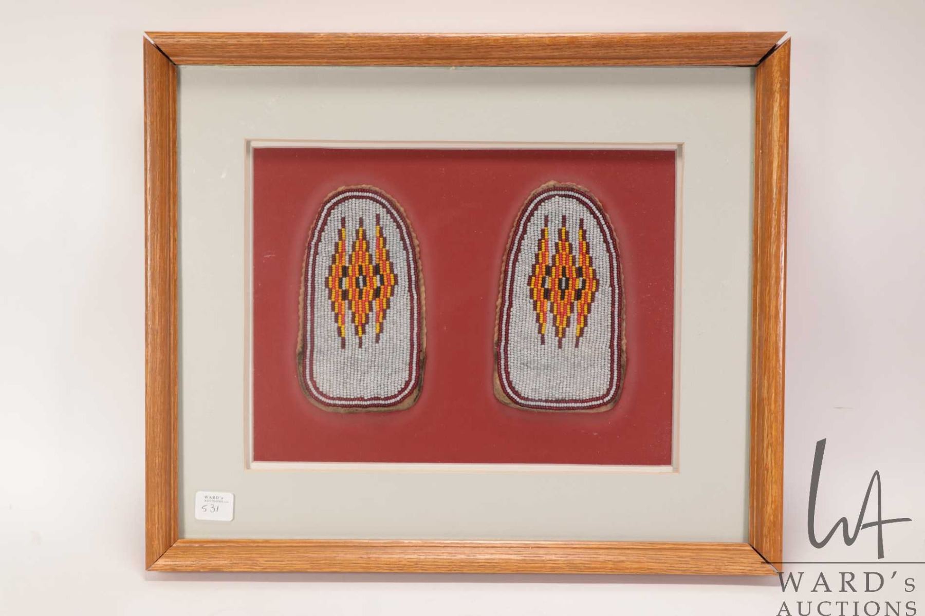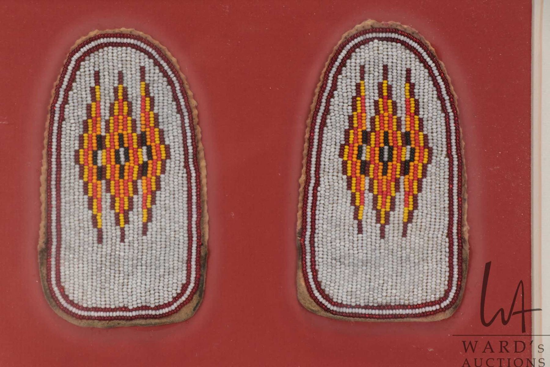 Lot 531 Vintage framed Indigenous beadwork moccasin covers, overall dimensions including frame 14" X 16 1/2"