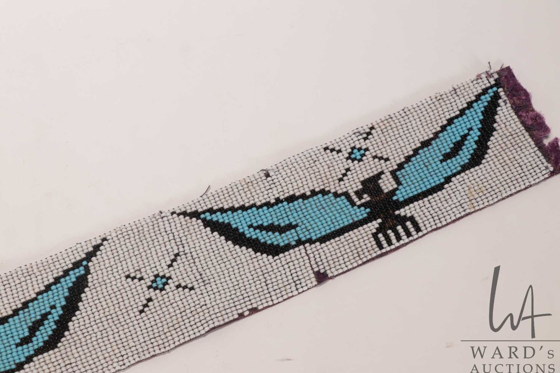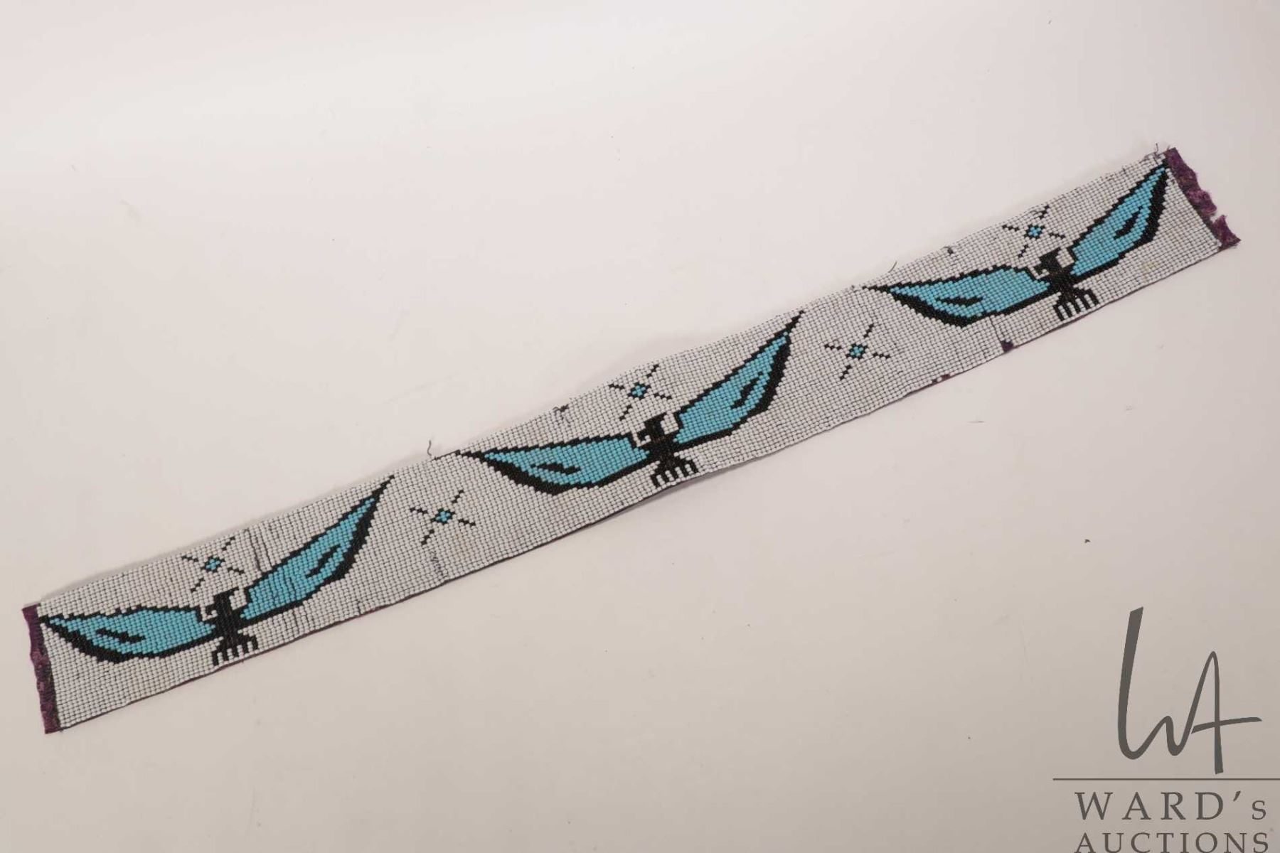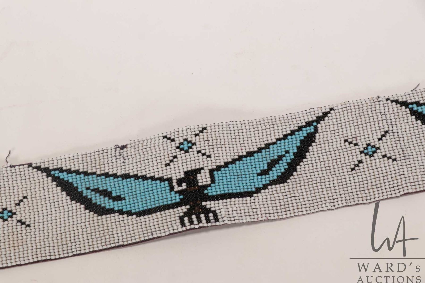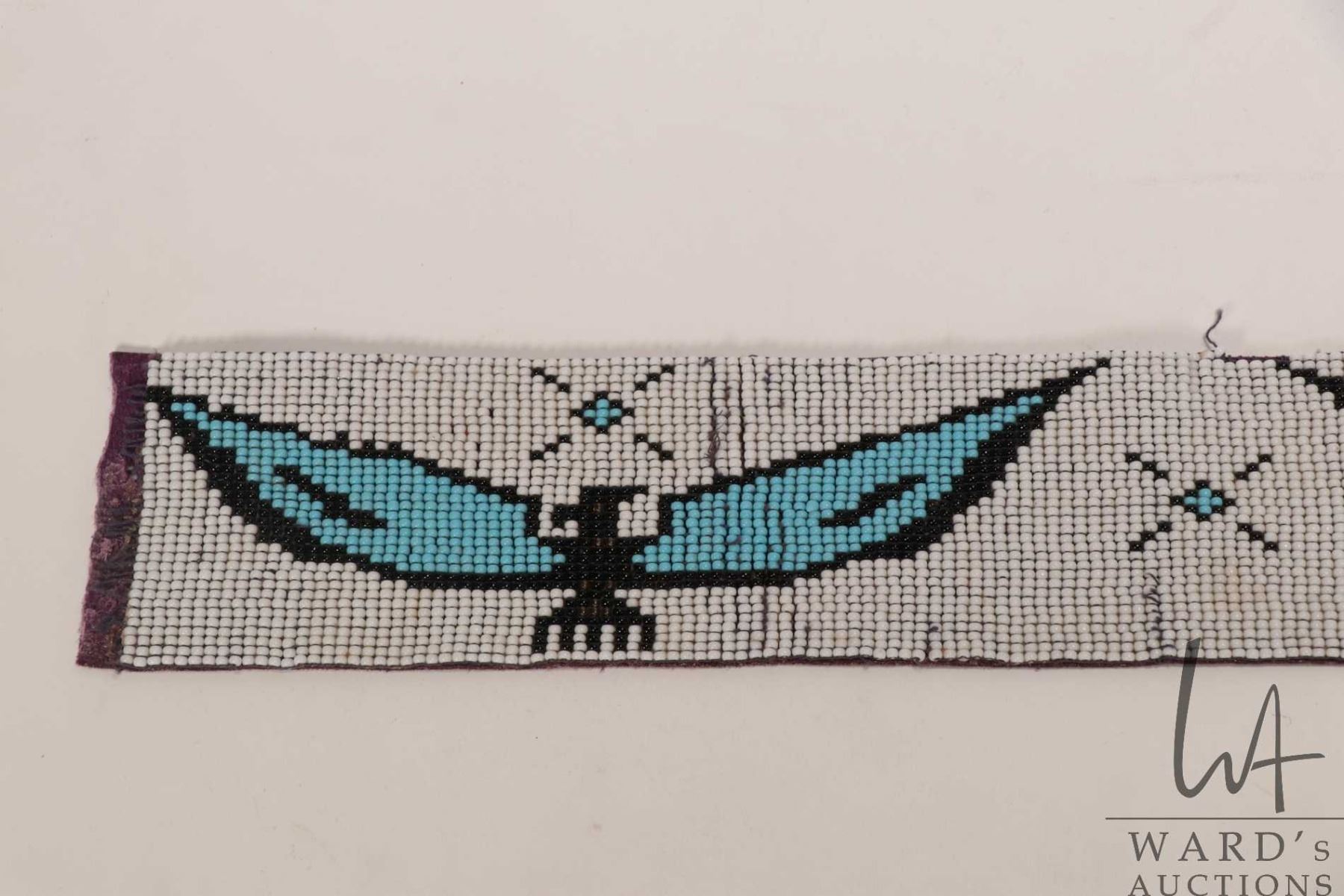 Lot 534 Vintage Indigenous beadwork Thunderbird sash, 3" W X 26" in length