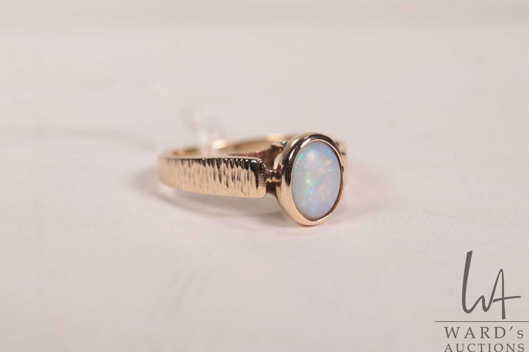 Lot 549 10kt yellow gold ring set with oval opal gemstone, 2.7 grams, size 7
