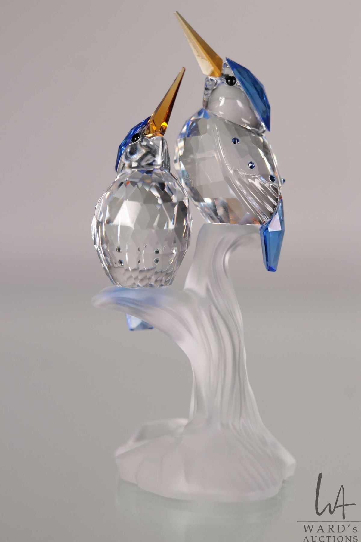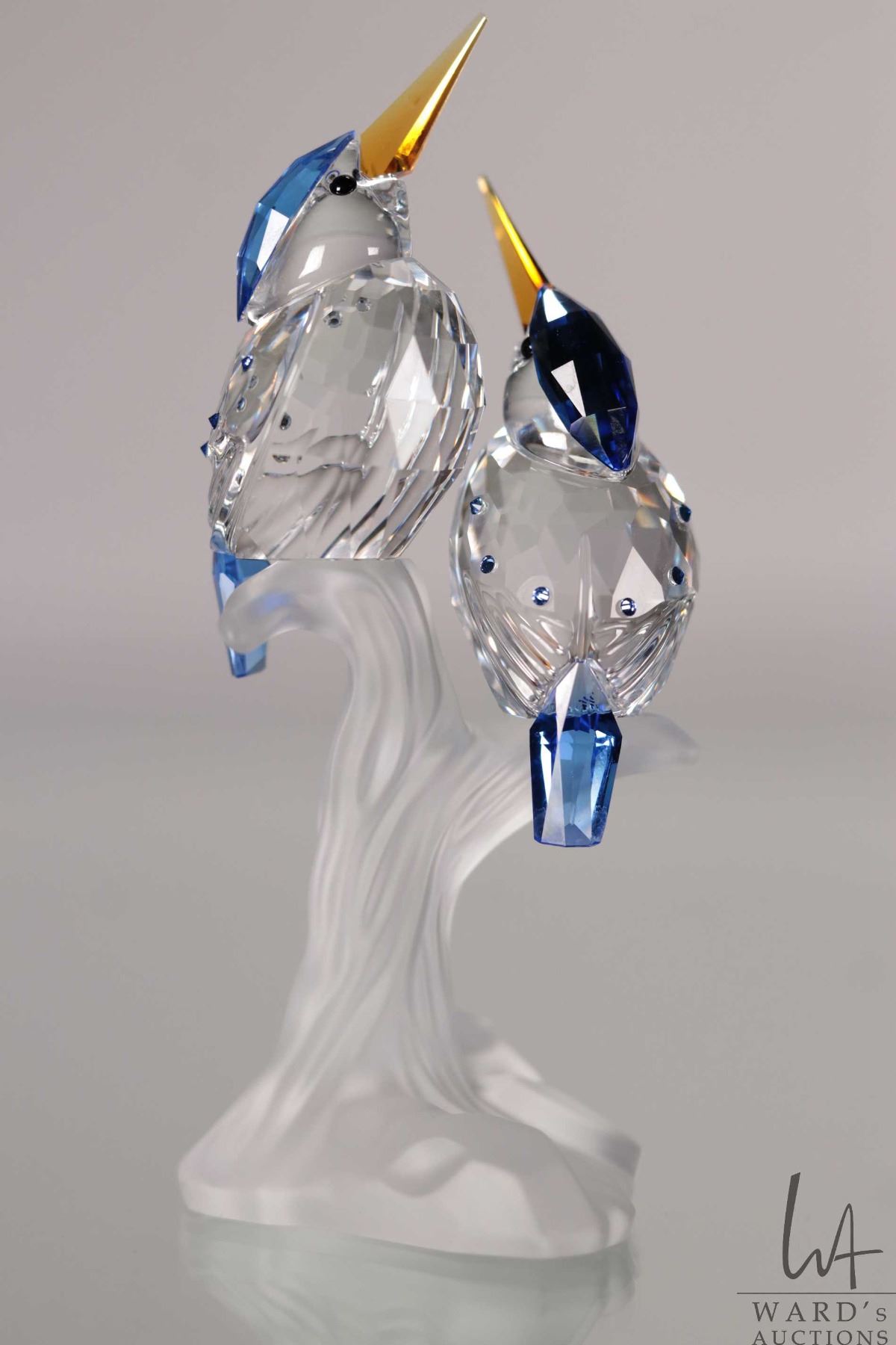 Lot 555 Swarovski crystal Malachite Kingfishers, no. 623323, 3 3/4" in height. From the Feathered Friends Co
