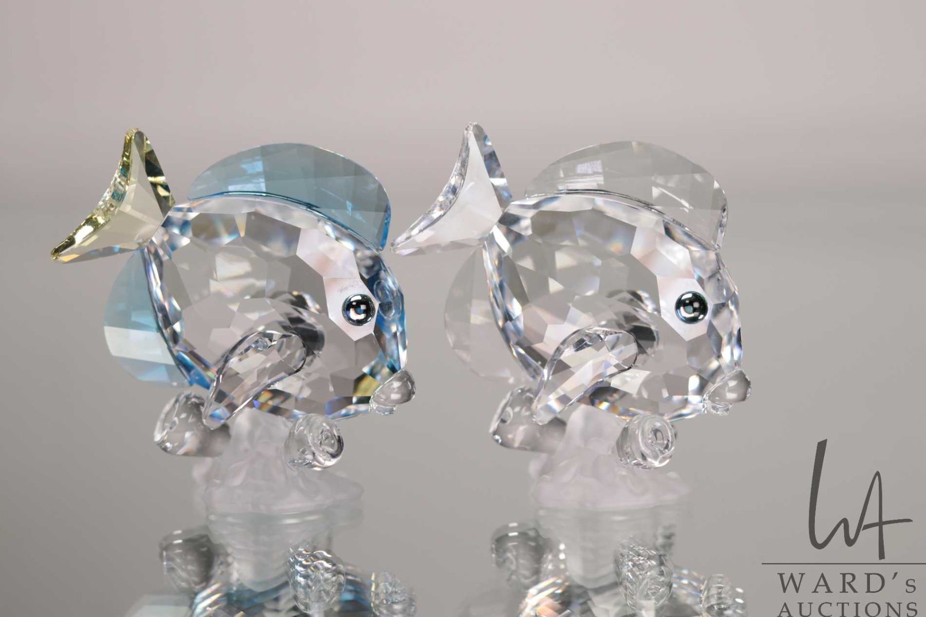 Lot 562 Two Swarovski crystal "Blue Tang Fish" no. 886180 and 883822 each 2 1/2" in height. Includes one mir