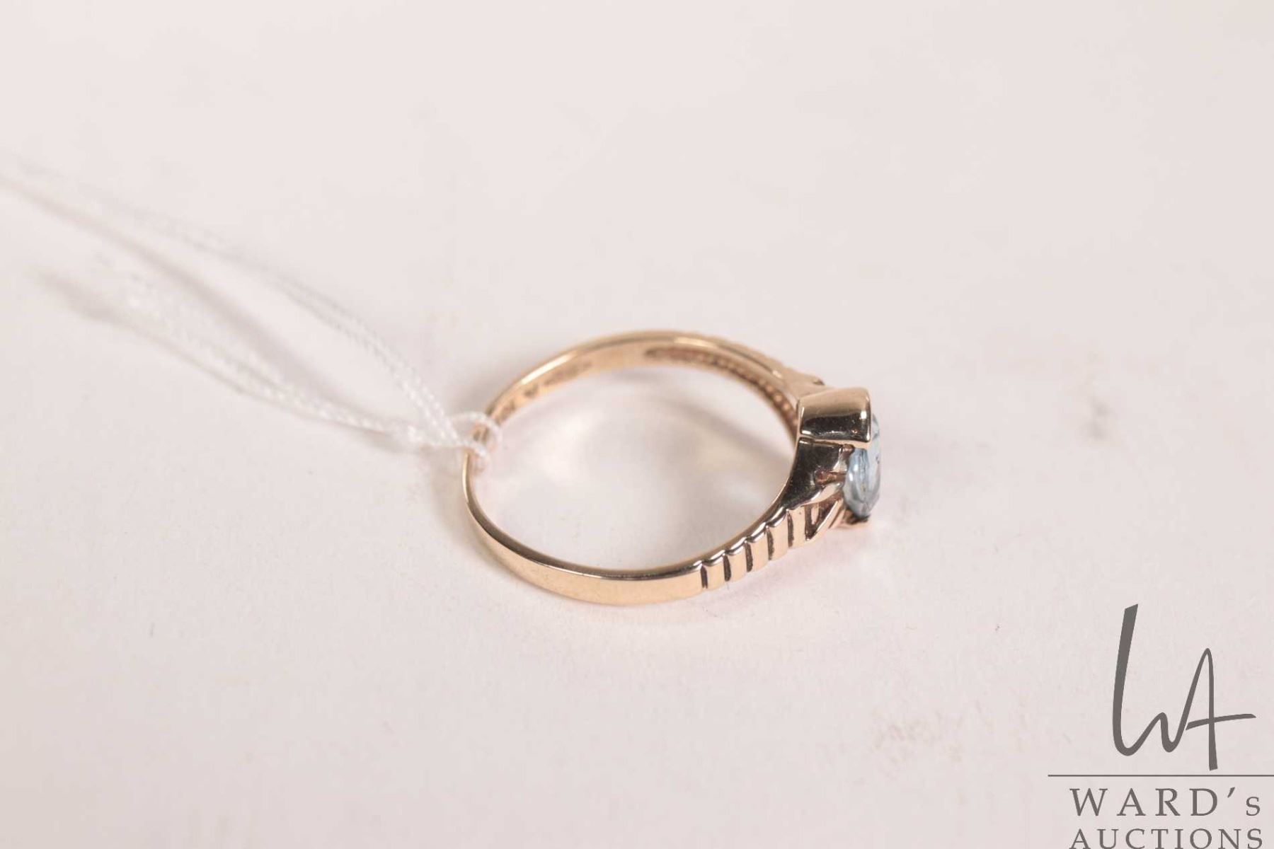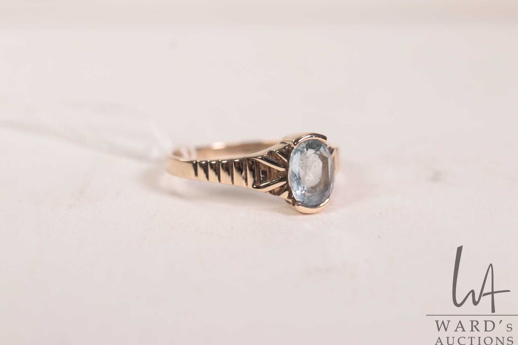 Lot 569 10kt yellow gold ring set with oval aquamarine gemstone, 1.9 grams, size 6