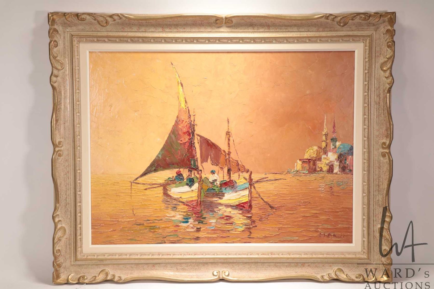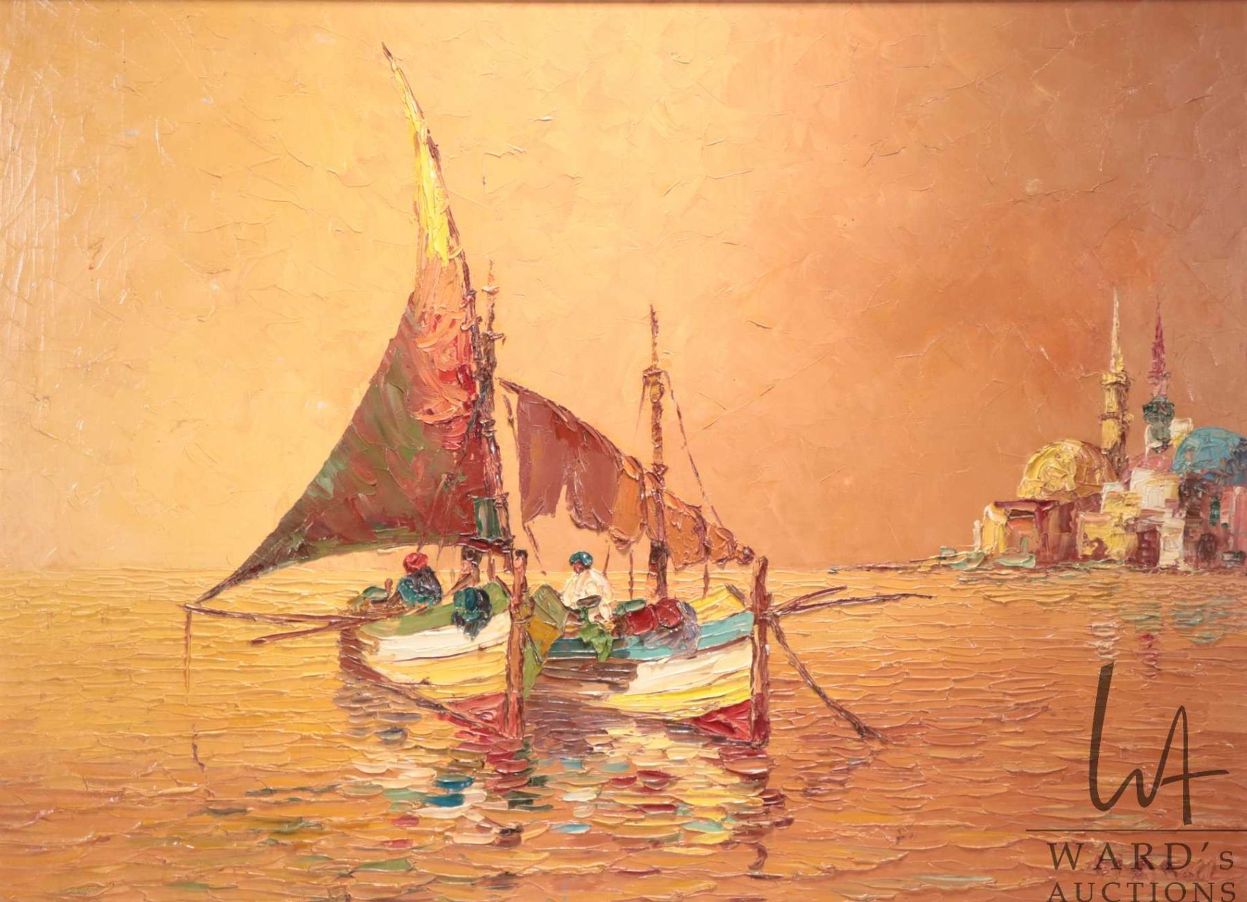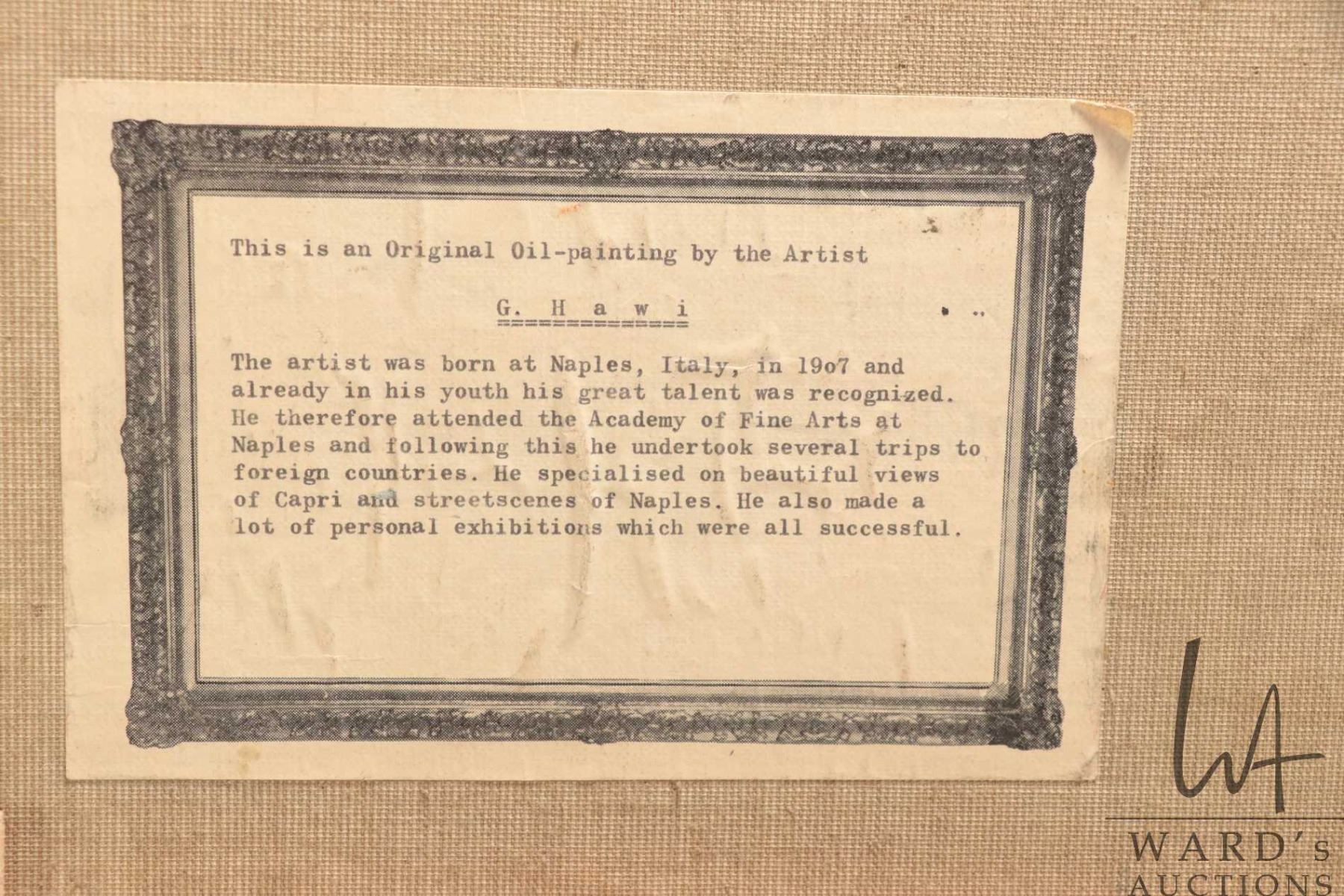 Lot 572 G. Hawi, framed oil on canvas palette painting titled on verso "Vor Istanbul" 22-1/2" x 30-1/2"